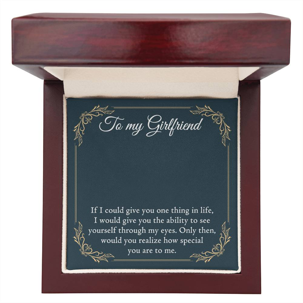 Your piece is lovingly packaged in a complimentary soft touch box for easy gifting. Elevate your presentation by upgrading to the mahogany style luxury box, which features a brilliant LED spotlight.