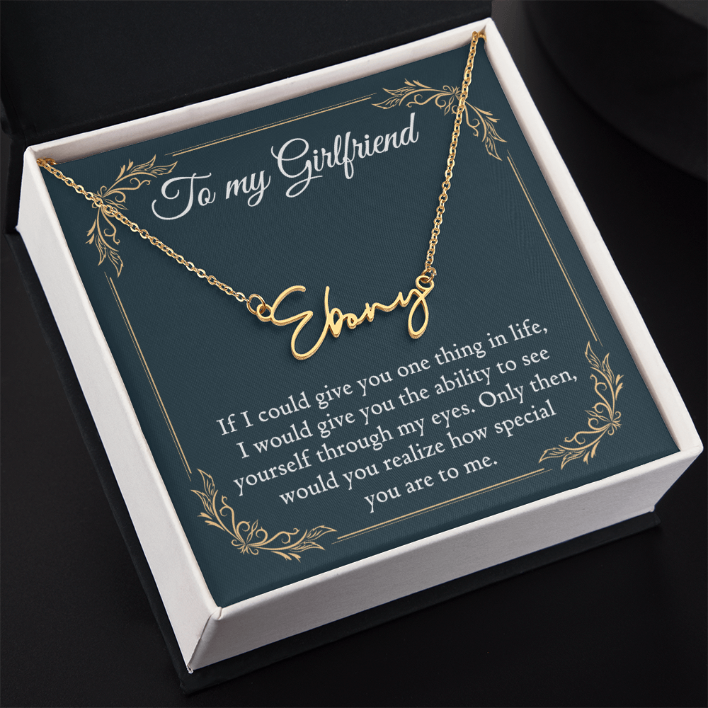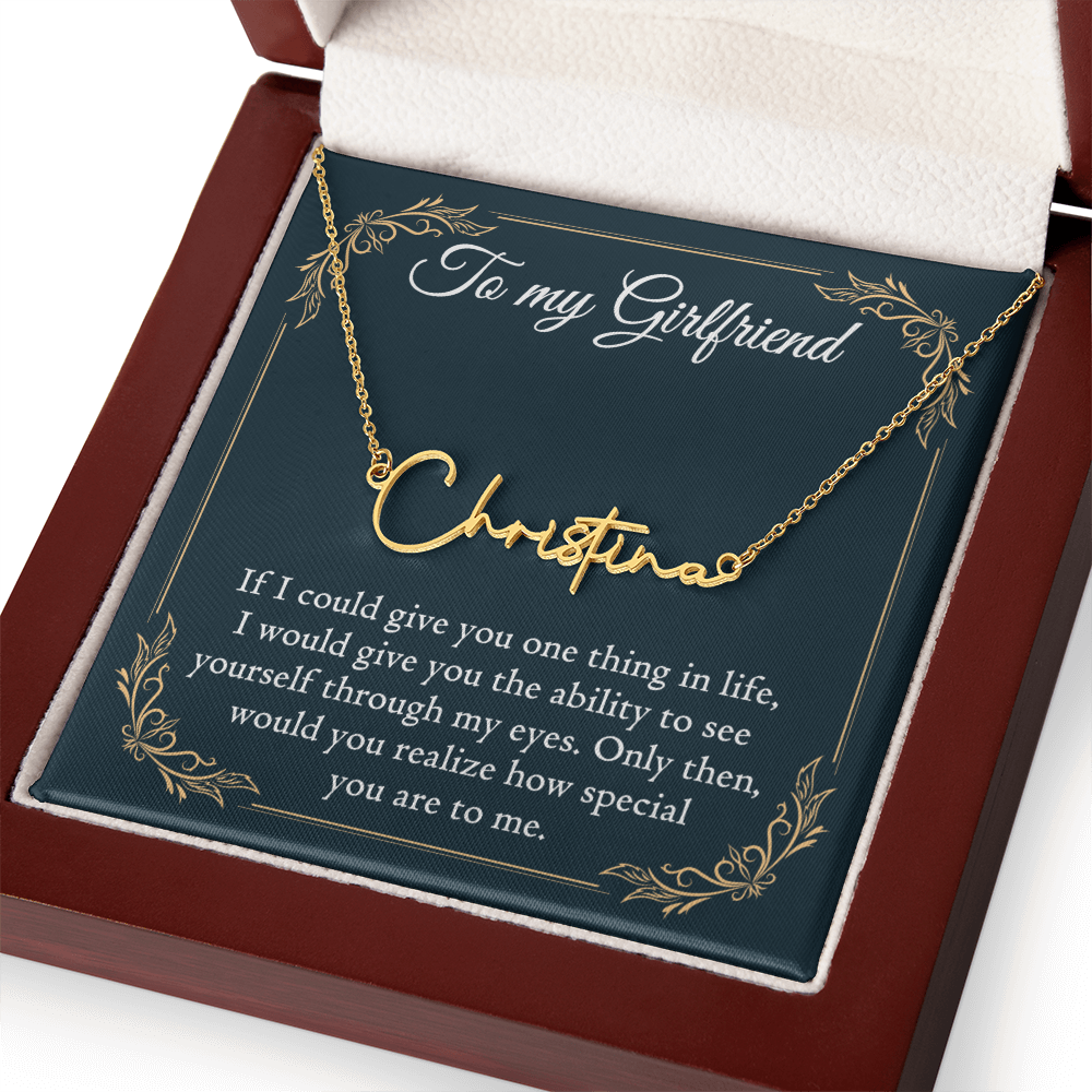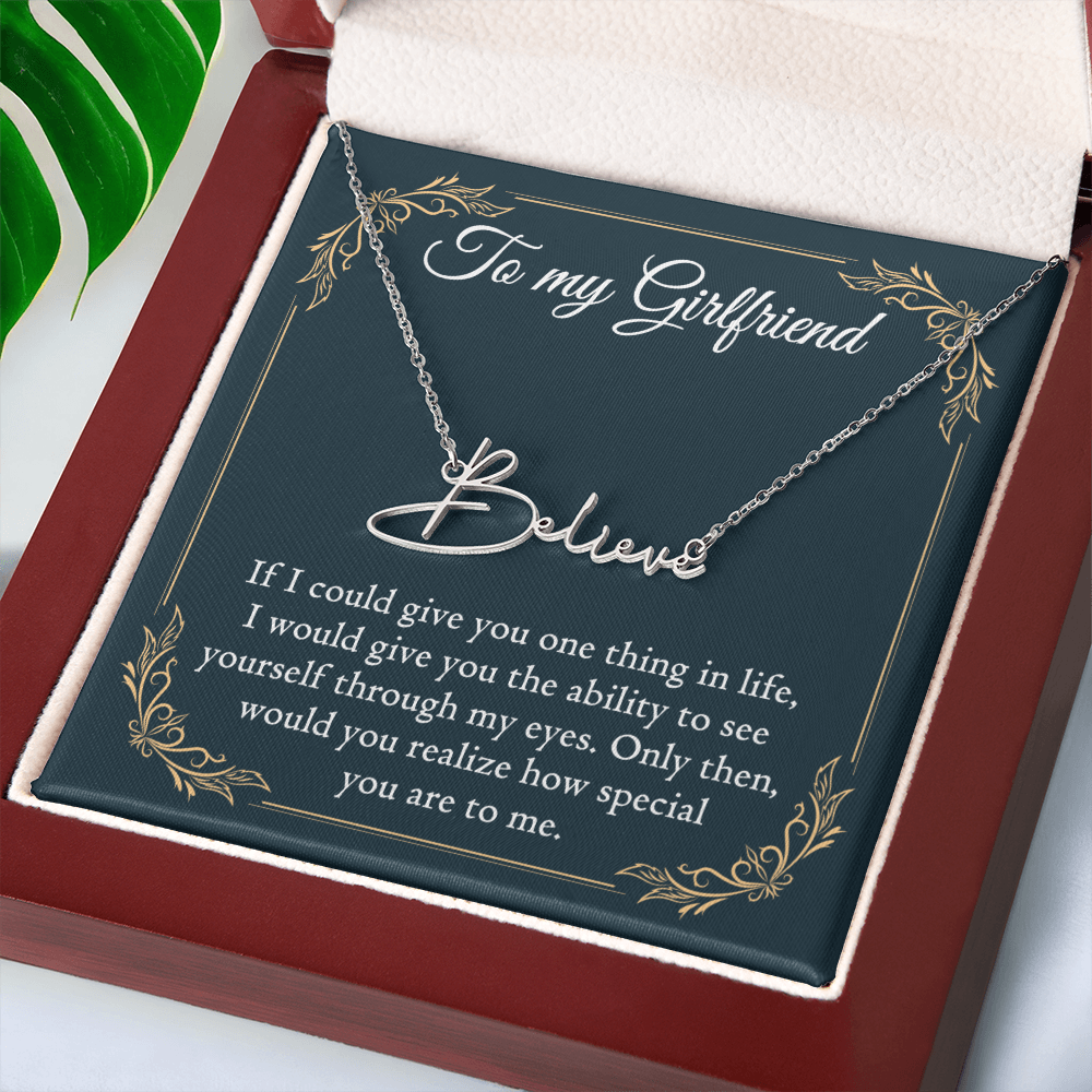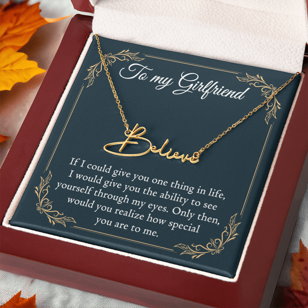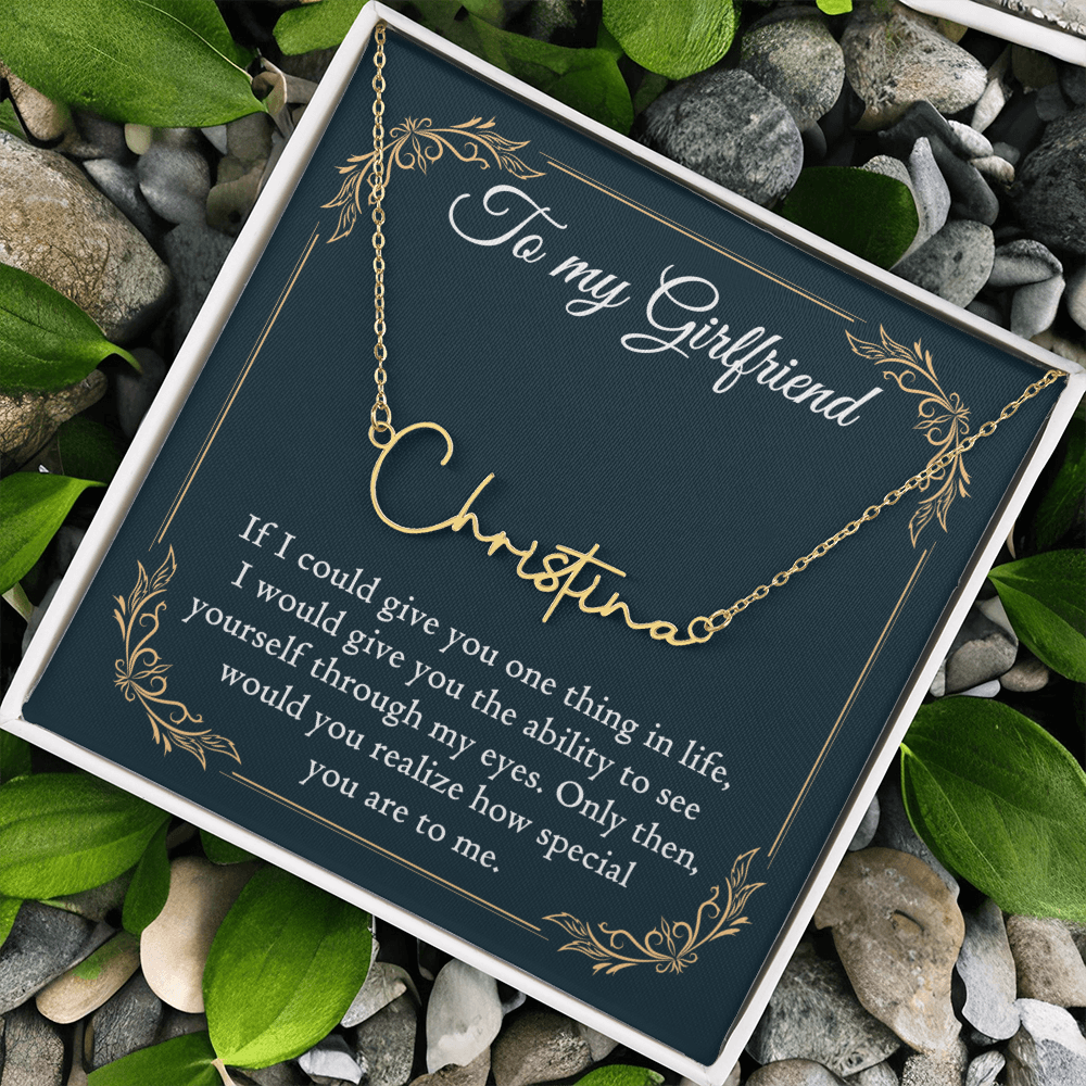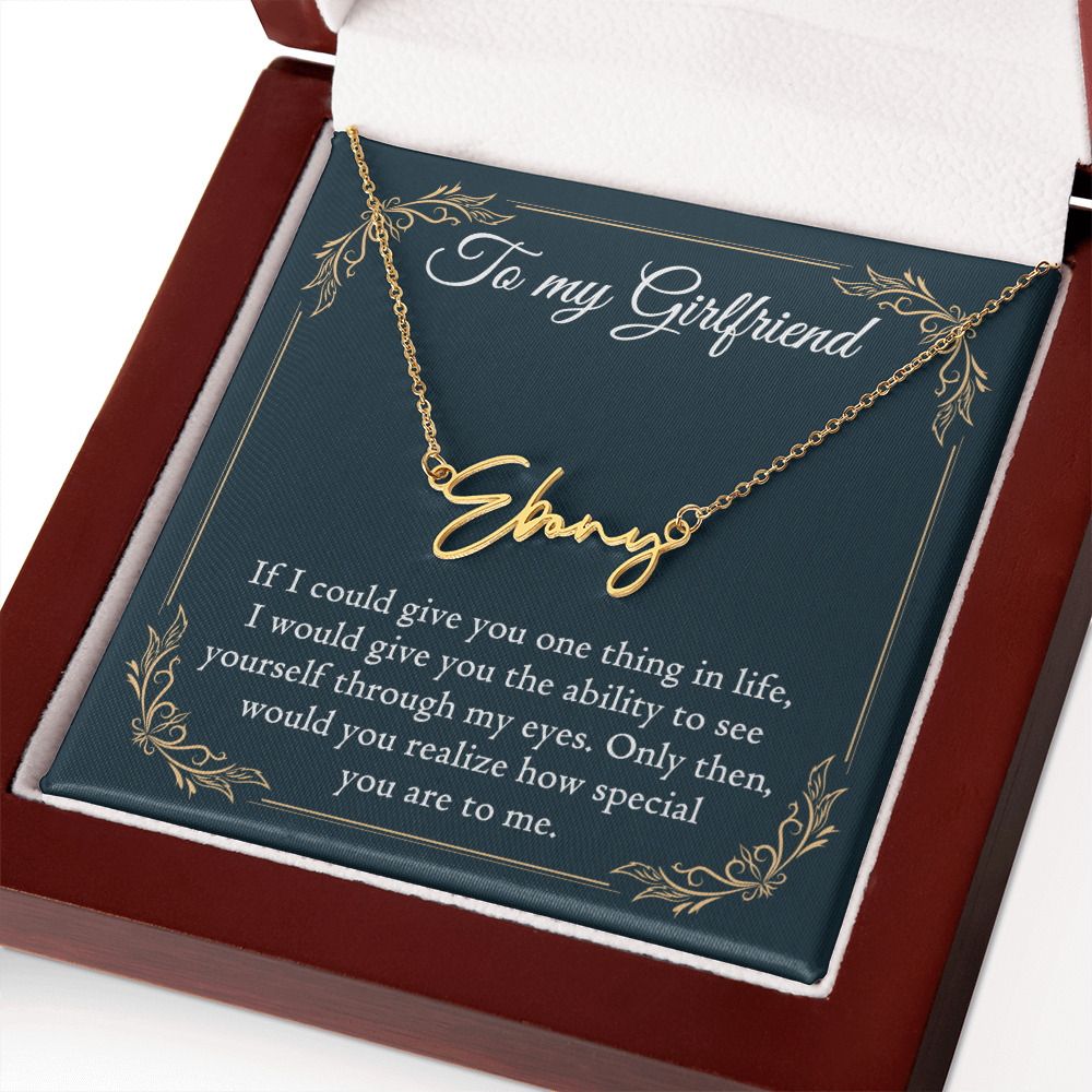 Looking to give your loved one a stylish and personalized gift that will melt their heart? Check out our Signature Style Name Necklace! This adorable custom necklace features a contemporary font that is sure to become a favorite accessory! From a heart-warming holiday present, special occasion gift, or just because, this unique necklace adds a trendy touch to any outfit
