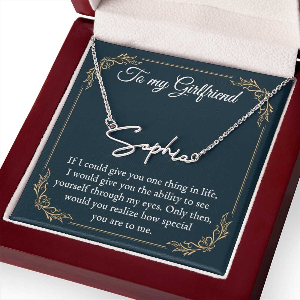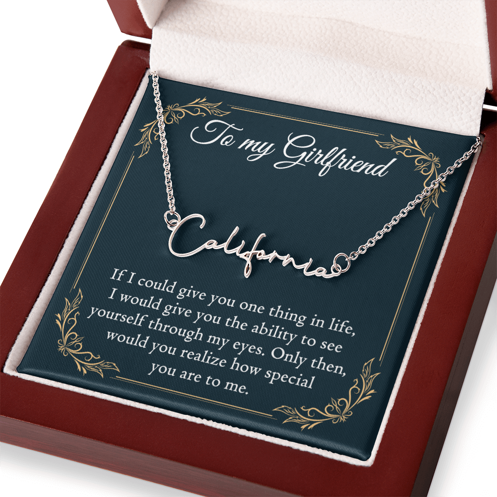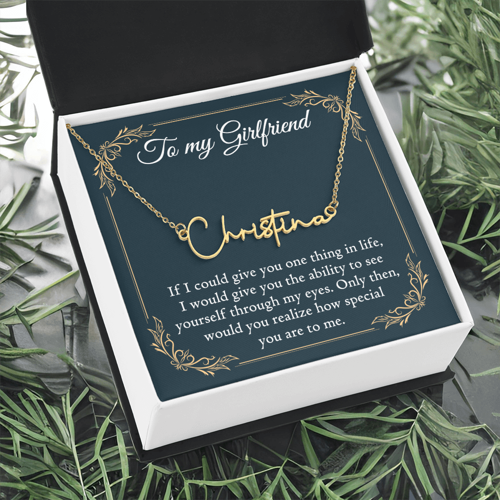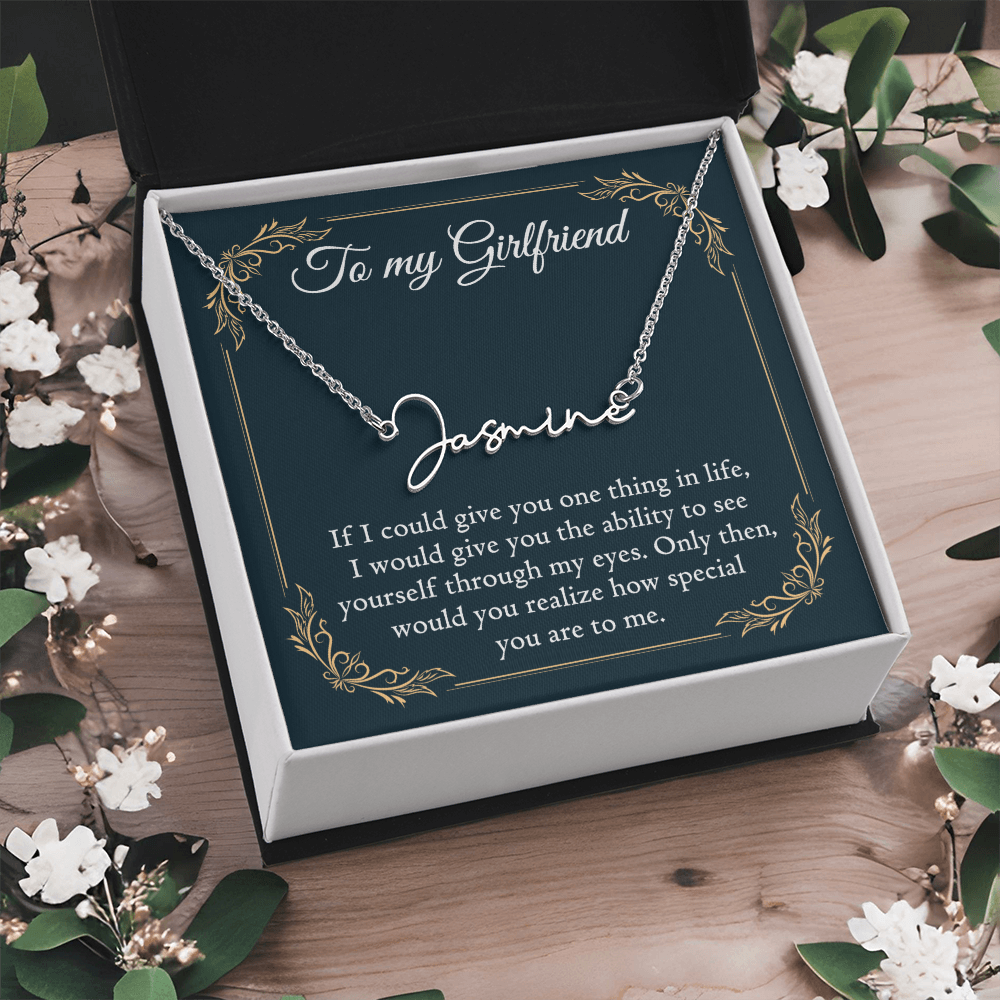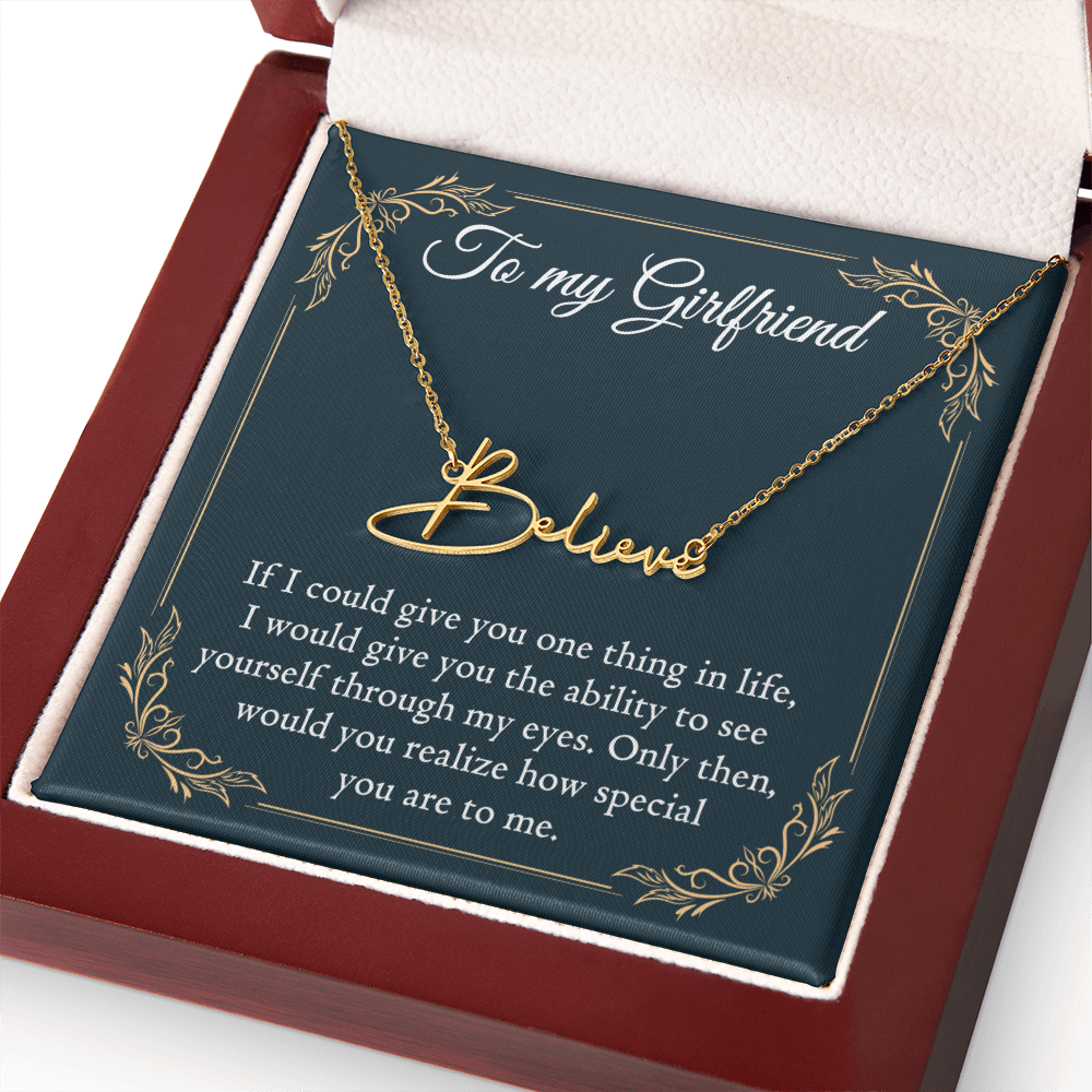 Looking to give your loved one a stylish and personalized gift that will melt their heart? Check out our Signature Style Name Necklace! This adorable custom necklace features a contemporary font that is sure to become a favorite accessory! From a heart-warming holiday present, special occasion gift, or just because, this unique necklace adds a trendy touch to any outfit