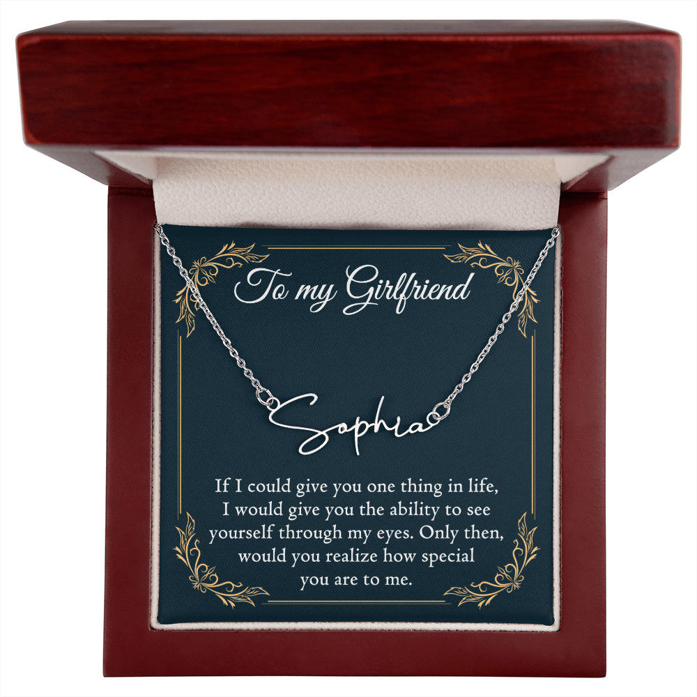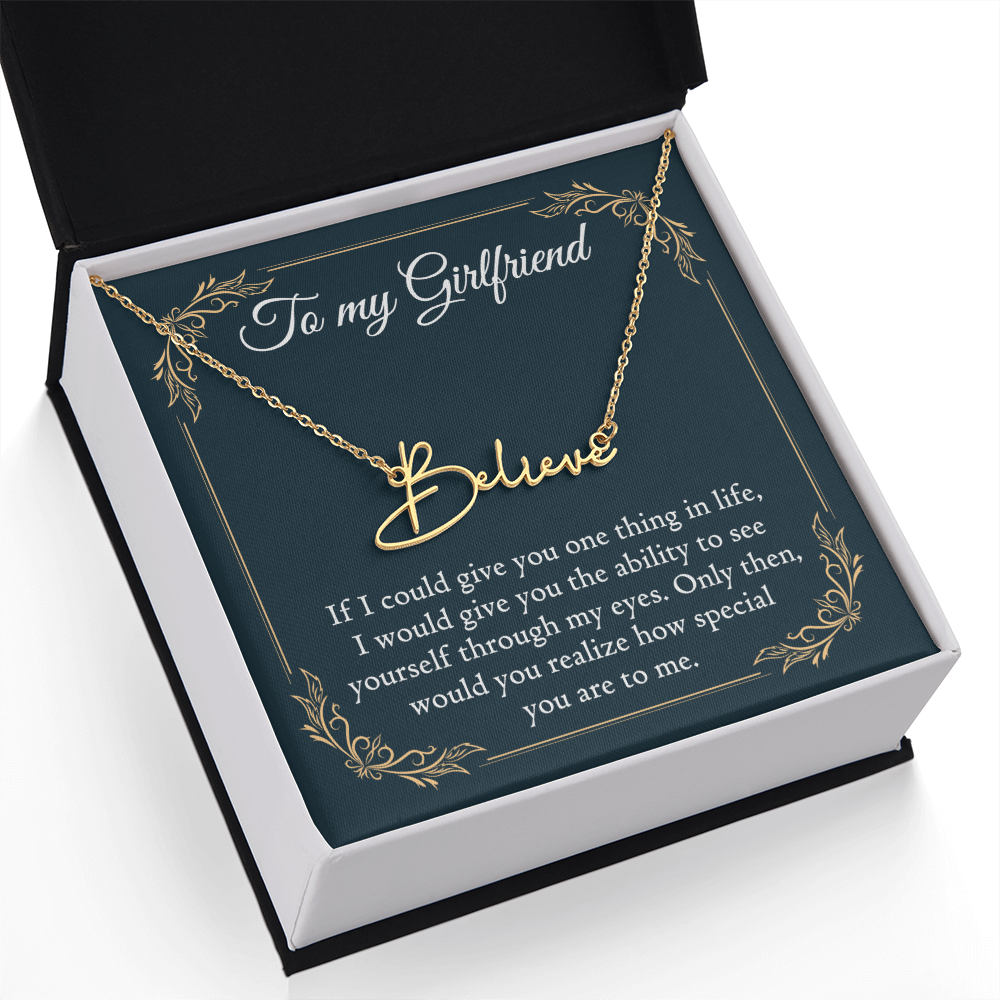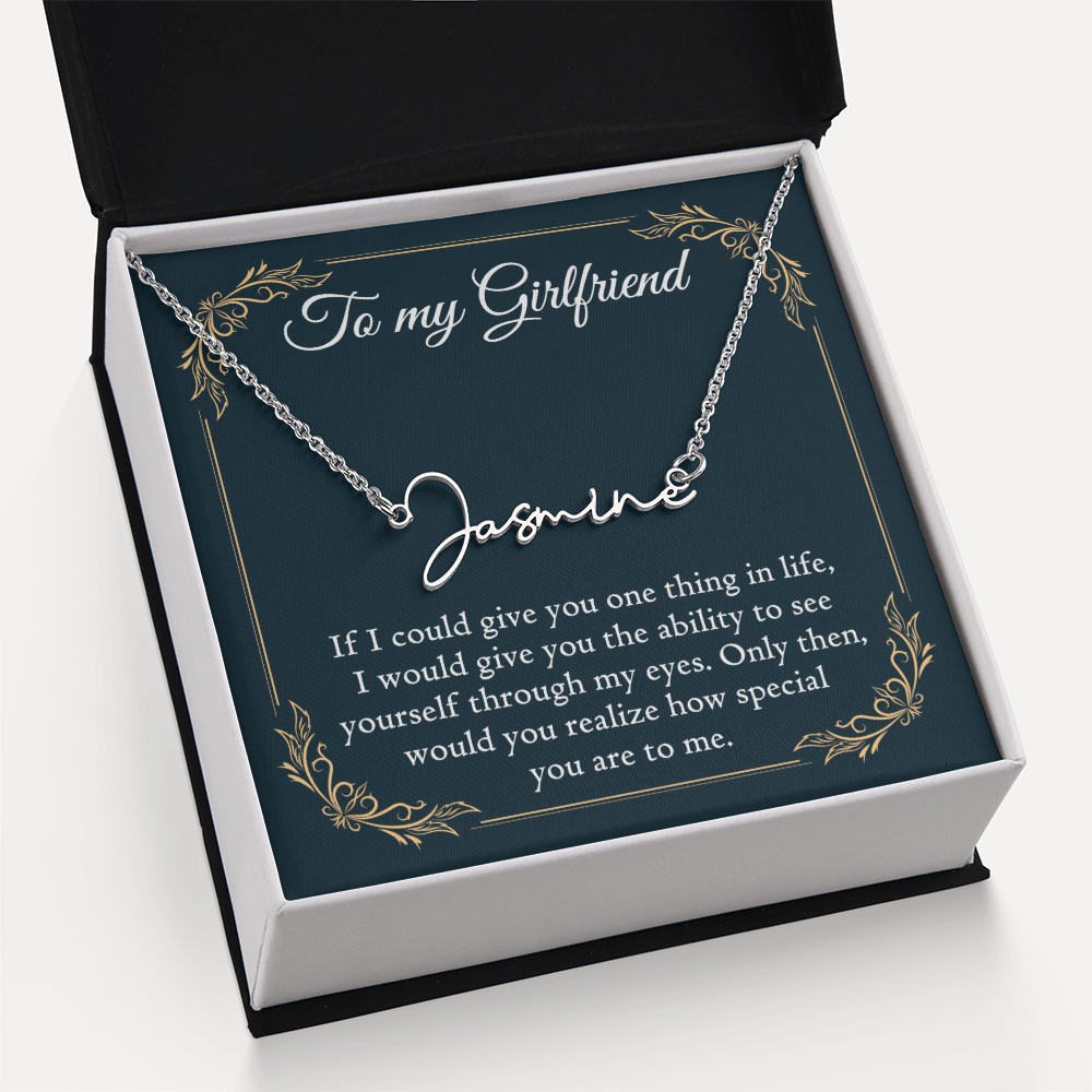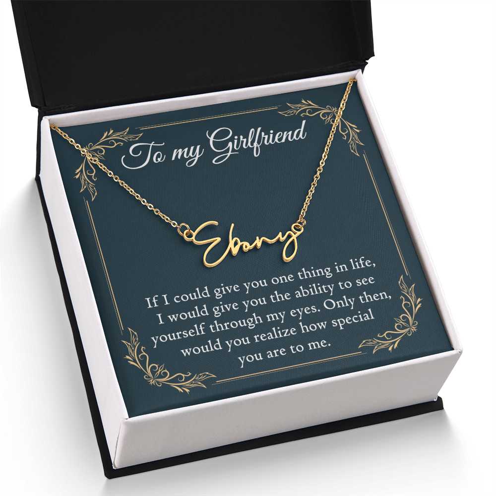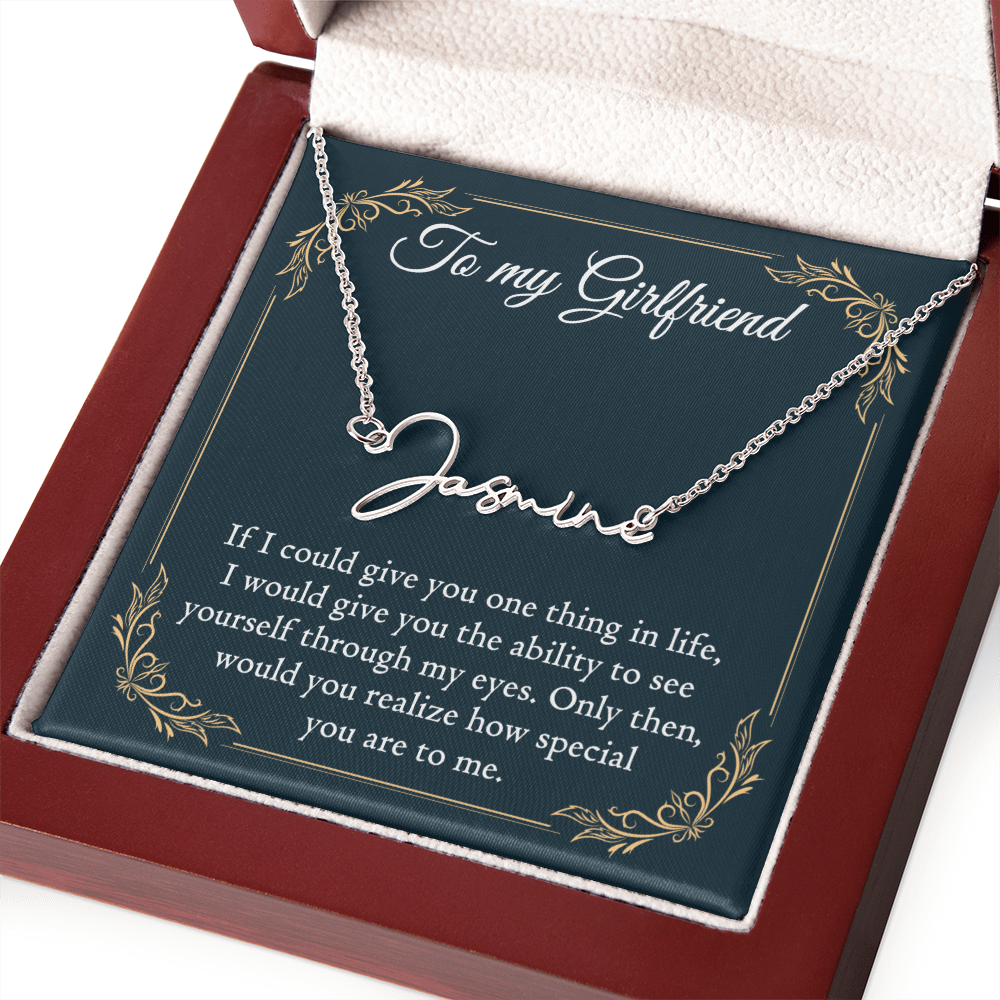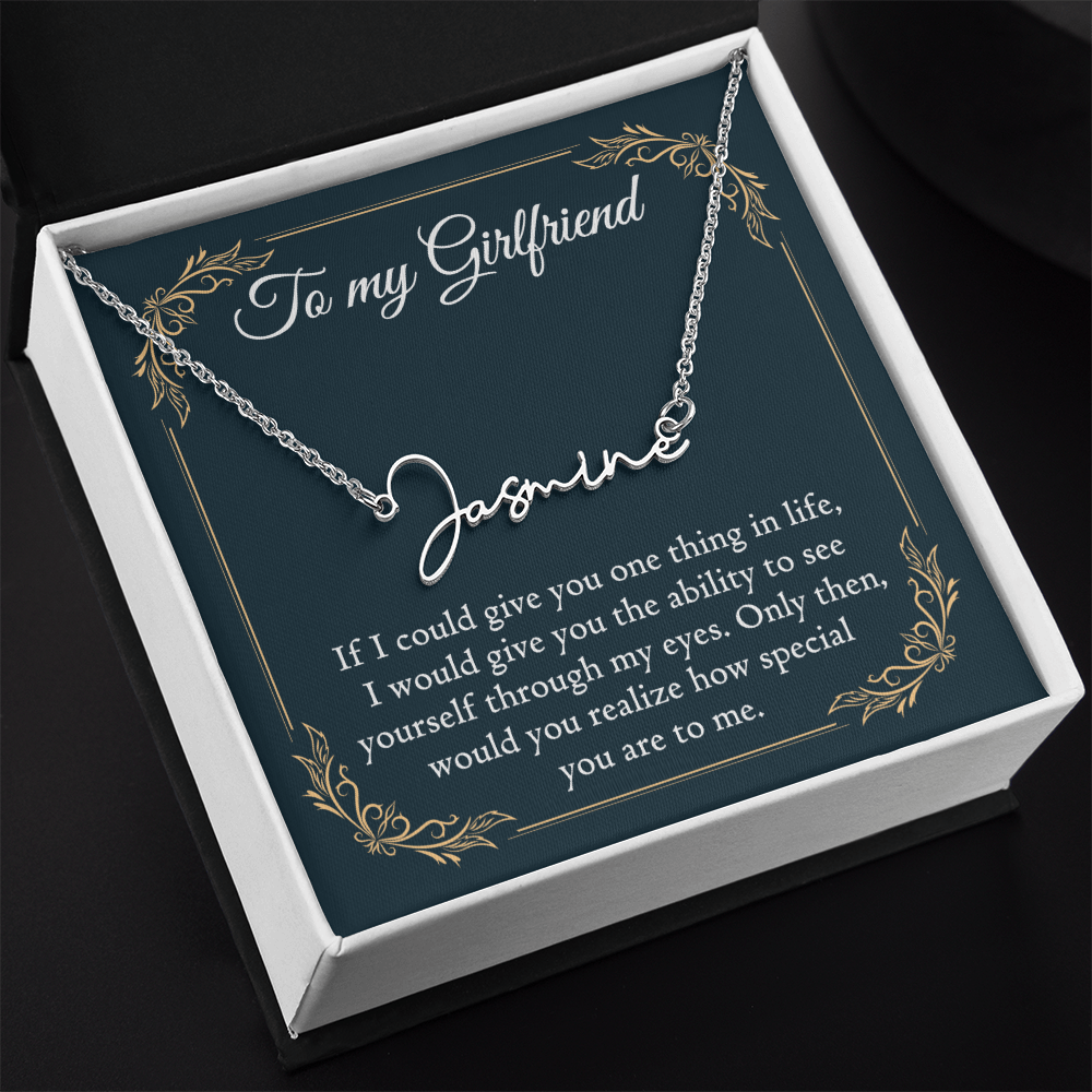 Looking to give your loved one a stylish and personalized gift that will melt their heart? Check out our Signature Style Name Necklace! This adorable custom necklace features a contemporary font that is sure to become a favorite accessory! From a heart-warming holiday present, special occasion gift, or just because, this unique necklace adds a trendy touch to any outfit