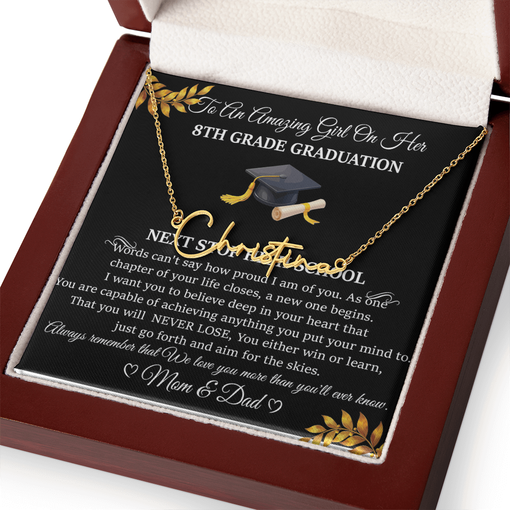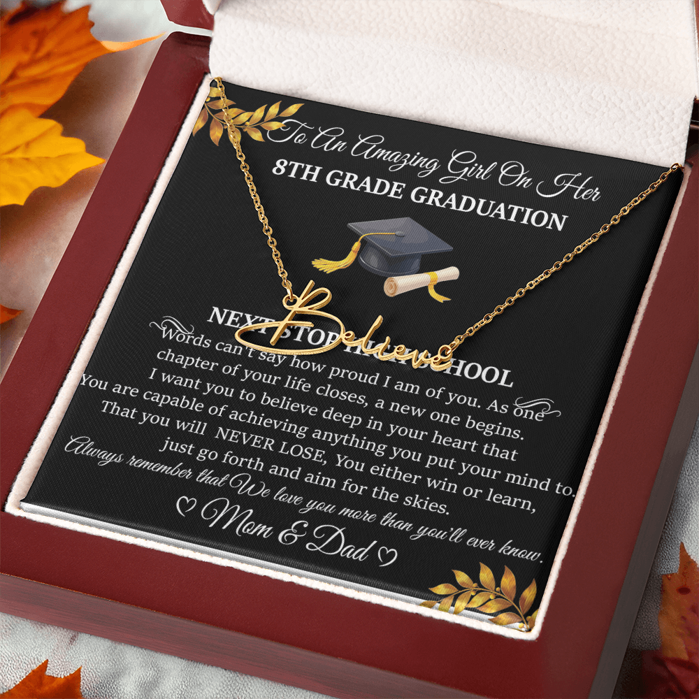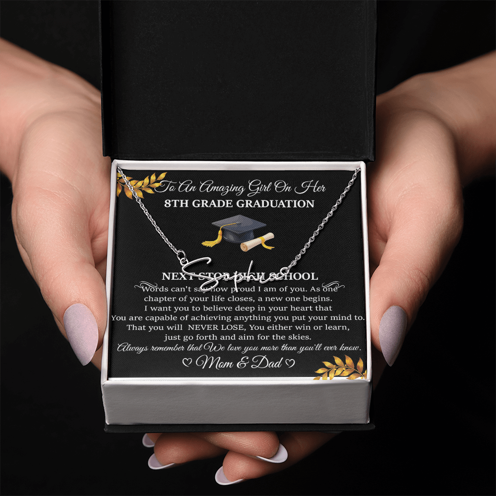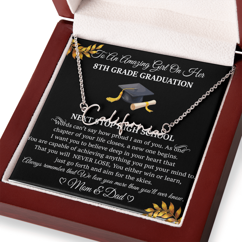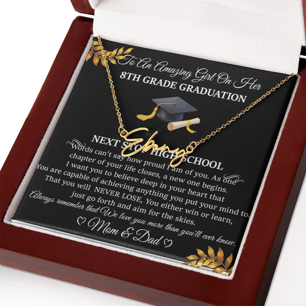 Looking to give your loved one a stylish and personalized gift that will melt their heart? Check out our Signature Style Name Necklace! This adorable custom necklace features a contemporary font that is sure to become a favorite accessory! From a heart-warming holiday present, special occasion gift, or just because, this unique necklace adds a trendy touch to any outfit