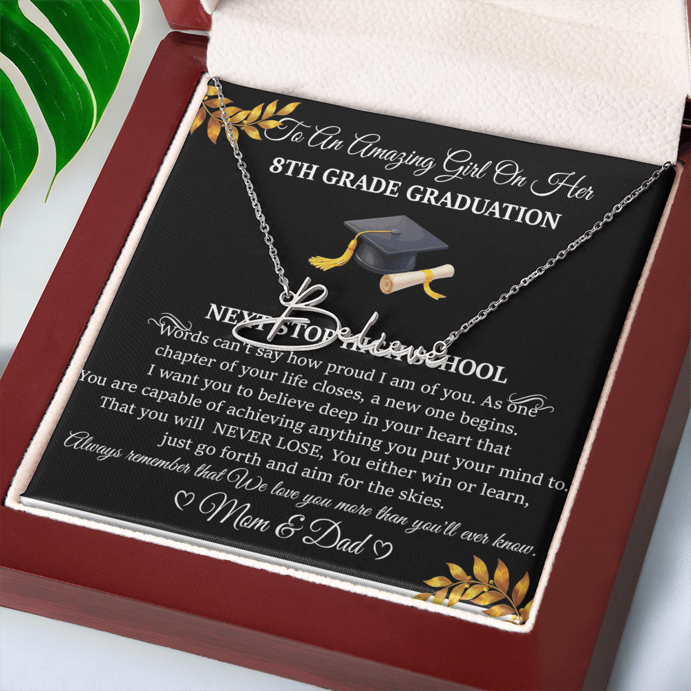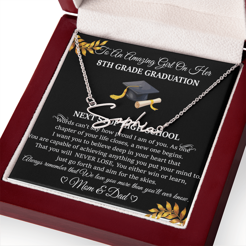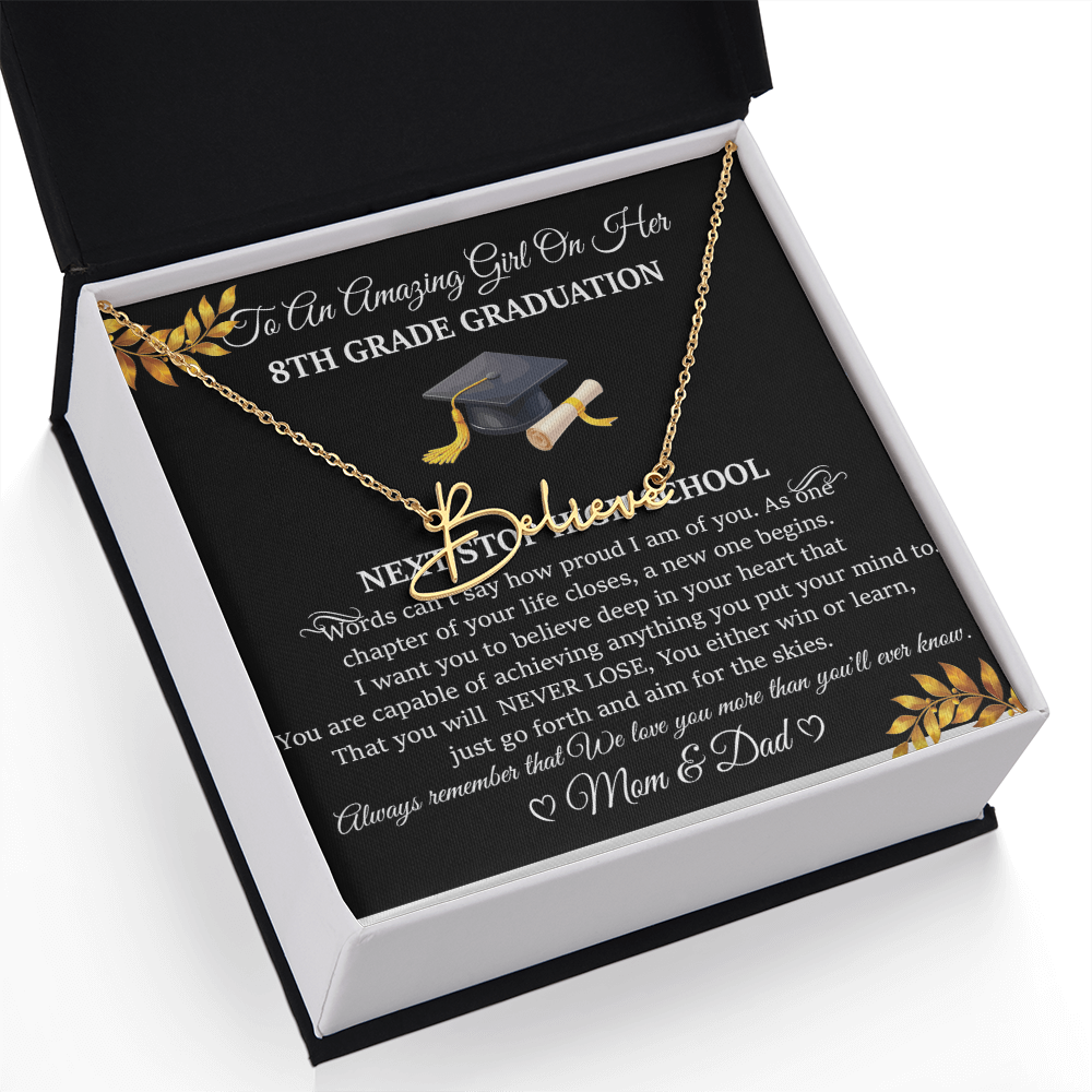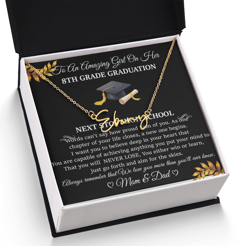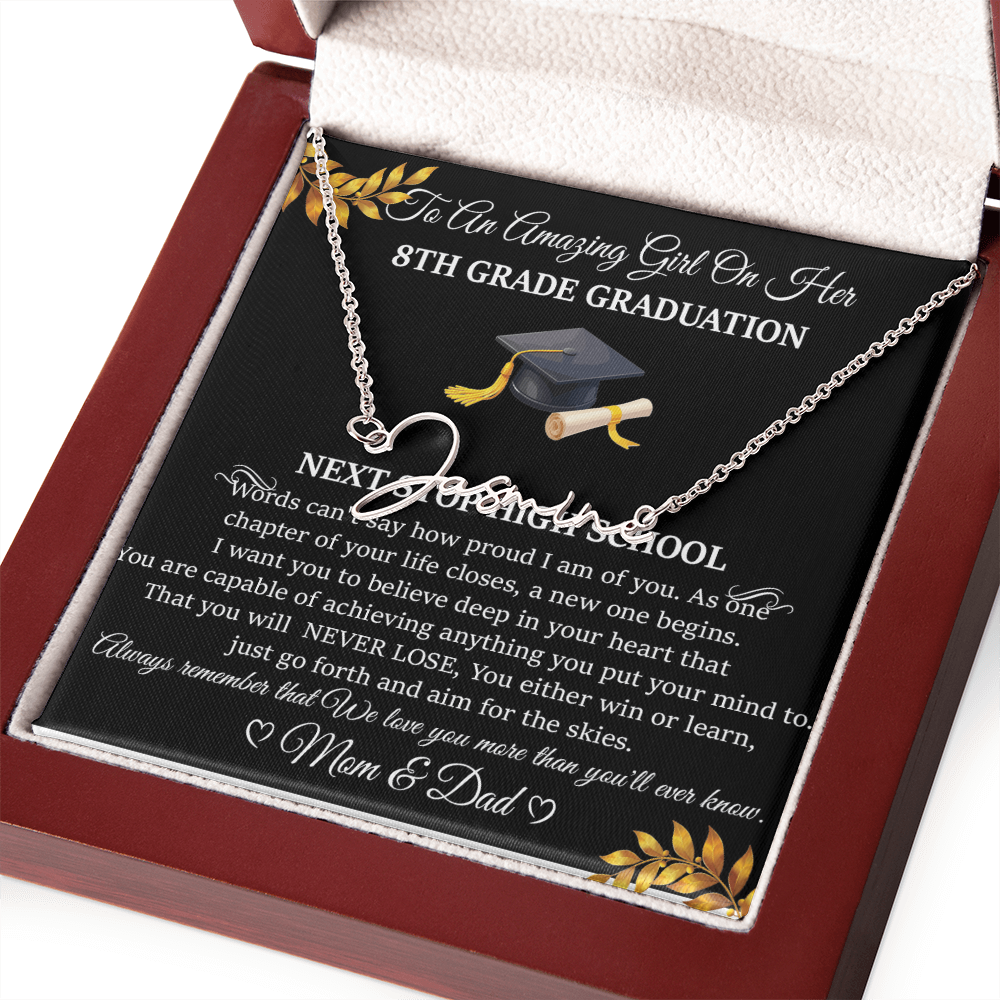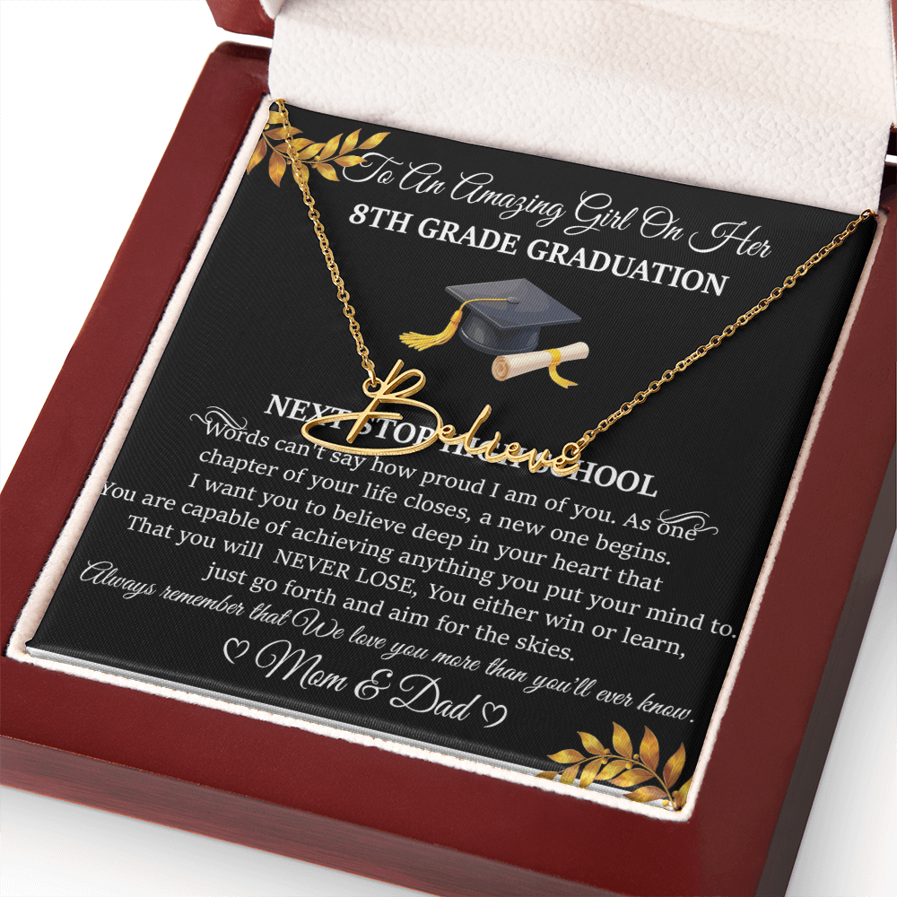 Looking to give your loved one a stylish and personalized gift that will melt their heart? Check out our Signature Style Name Necklace! This adorable custom necklace features a contemporary font that is sure to become a favorite accessory! From a heart-warming holiday present, special occasion gift, or just because, this unique necklace adds a trendy touch to any outfit