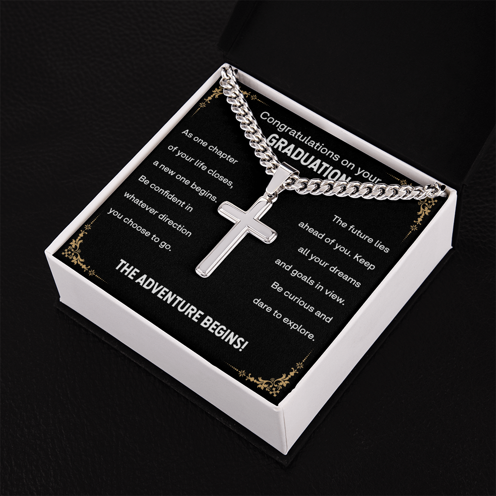 Wear your faith proudly with this Cuban Chain with Artisan Cross Necklace. Perfect for special occasions or everyday wear, this makes a wonderful gift idea for you or your loved one. Personalizing the back of the cross pendant will surely make this gift treasured for years to come!