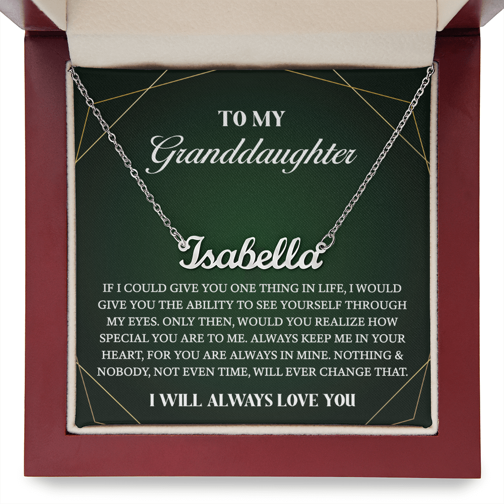 This stylish necklace features a cursive name design suspended on an 16”-18” adjustable cable chain, making it both personal and beautiful! Your necklace will be custom made upon ordering in the name or word of your choice, with up to 10 characters. It's a gift that they will surely want to keep close to their heart forever!