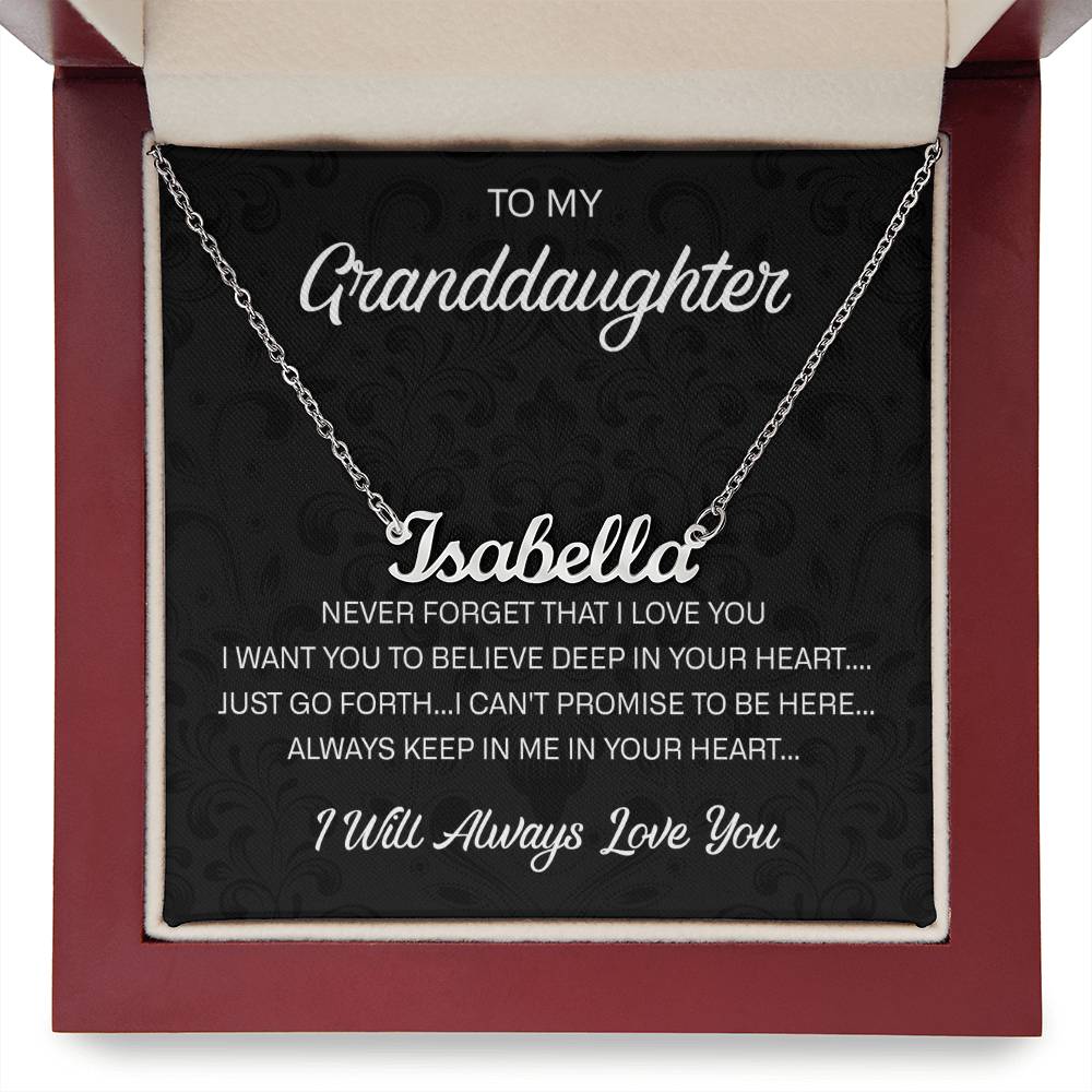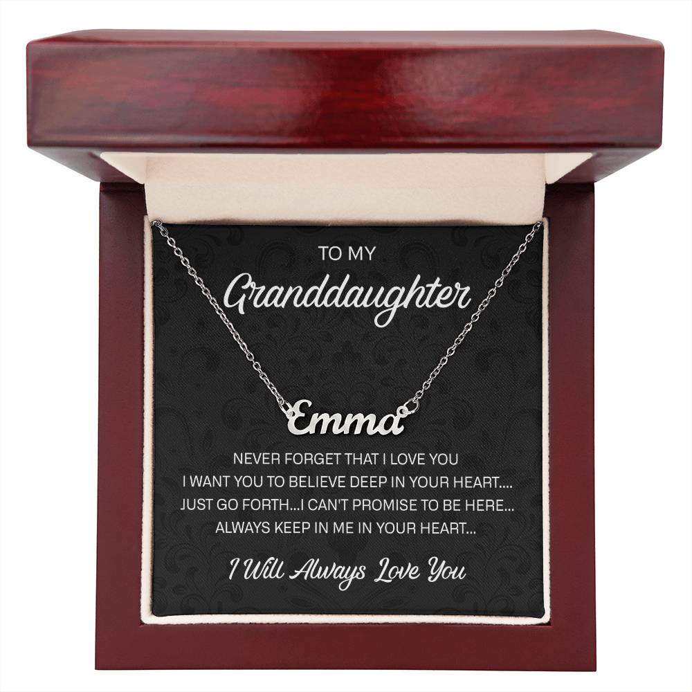 This stylish necklace features a cursive name design suspended on an 16”-18” adjustable cable chain, making it both personal and beautiful! Your necklace will be custom made upon ordering in the name or word of your choice, with up to 10 characters. It's a gift that they will surely want to keep close to their heart forever!