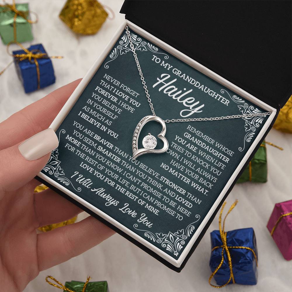 The dazzling Forever Love Necklace is sure to make her heart melt! This necklace features a stunning 6.5mm CZ crystal surrounded by a polished heart pendant embellished with smaller crystals to add extra sparkle and shine. Beautifully crafted with either a white gold or yellow gold finish, be sure to give her a classic gift she can enjoy everyday.