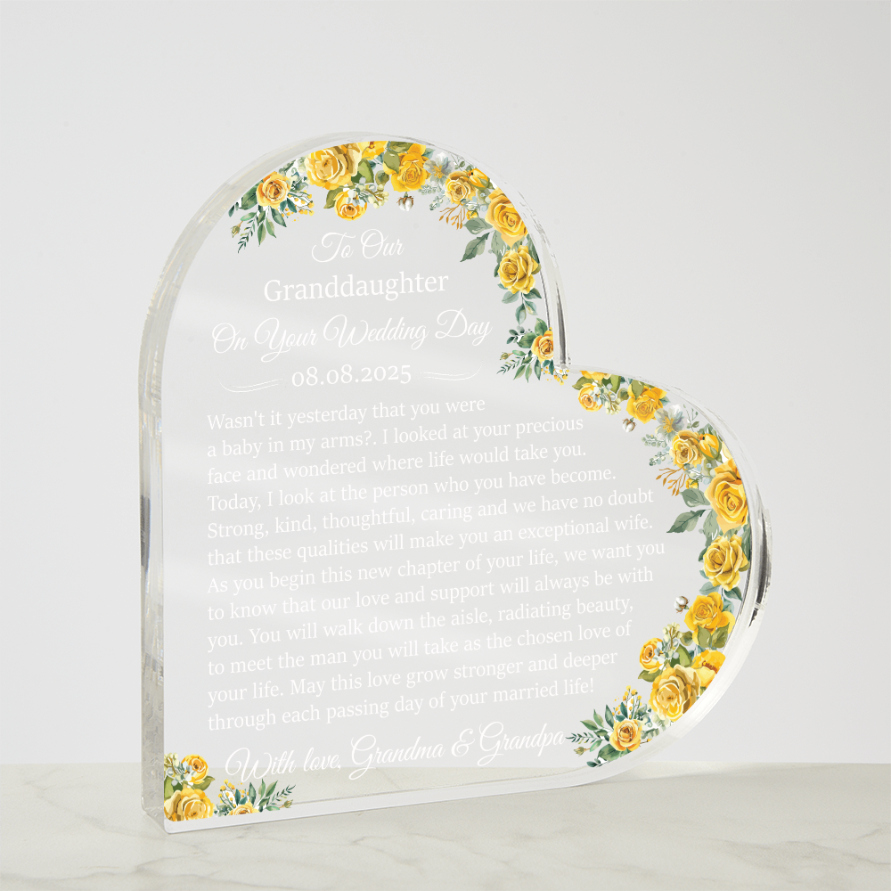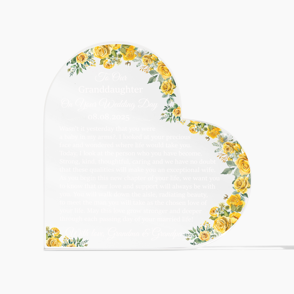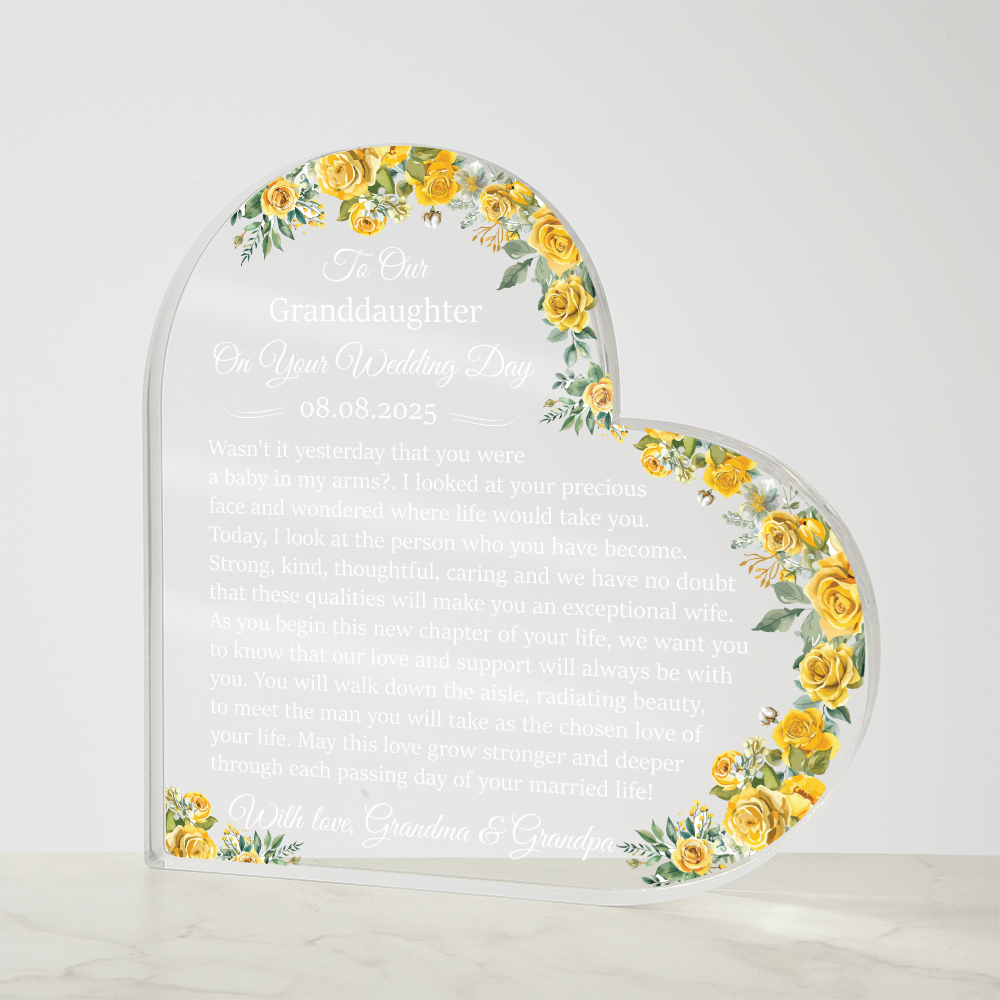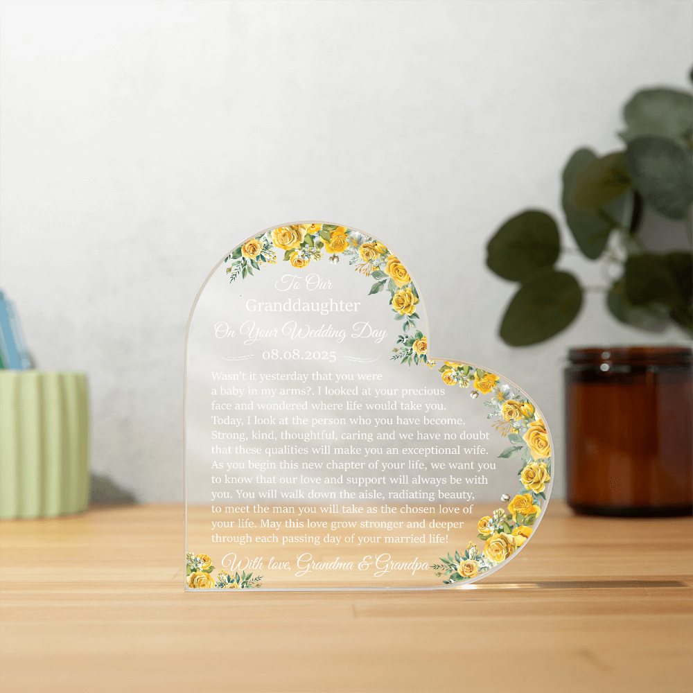 Show your loved ones how much you care with our Printed Heart Shaped Acrylic Plaque! Crafted with precision and care, this stunning piece of art is a perfect expression of your heartfelt emotions. Made from premium quality acrylic, it boasts a crystal-clear finish that catches the light, adding a touch of elegance to any space. The vibrant printed design creates a unique gift giving experience that will leave your special someone speechless! This is the ideal present for your beloved partner, family members, or dear friends on special occasions like anniversaries, weddings, birthdays, or Valentine's Day. Let your loved ones know how much they mean to you by purchasing today!