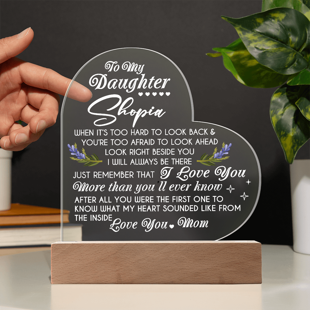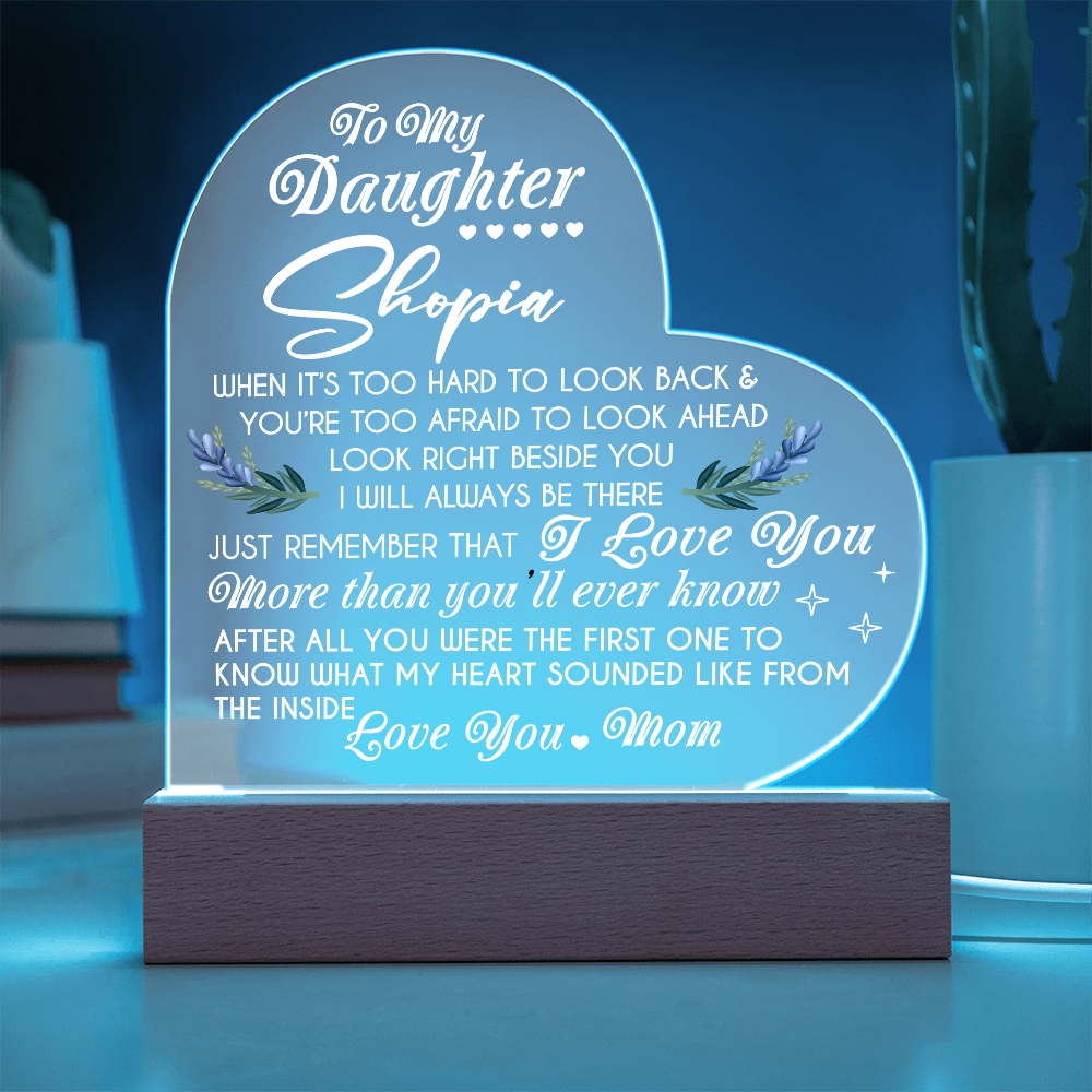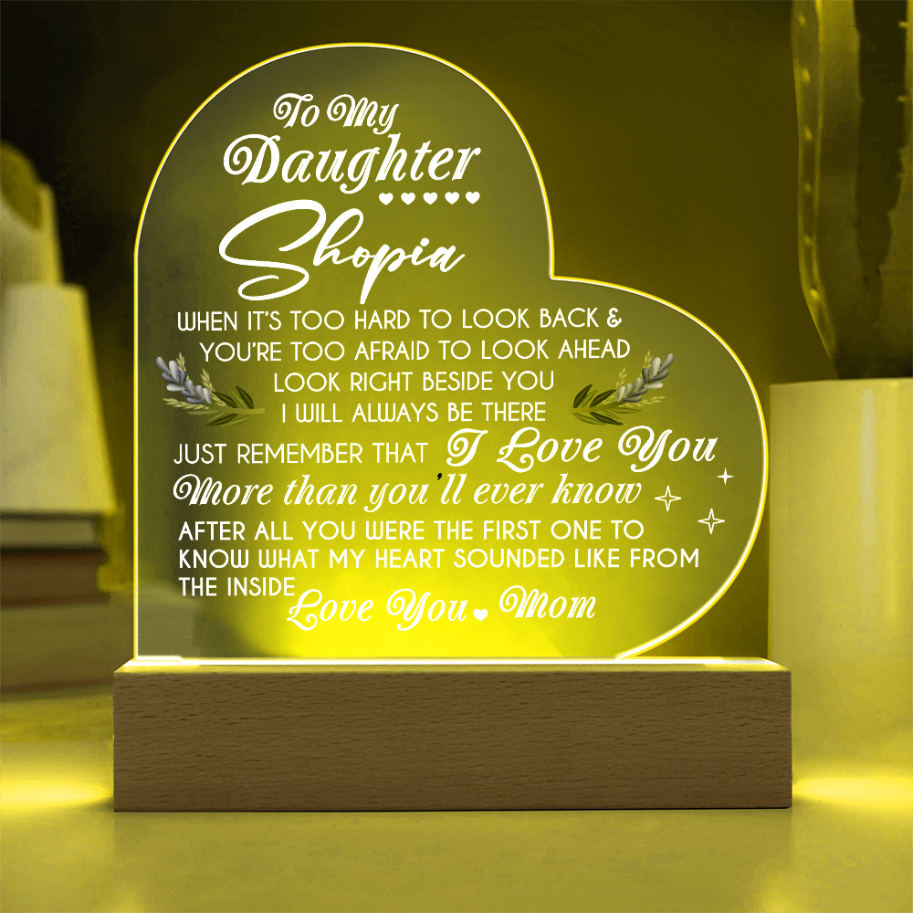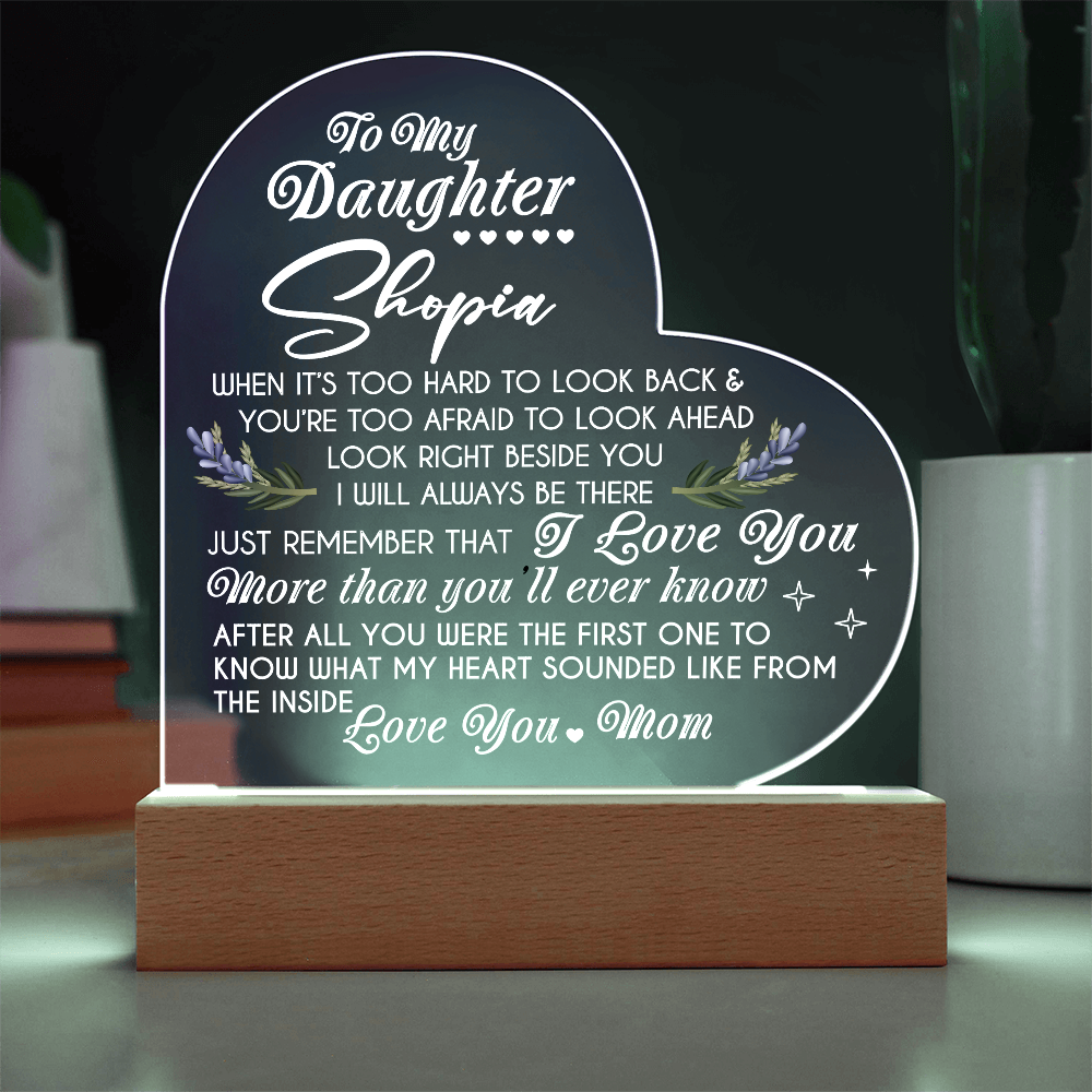 Your plaque will be crafted from premium acrylic with a professionally printed design for a polished look. It comes with a stylish wooden LED base, and you can choose between a USB plug-in option OR a cordless battery-operated option (requires 2 AAA batteries, not included). Both LED bases feature 7 vibrant colors, allowing the user to customize the lighting with various color changes and dynamic cycles.
