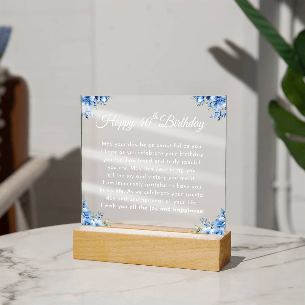 Your plaque will be crafted from premium acrylic with a professionally printed design for a polished look. It comes with a stylish wooden LED base, and you can choose between a USB plug-in option OR a cordless battery-operated option (requires 2 AAA batteries, not included). Both LED bases feature 7 vibrant colors, allowing the user to customize the lighting with various color changes and dynamic cycles.