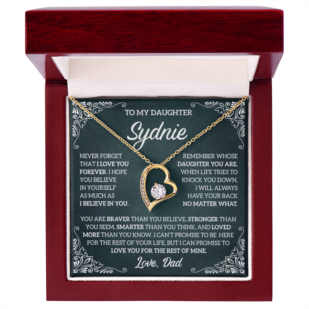 The dazzling Forever Love Necklace is sure to make her heart melt! This necklace features a stunning 6.5mm CZ crystal surrounded by a polished heart pendant embellished with smaller crystals to add extra sparkle and shine. Beautifully crafted with either a white gold or yellow gold finish, be sure to give her a classic gift she can enjoy everyday.