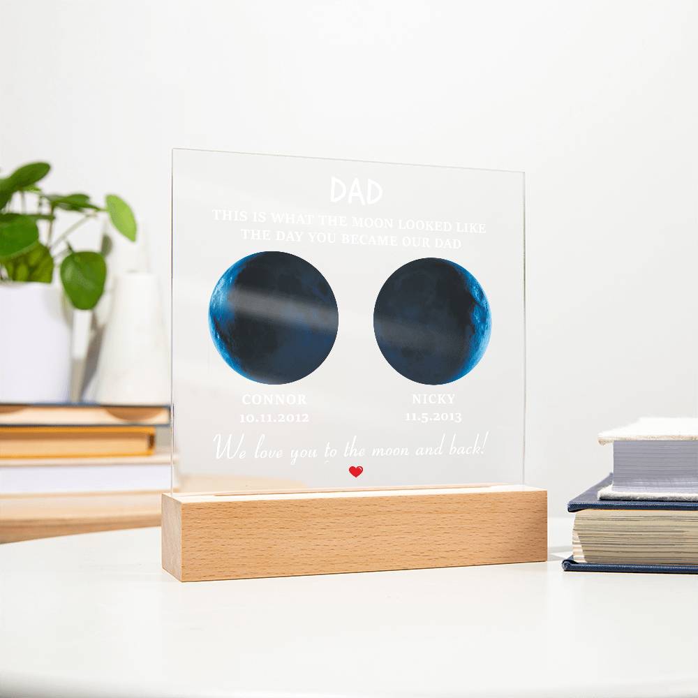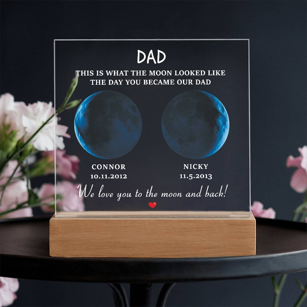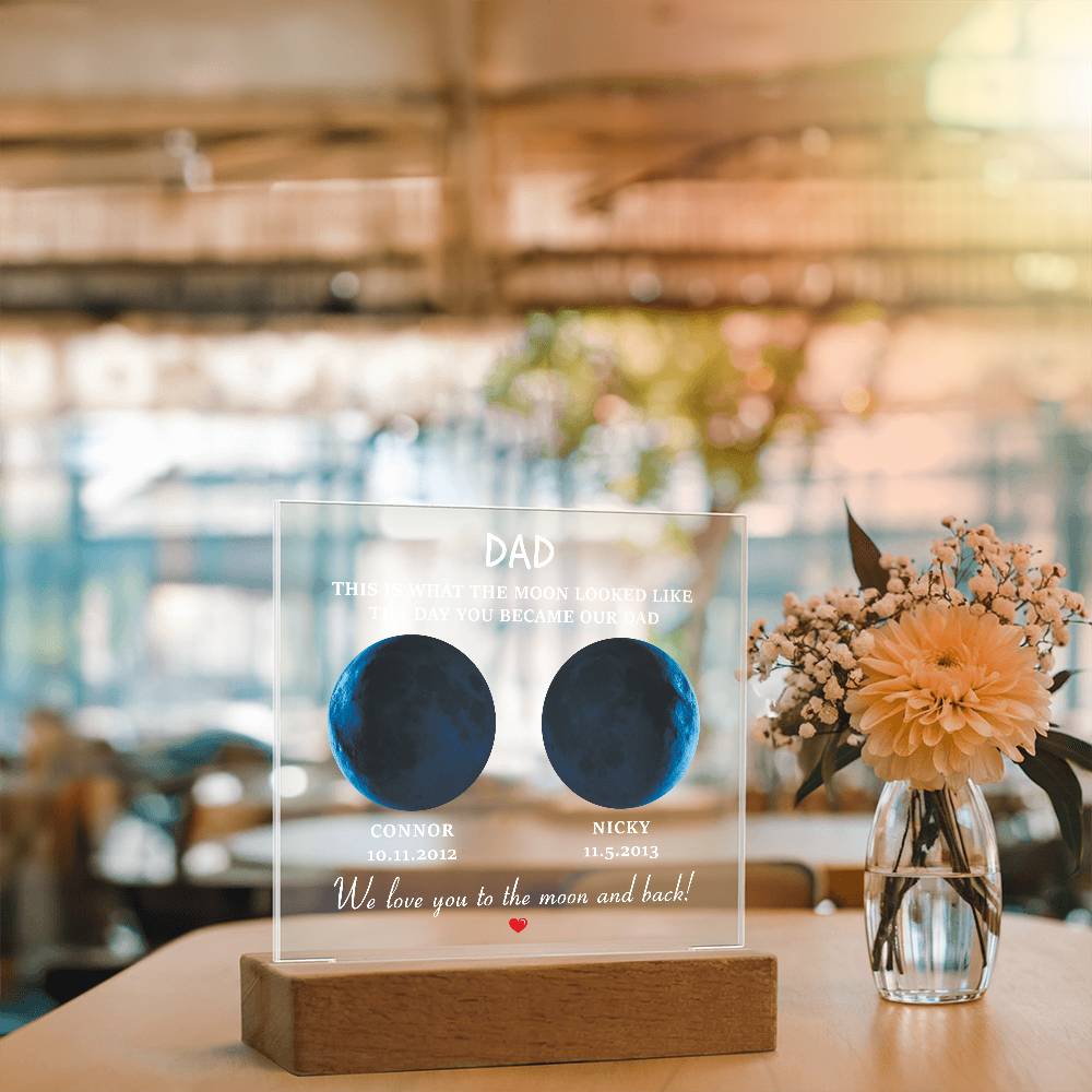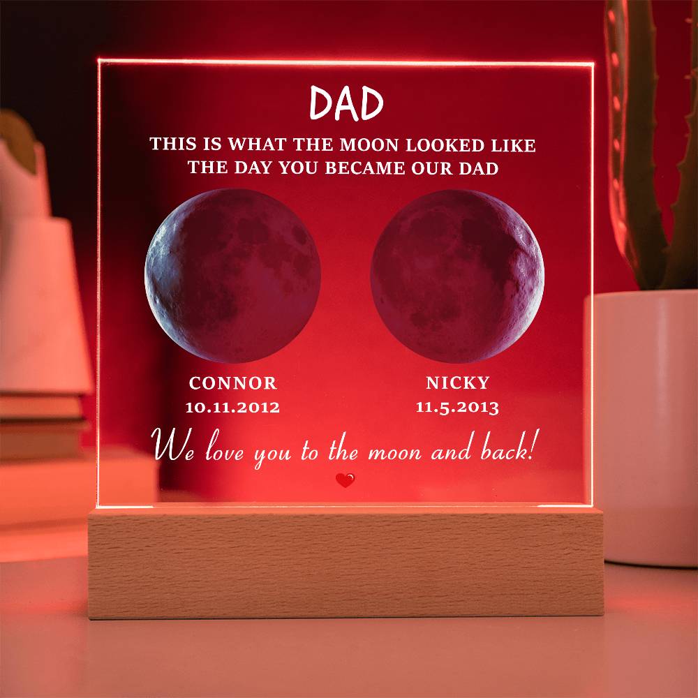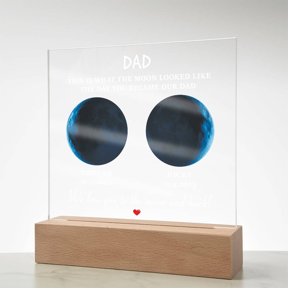 Your plaque will be crafted from premium acrylic with a professionally printed design for a polished look. It comes with a stylish wooden LED base, and you can choose between a USB plug-in option OR a cordless battery-operated option (requires 2 AAA batteries, not included). Both LED bases feature 7 vibrant colors, allowing the user to customize the lighting with various color changes and dynamic cycles.