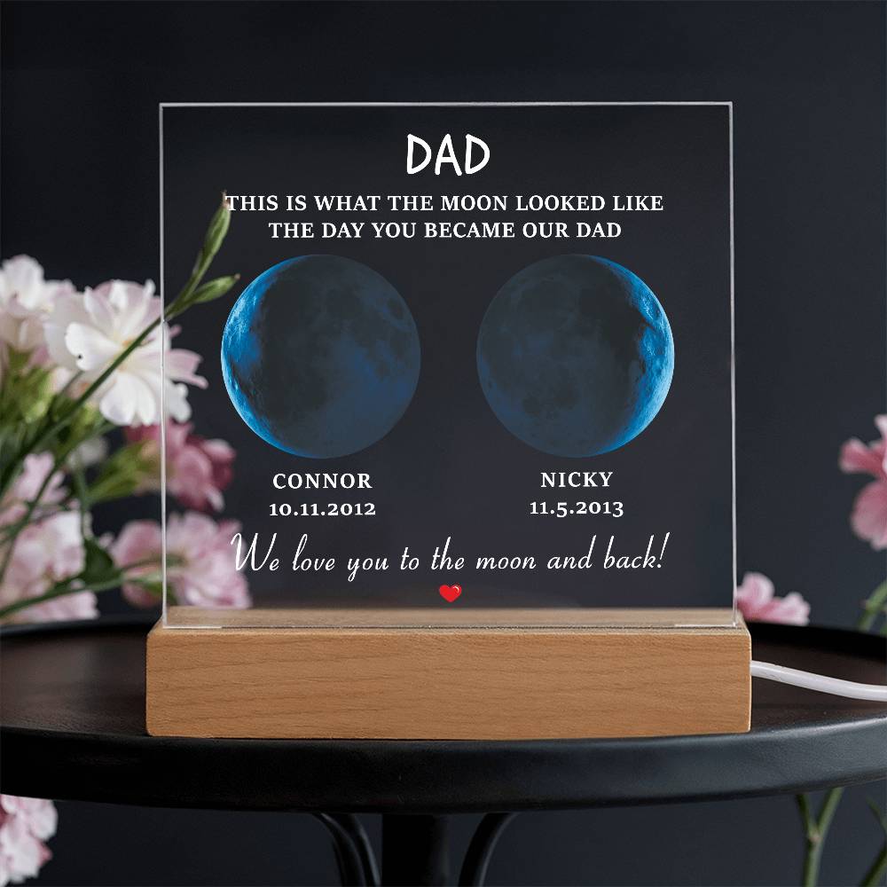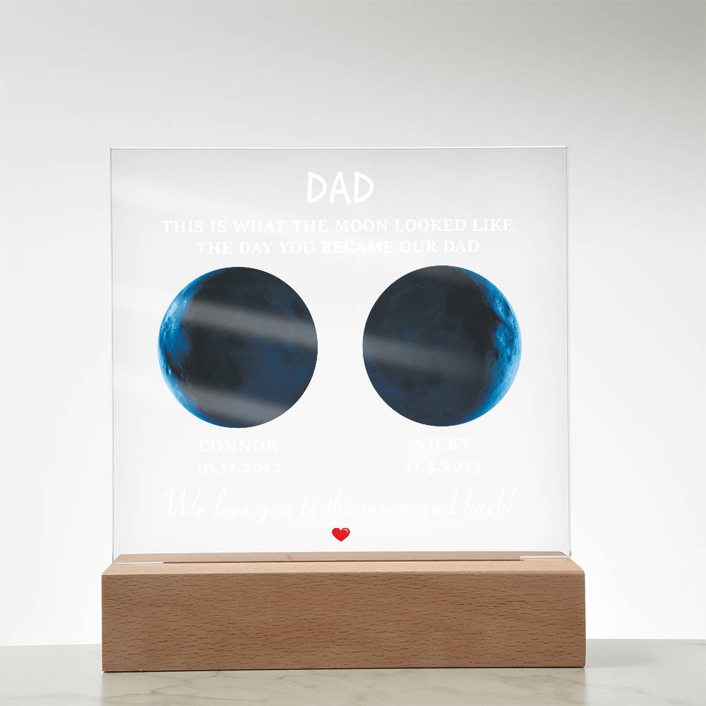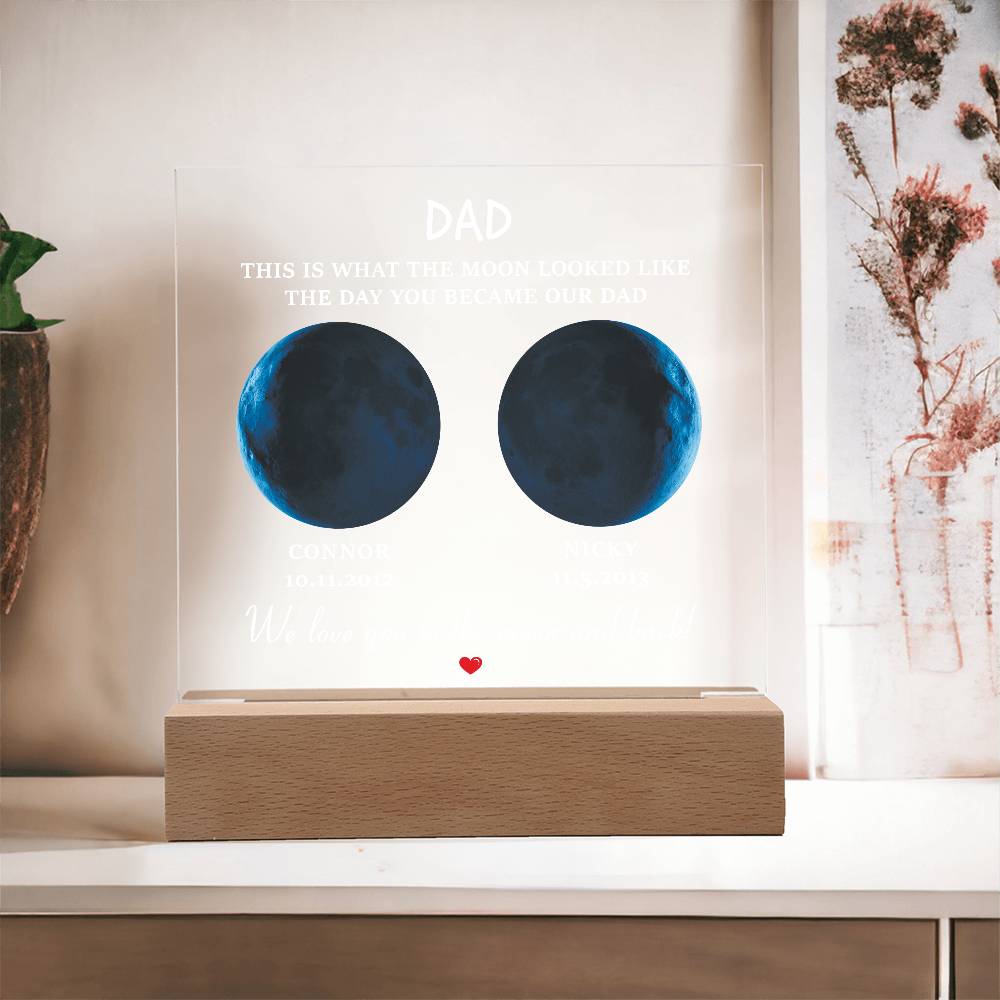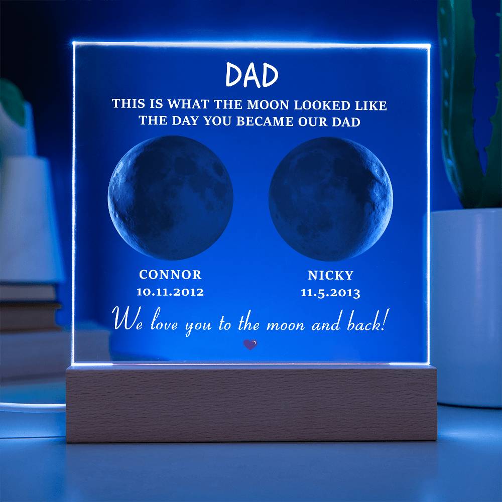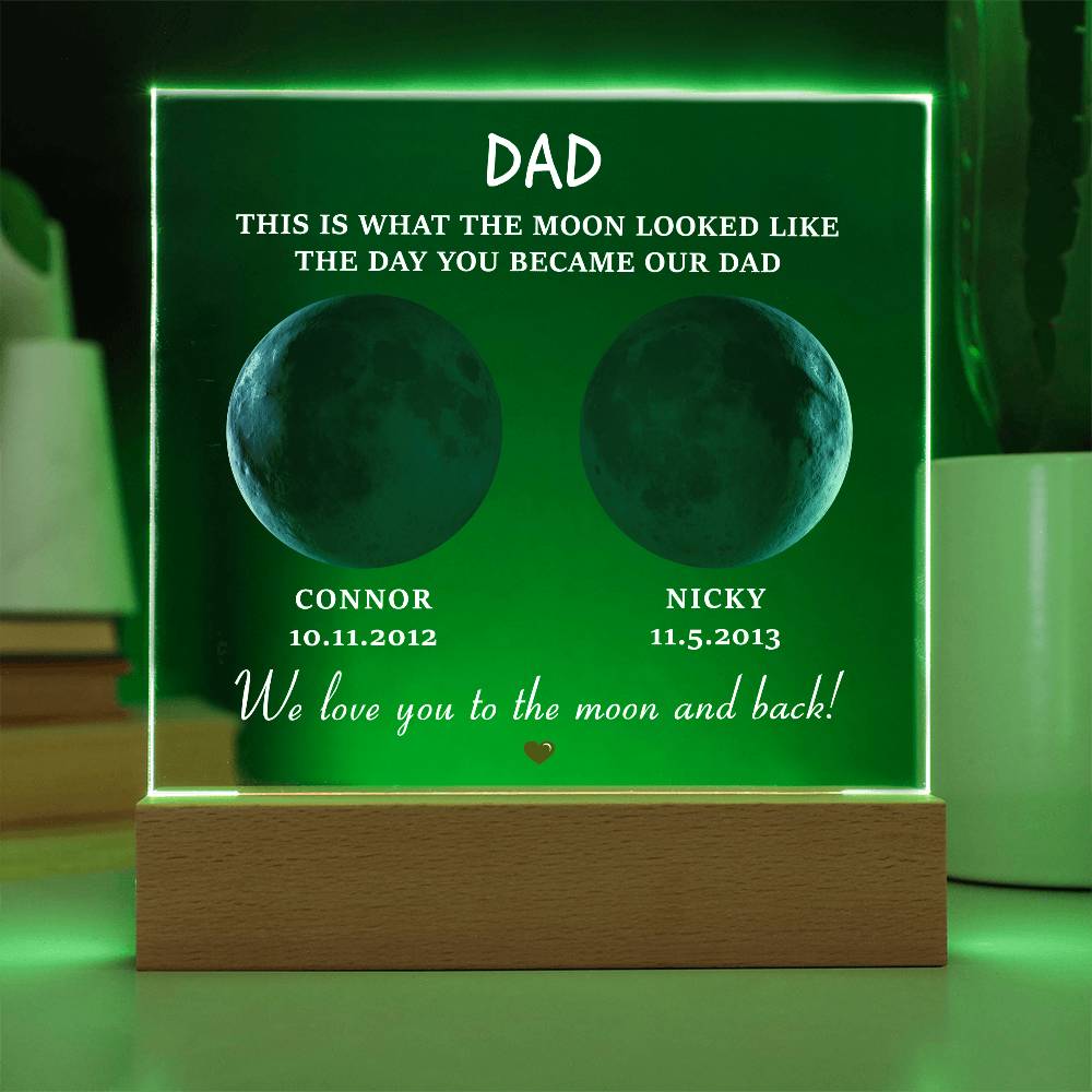 Your plaque will be crafted from premium acrylic with a professionally printed design for a polished look. It comes with a stylish wooden LED base, and you can choose between a USB plug-in option OR a cordless battery-operated option (requires 2 AAA batteries, not included). Both LED bases feature 7 vibrant colors, allowing the user to customize the lighting with various color changes and dynamic cycles.