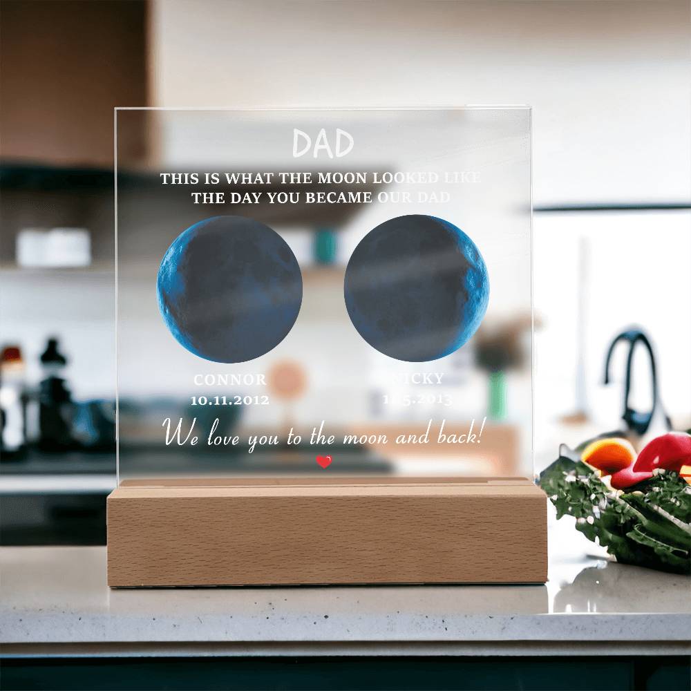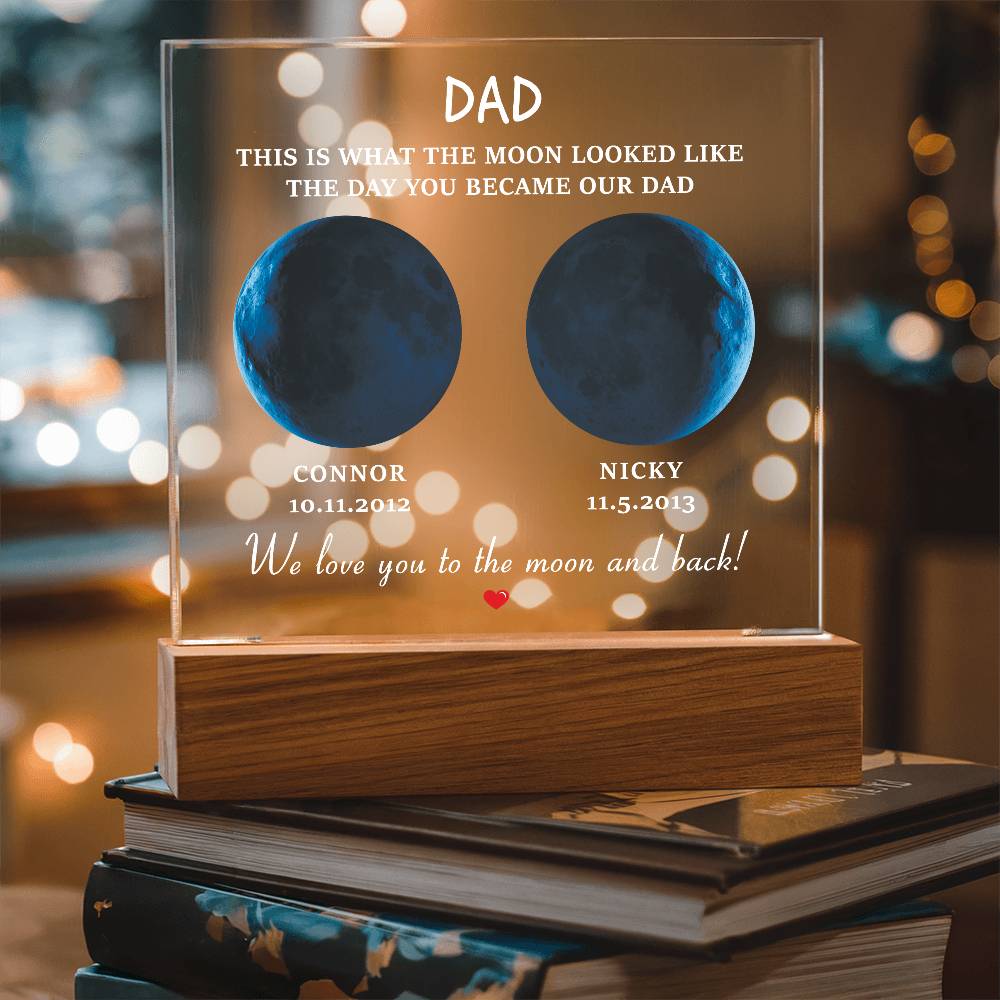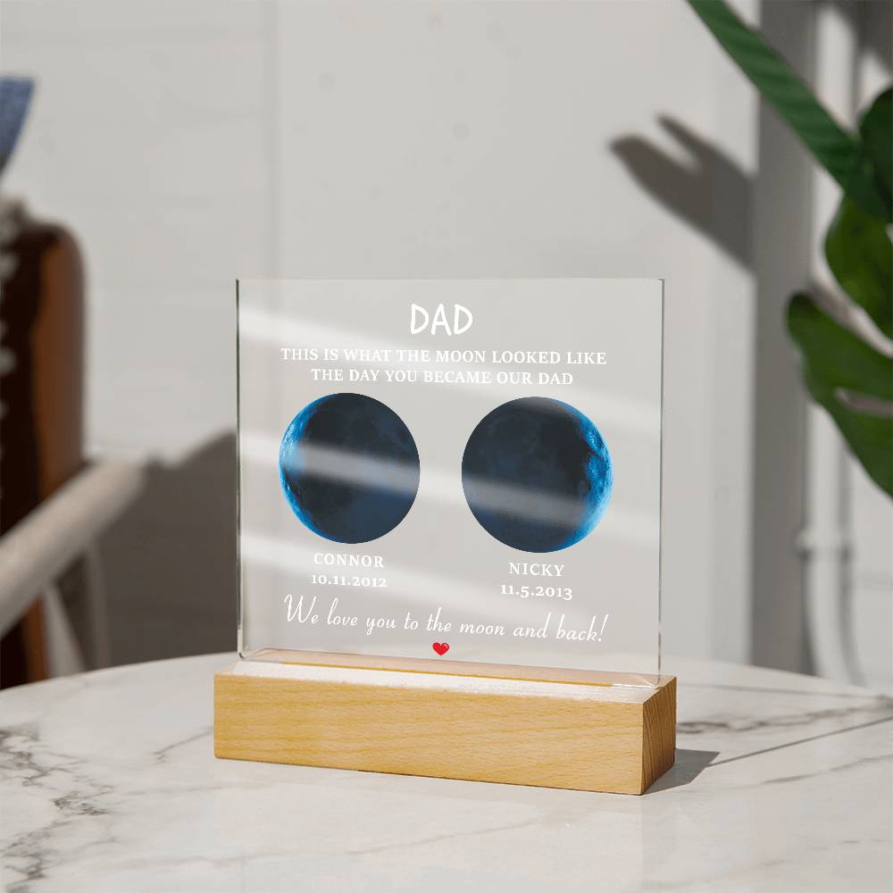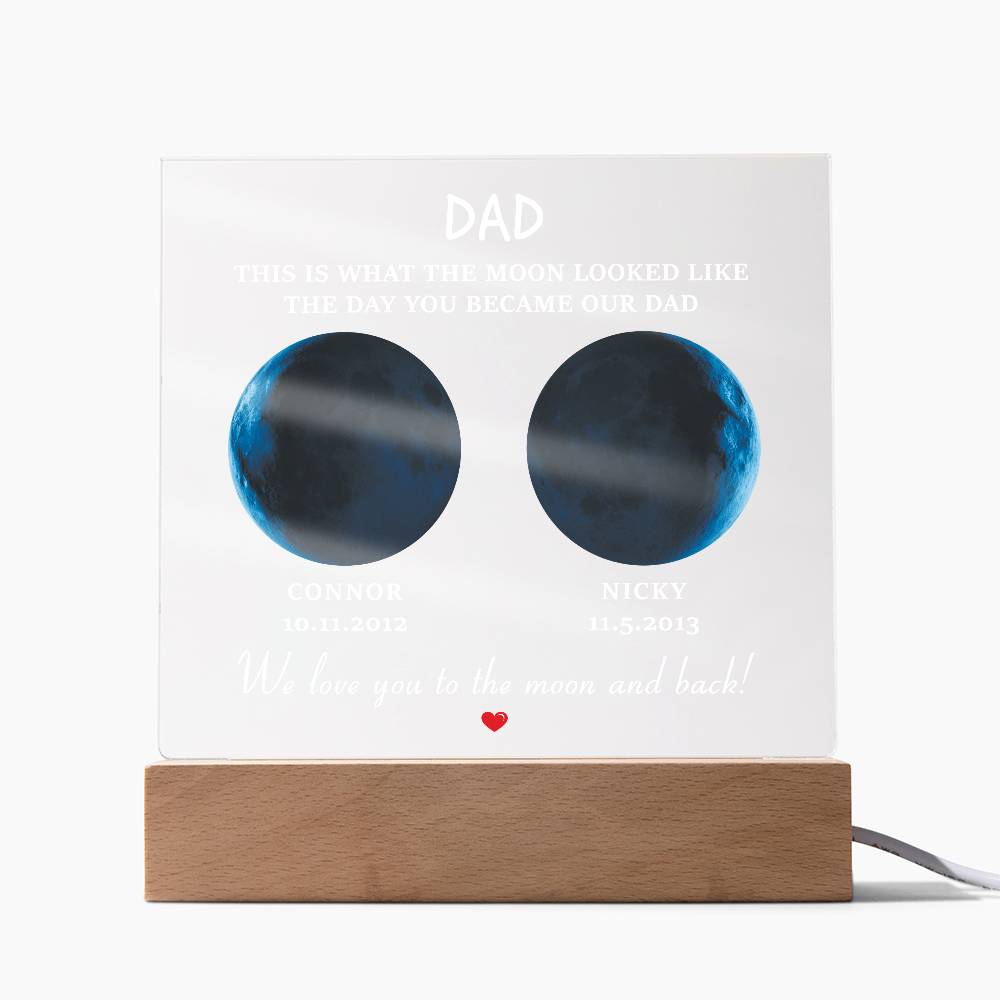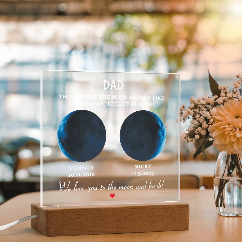 Your plaque will be crafted from premium acrylic with a professionally printed design for a polished look. It comes with a stylish wooden LED base, and you can choose between a USB plug-in option OR a cordless battery-operated option (requires 2 AAA batteries, not included). Both LED bases feature 7 vibrant colors, allowing the user to customize the lighting with various color changes and dynamic cycles.