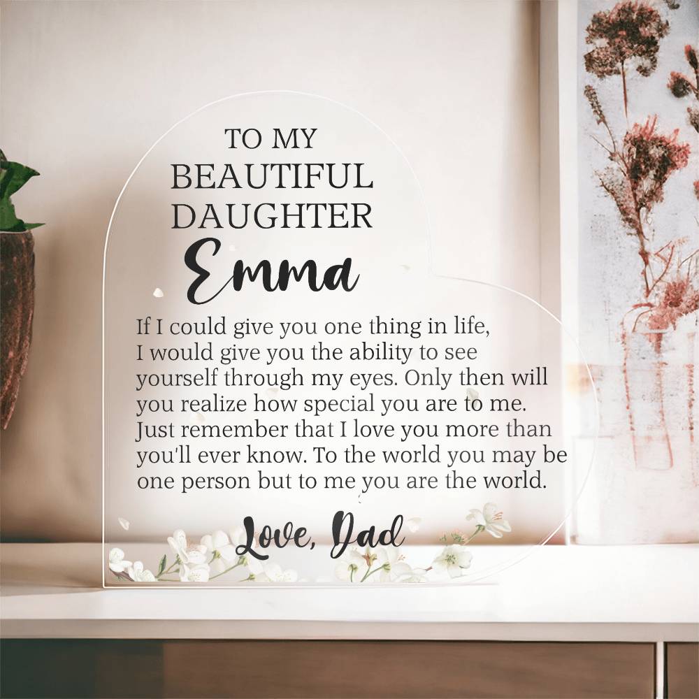 Show your loved ones how much you care with our Printed Heart Shaped Acrylic Plaque! Crafted with precision and care, this stunning piece of art is a perfect expression of your heartfelt emotions. Made from premium quality acrylic, it boasts a crystal-clear finish that catches the light, adding a touch of elegance to any space. The vibrant printed design creates a unique gift giving experience that will leave your special someone speechless! This is the ideal present for your beloved partner, family members, or dear friends on special occasions like anniversaries, weddings, birthdays, or Valentine's Day. Let your loved ones know how much they mean to you by purchasing today!