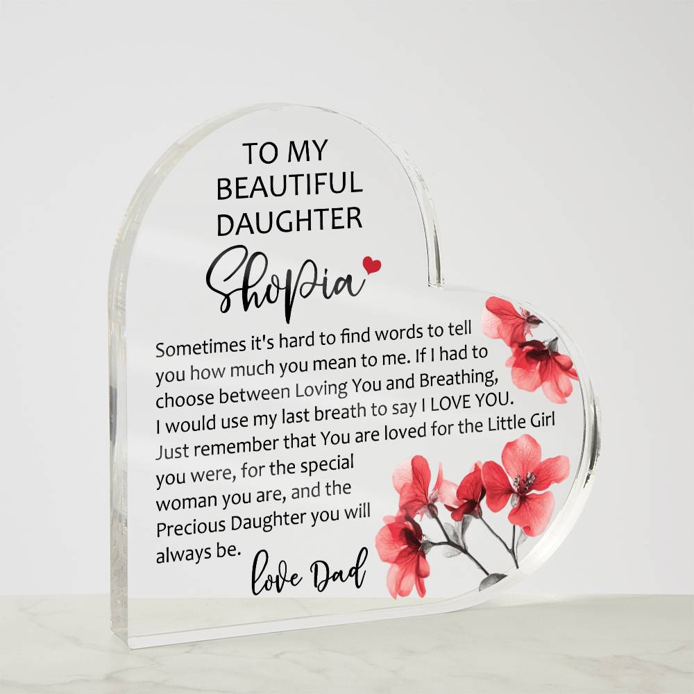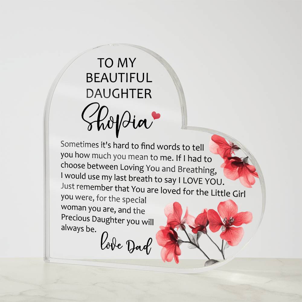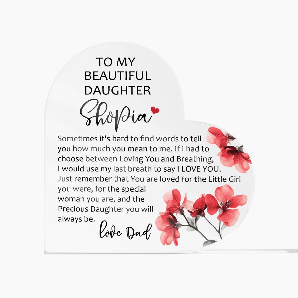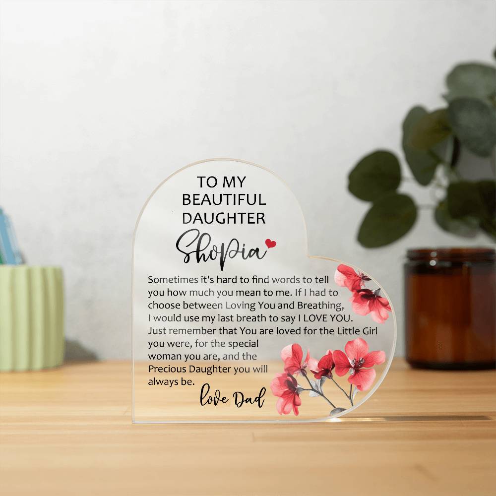 Show your loved ones how much you care with our Printed Heart Shaped Acrylic Plaque! Crafted with precision and care, this stunning piece of art is a perfect expression of your heartfelt emotions. Made from premium quality acrylic, it boasts a crystal-clear finish that catches the light, adding a touch of elegance to any space. The vibrant printed design creates a unique gift giving experience that will leave your special someone speechless! This is the ideal present for your beloved partner, family members, or dear friends on special occasions like anniversaries, weddings, birthdays, or Valentine's Day. Let your loved ones know how much they mean to you by purchasing today!