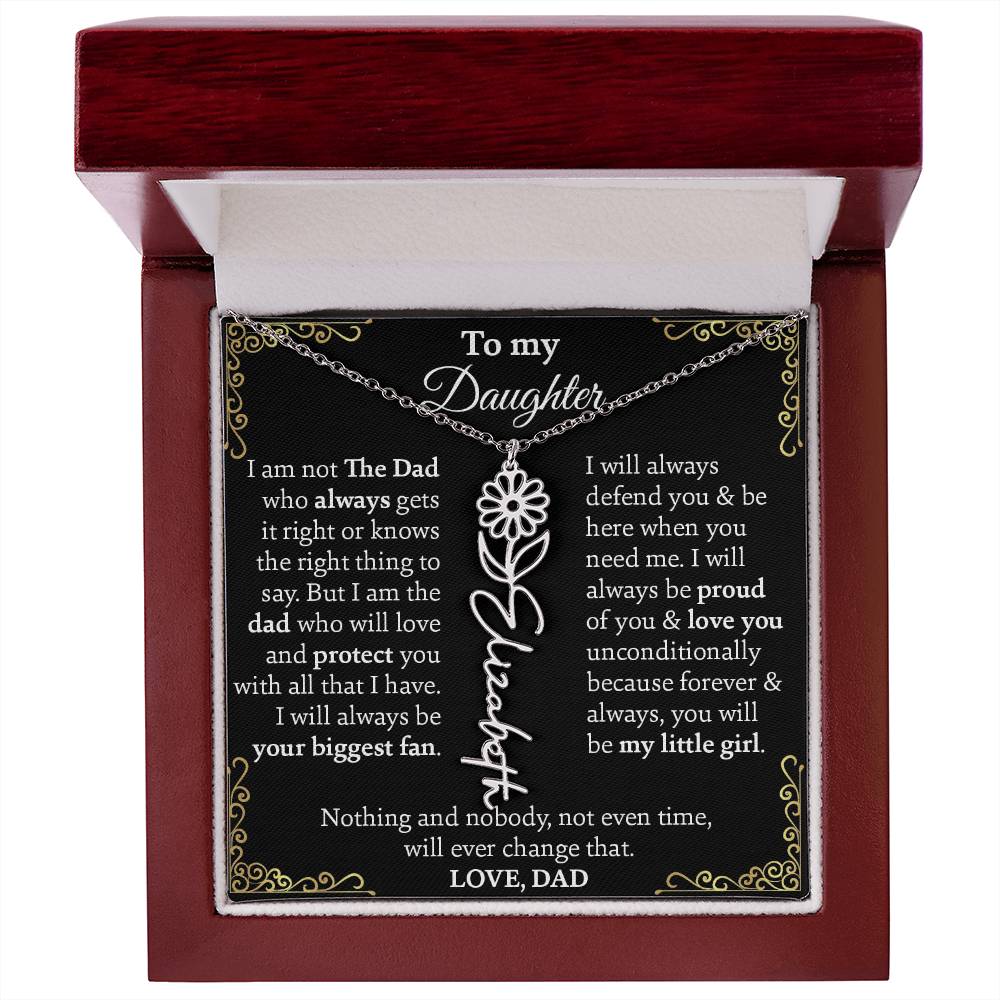 This stylish necklace features a cursive name design suspended on an 18”-20” adjustable cable chain, making it both personal and beautiful! Your necklace will be custom made upon ordering in the name or word of your choice, with up to 10 characters, and with the birth flower of your choosing. It's a gift that they will surely want to keep close to their heart forever!