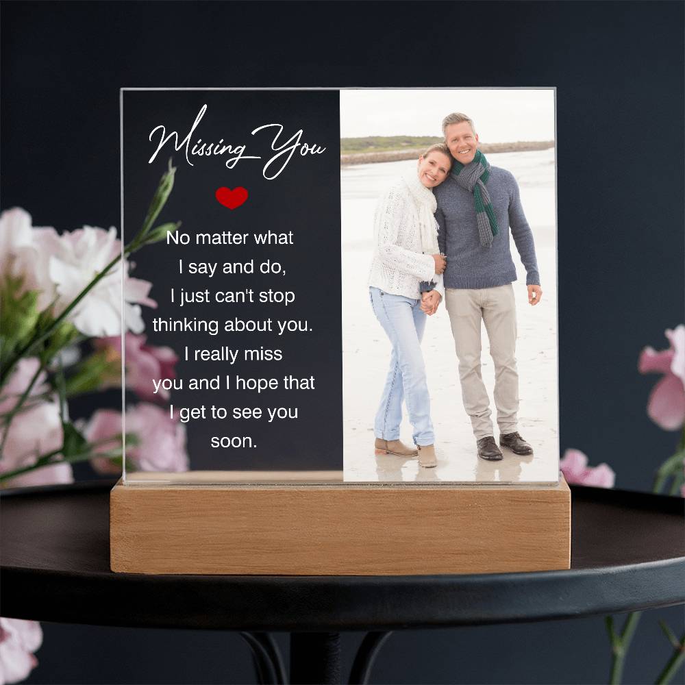 Your plaque will be crafted from premium acrylic with a professionally printed design for a polished look. It comes with a stylish wooden LED base, and you can choose between a USB plug-in option OR a cordless battery-operated option (requires 2 AAA batteries, not included). Both LED bases feature 7 vibrant colors, allowing the user to customize the lighting with various color changes and dynamic cycles.