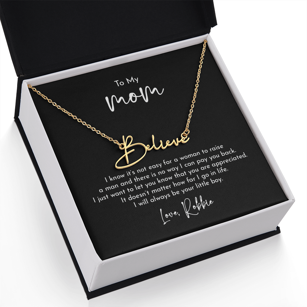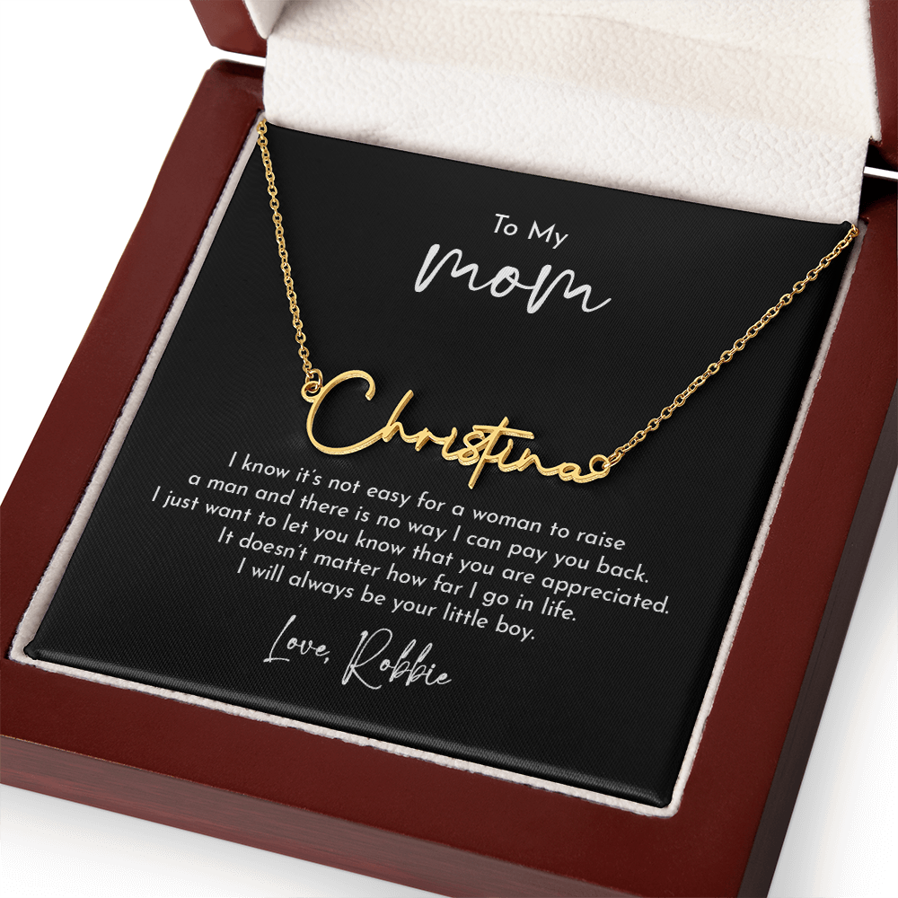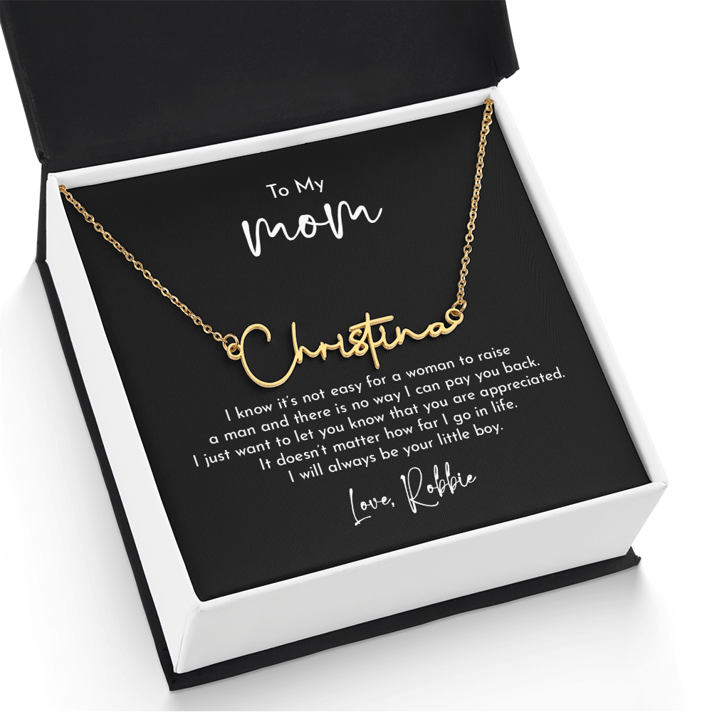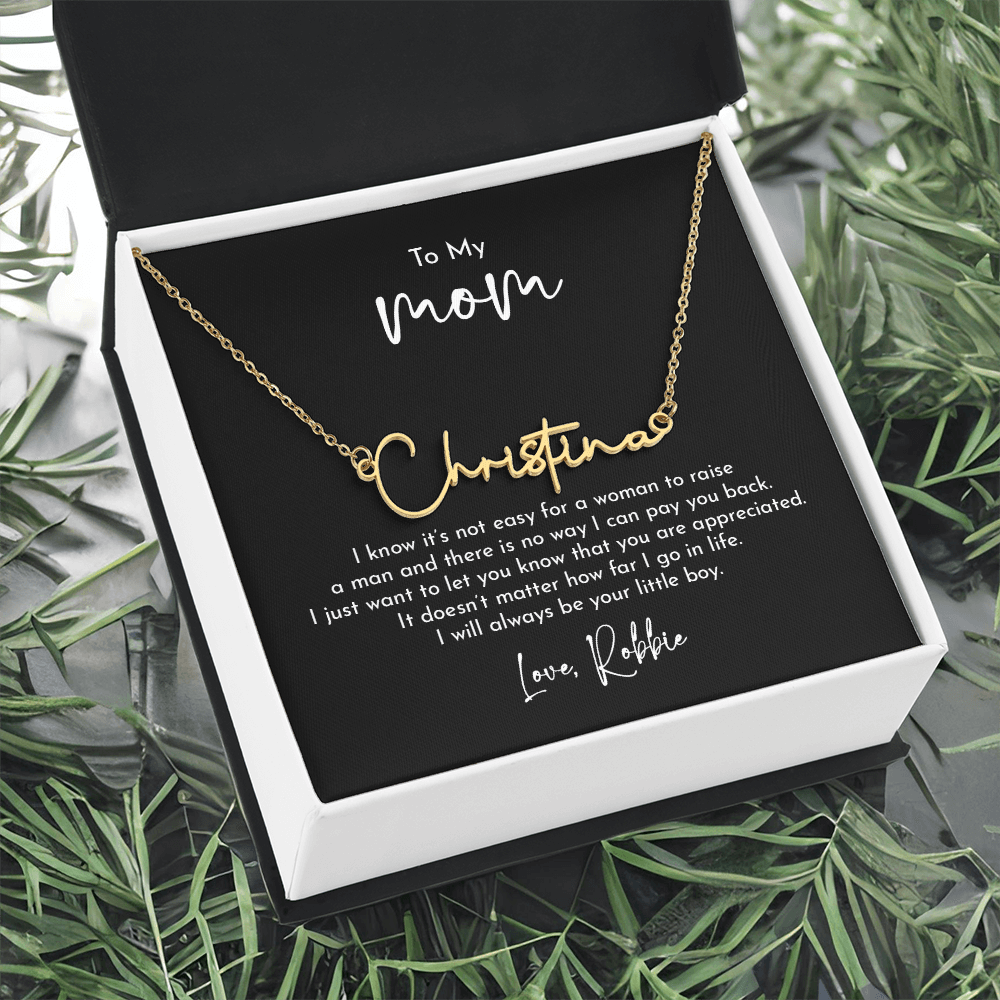 Looking to give your loved one a stylish and personalized gift that will melt their heart? Check out our Signature Style Name Necklace! This adorable custom necklace features a contemporary font that is sure to become a favorite accessory! From a heart-warming holiday present, special occasion gift, or just because, this unique necklace adds a trendy touch to any outfit