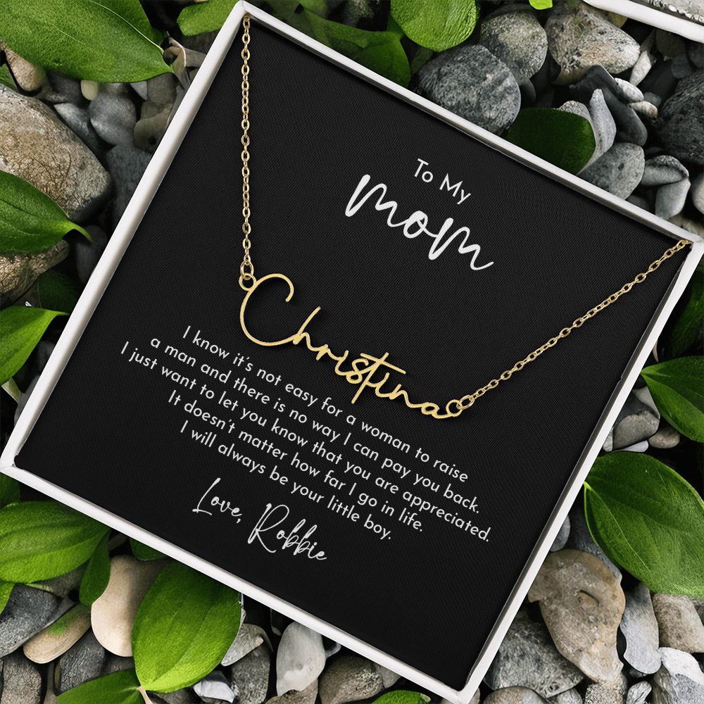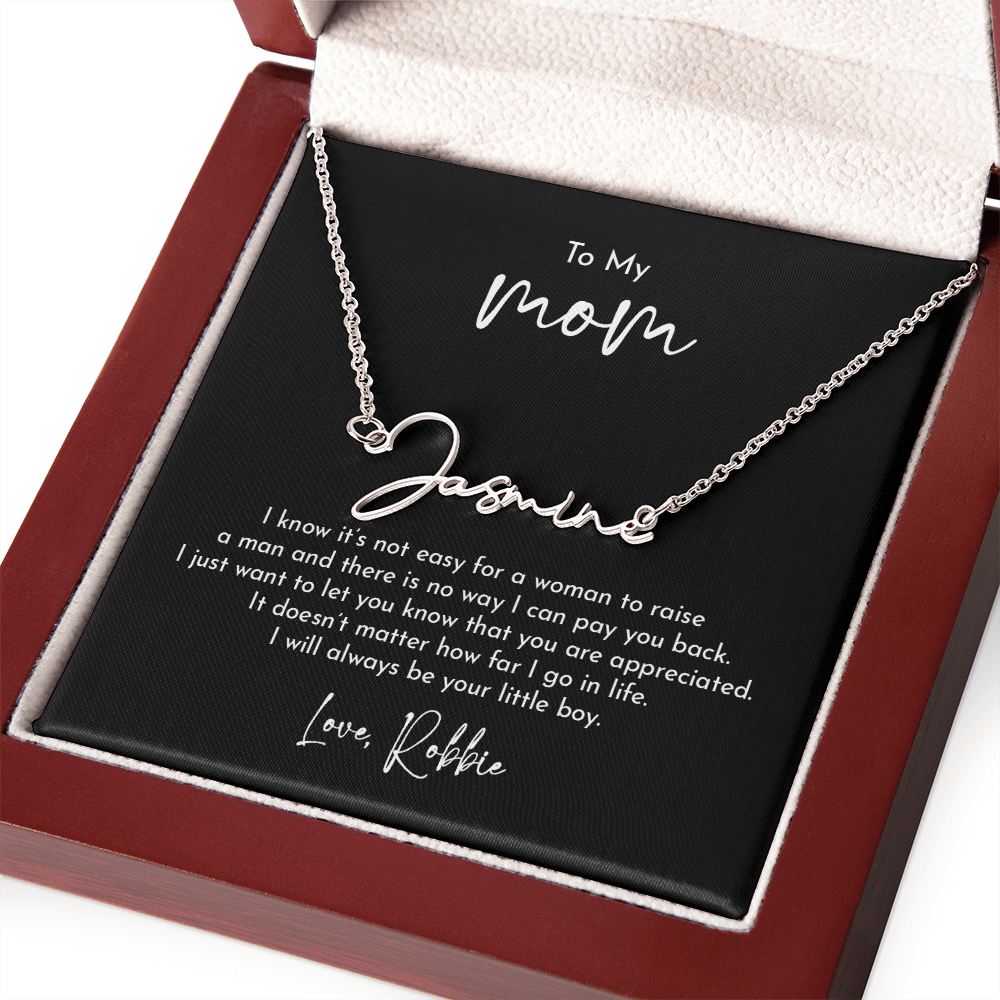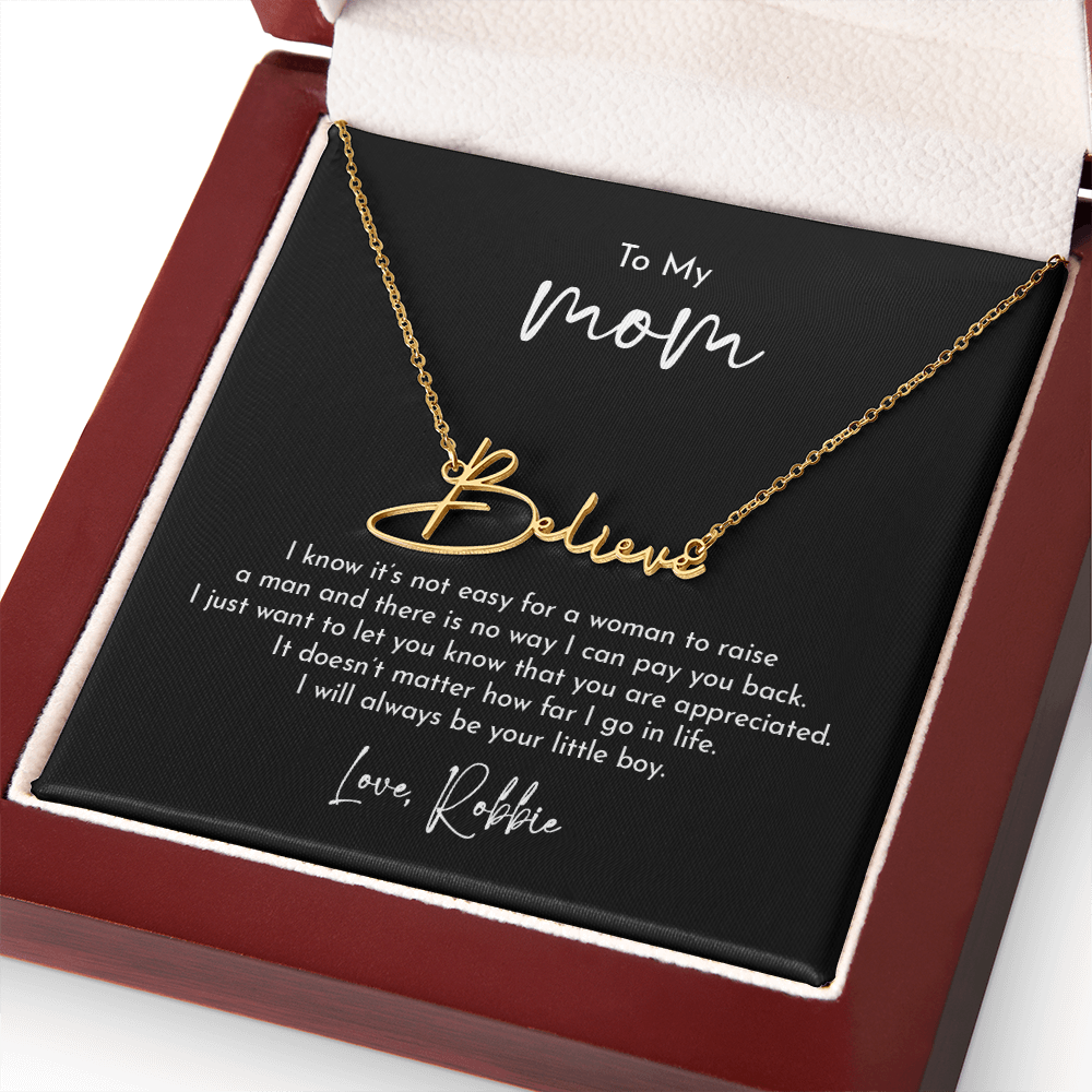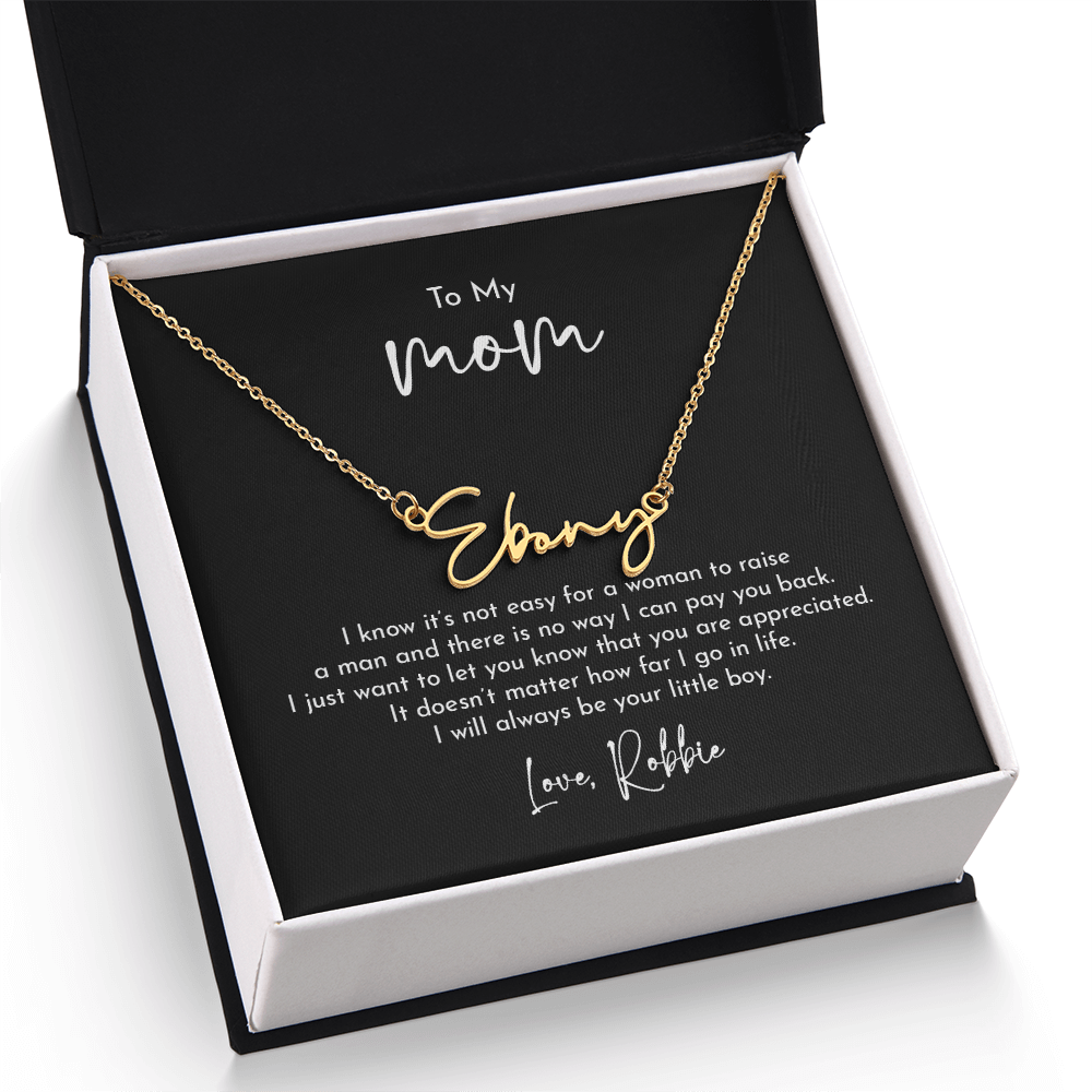 Looking to give your loved one a stylish and personalized gift that will melt their heart? Check out our Signature Style Name Necklace! This adorable custom necklace features a contemporary font that is sure to become a favorite accessory! From a heart-warming holiday present, special occasion gift, or just because, this unique necklace adds a trendy touch to any outfit