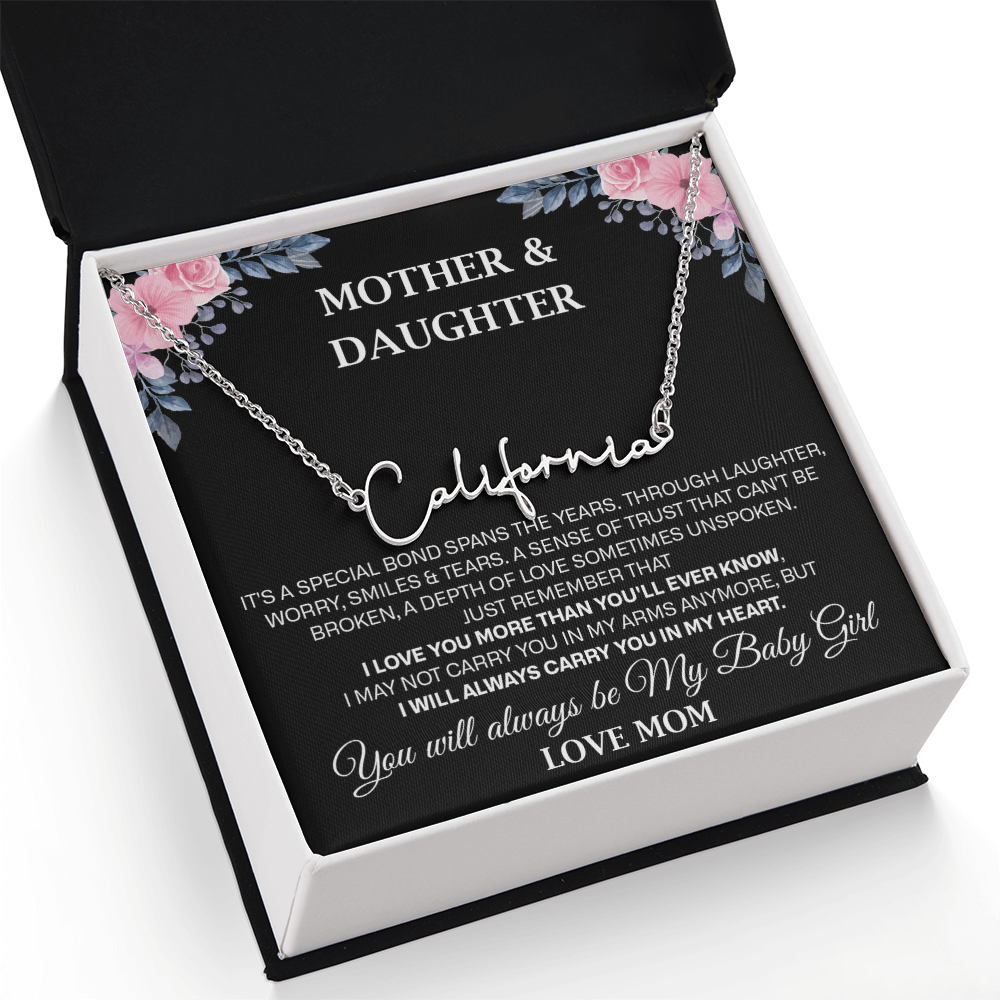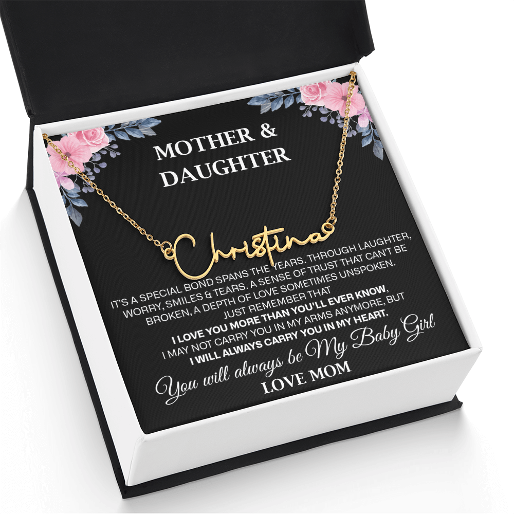The Signature Style Name Necklace features a pretty stylized font, and is available in polished stainless steel or 18K yellow gold finish. The pendant is dually suspended on an adjustable 16”-18” cable chain for versatility. Your necklace will be custom made upon ordering in the name or word of your choice, with up to 10 characters. It's a gift that they will surely want to keep close to their heart!