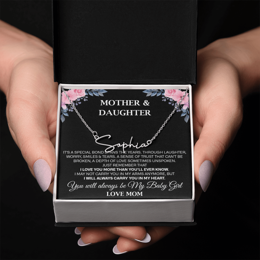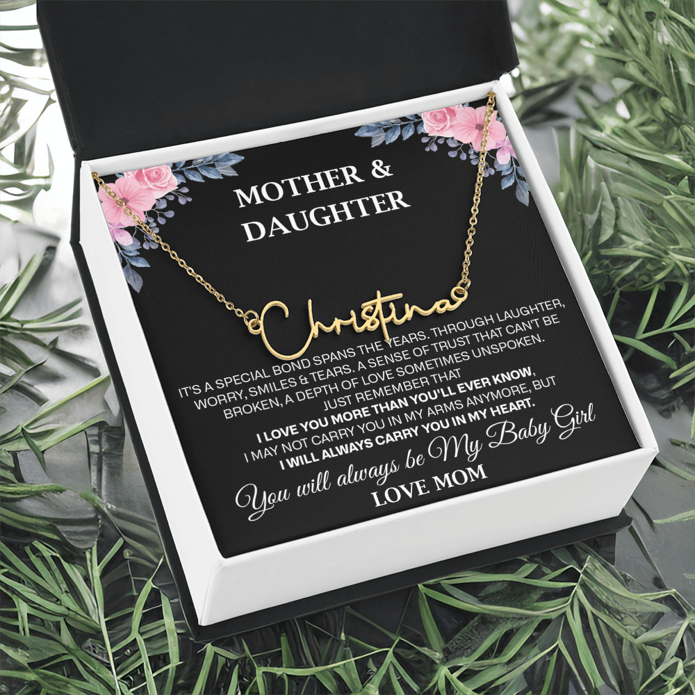 Looking to give your loved one a stylish and personalized gift that will melt their heart? Check out our Signature Style Name Necklace! This adorable custom necklace features a contemporary font that is sure to become a favorite accessory! From a heart-warming holiday present, special occasion gift, or just because, this unique necklace adds a trendy touch to any outfit