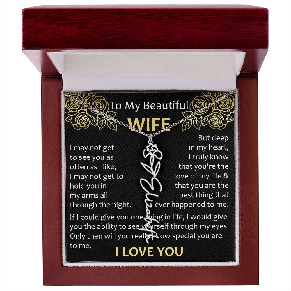 This stylish necklace features a cursive name design suspended on an 18”-20” adjustable cable chain, making it both personal and beautiful! Your necklace will be custom made upon ordering in the name or word of your choice, with up to 10 characters, and with the birth flower of your choosing. It's a gift that they will surely want to keep close to their heart forever!
