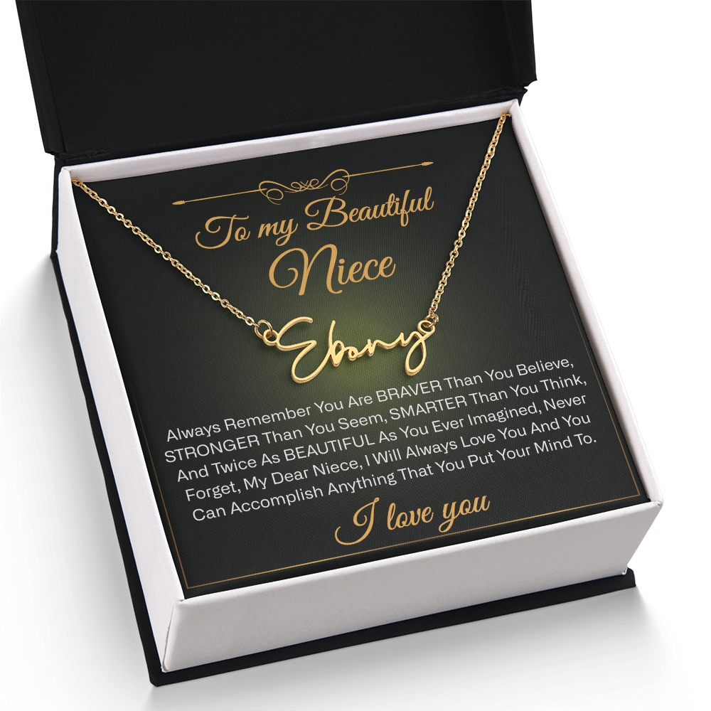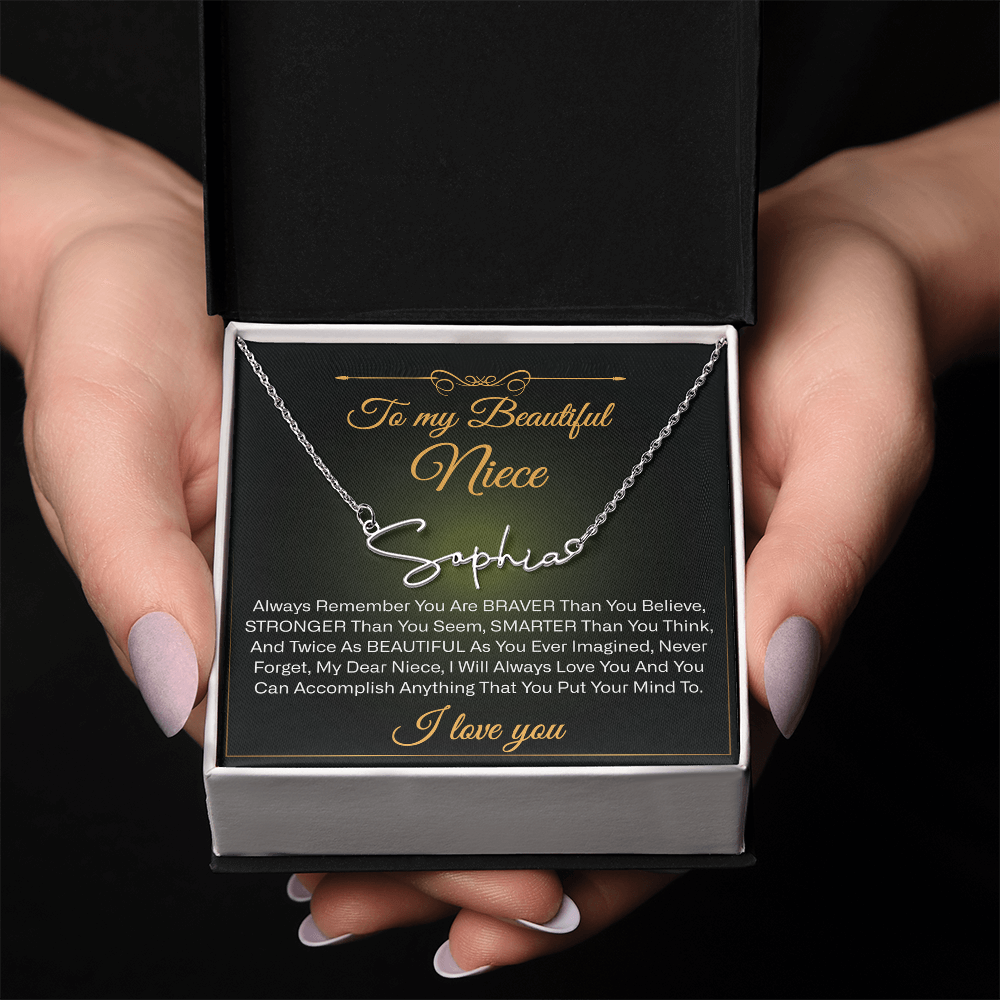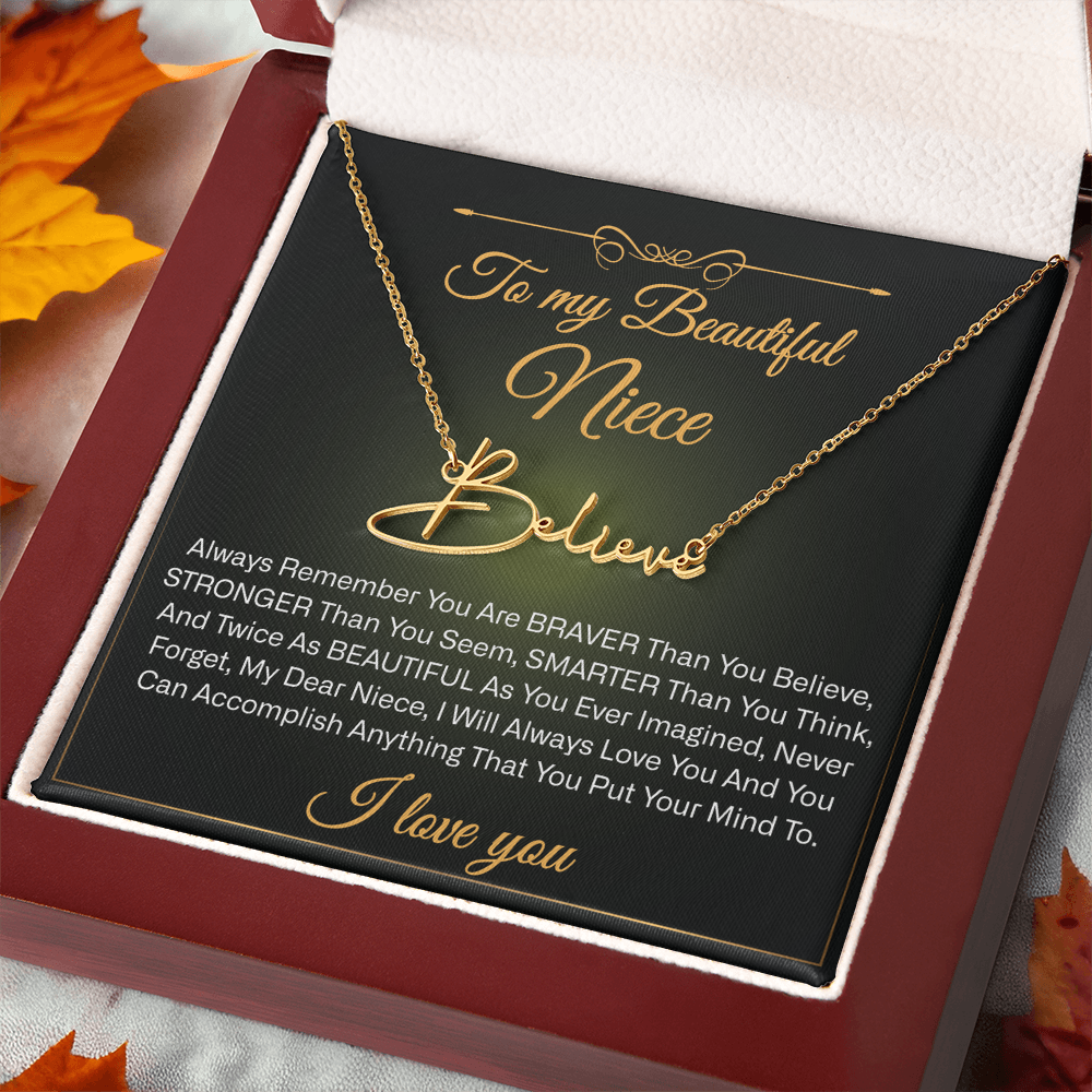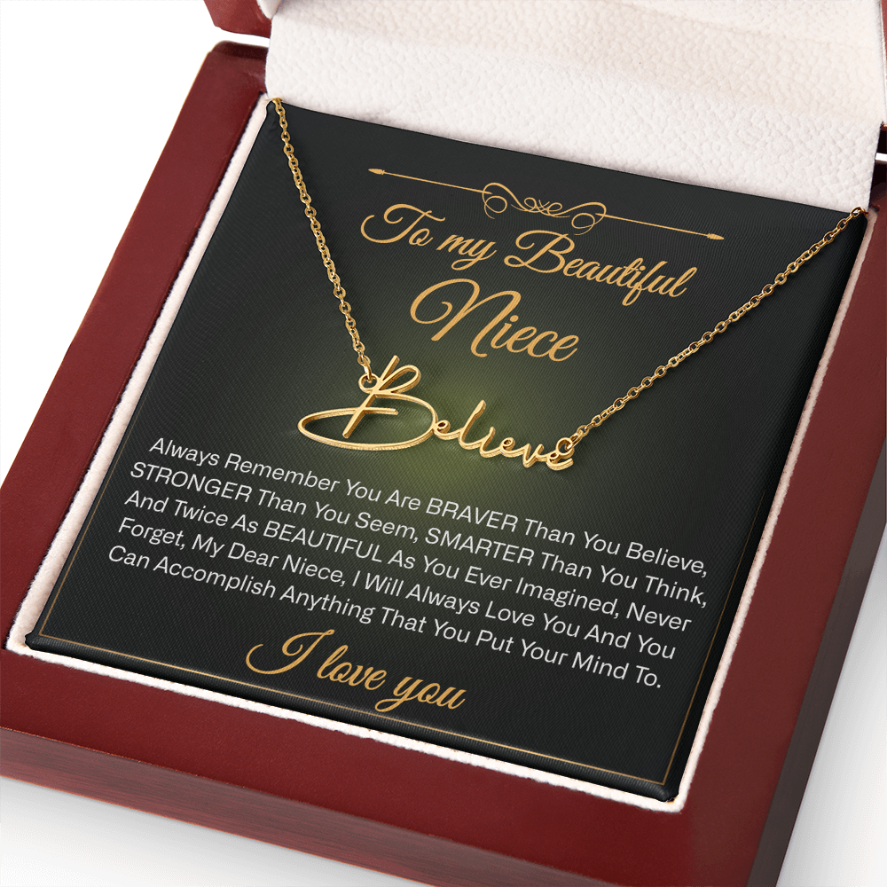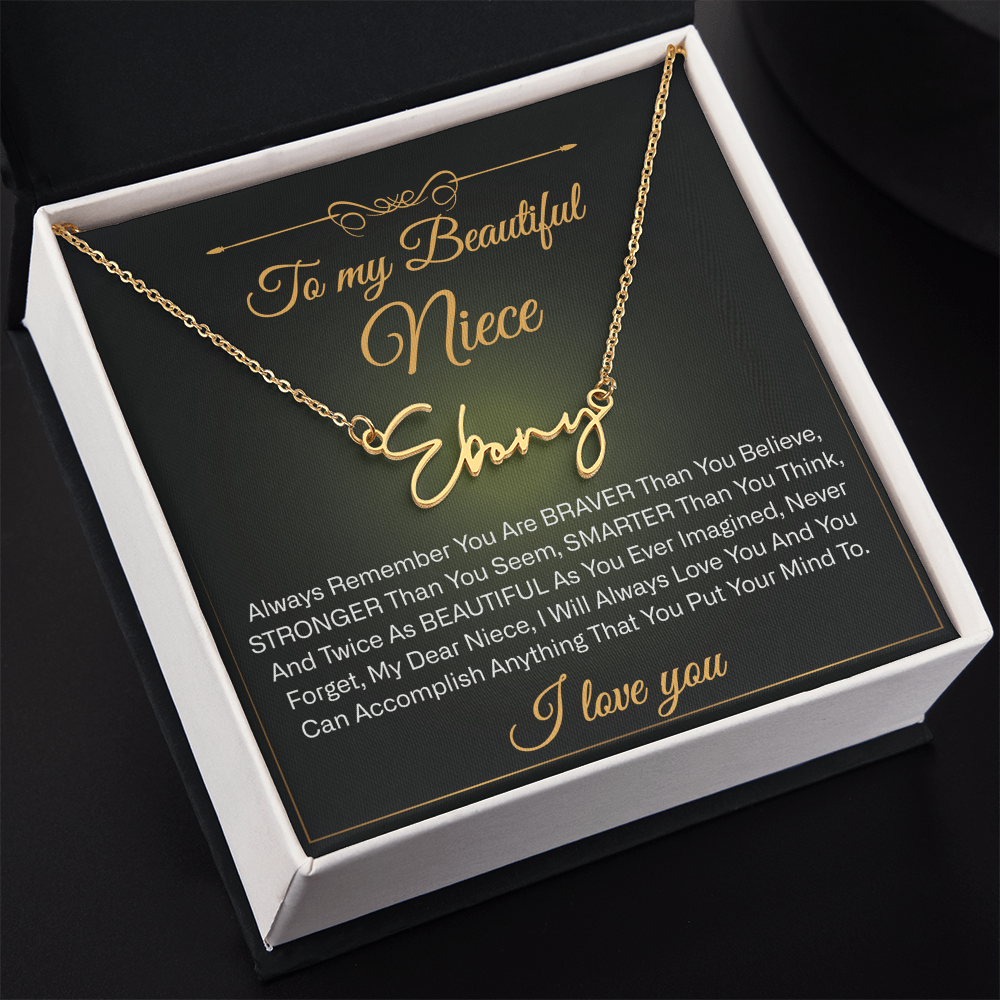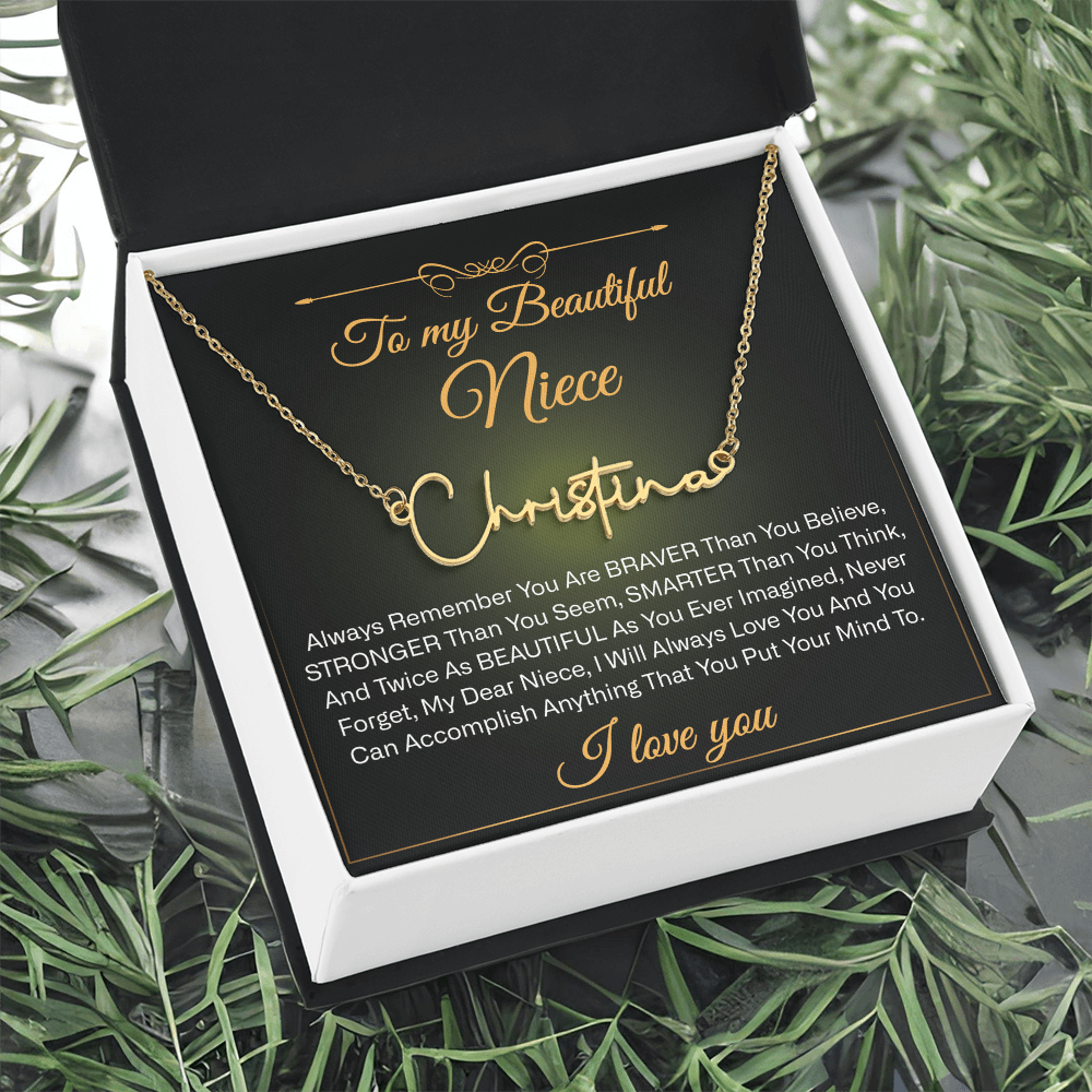 Looking to give your loved one a stylish and personalized gift that will melt their heart? Check out our Signature Style Name Necklace! This adorable custom necklace features a contemporary font that is sure to become a favorite accessory! From a heart-warming holiday present, special occasion gift, or just because, this unique necklace adds a trendy touch to any outfit