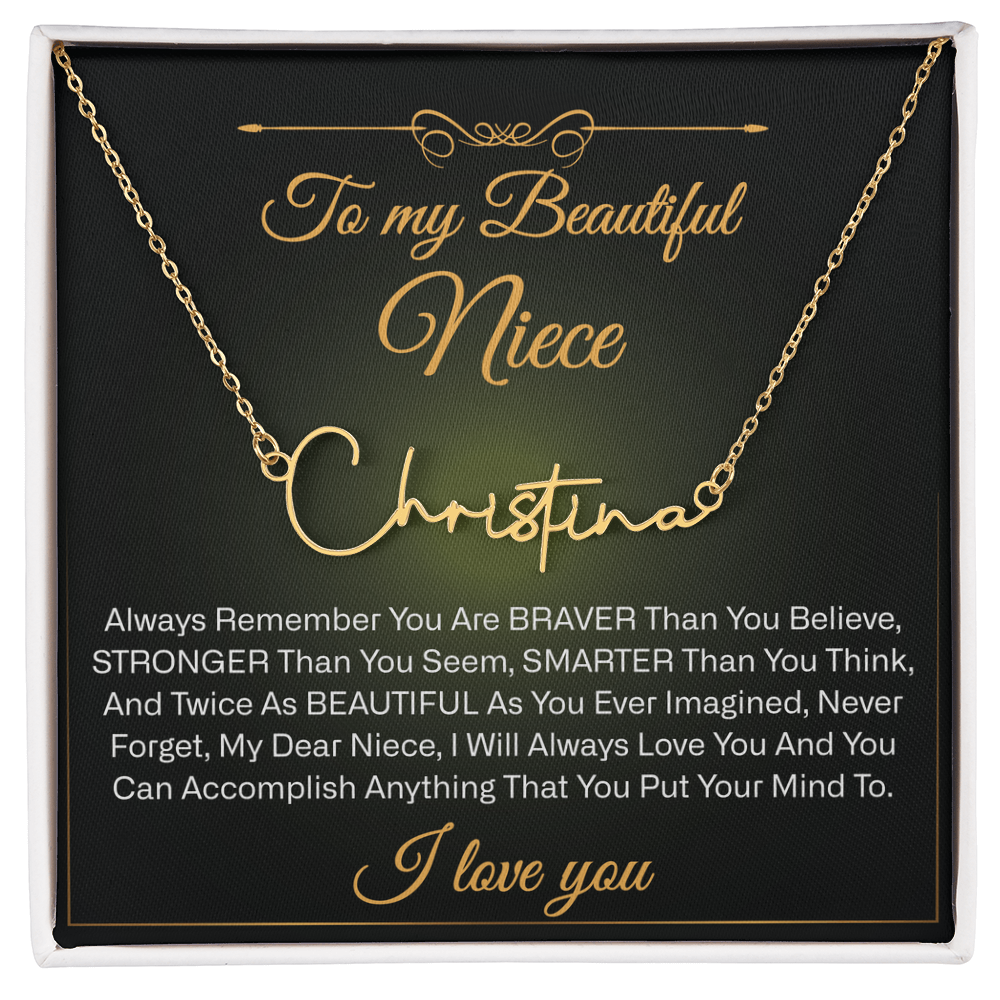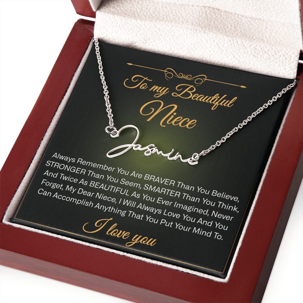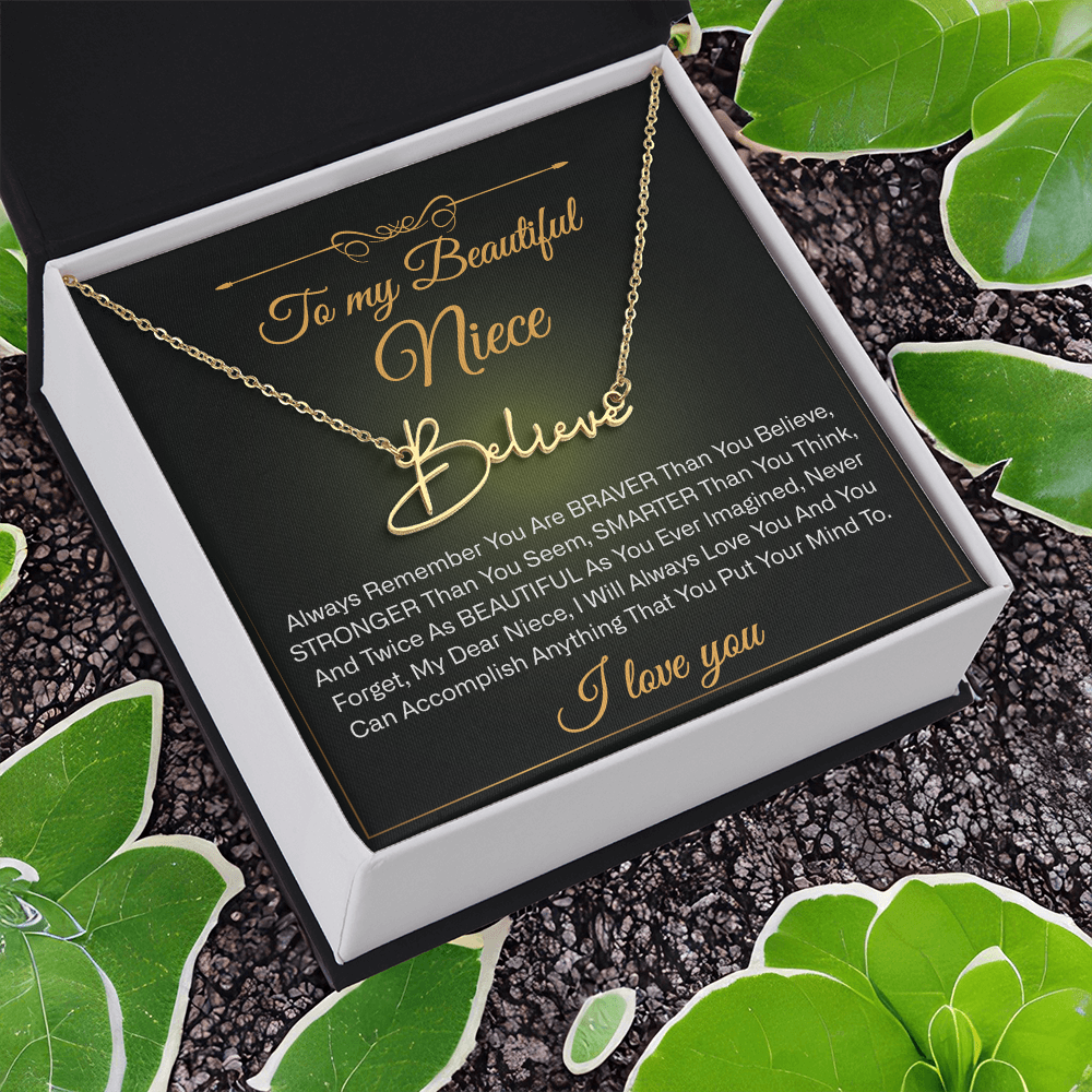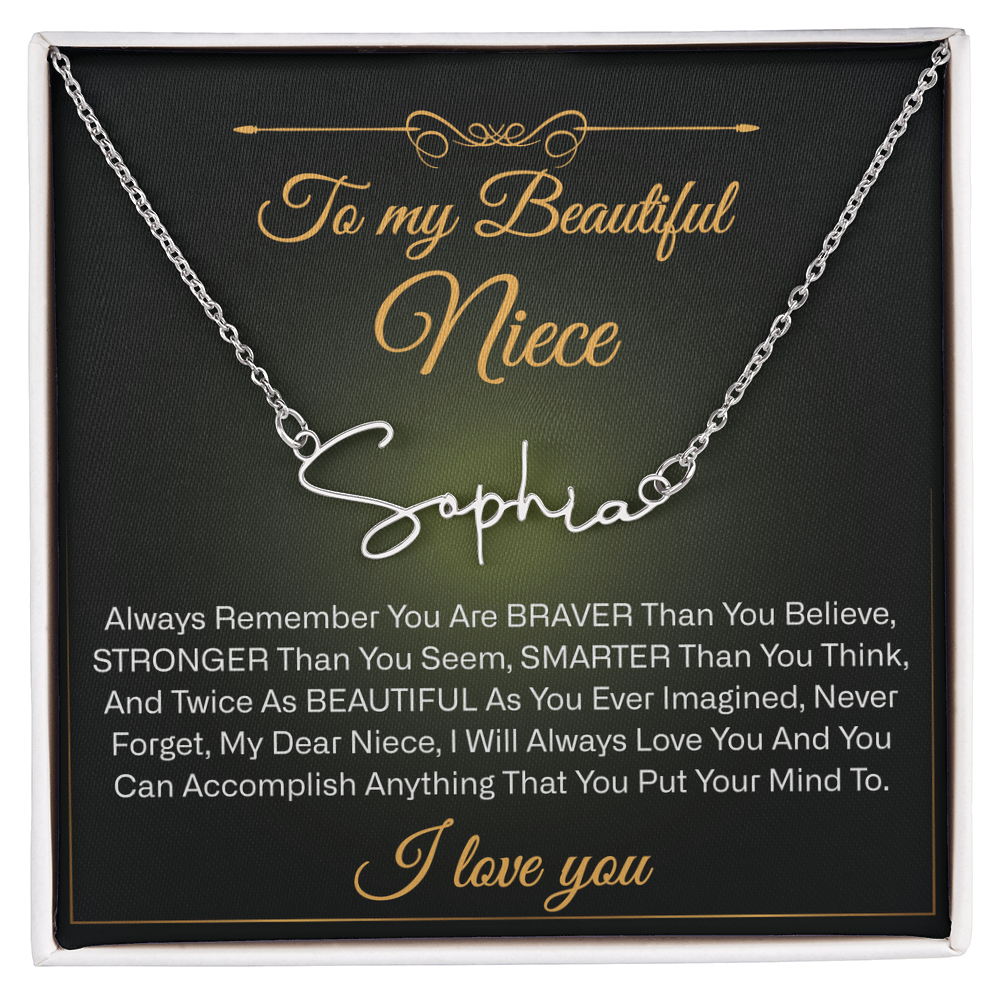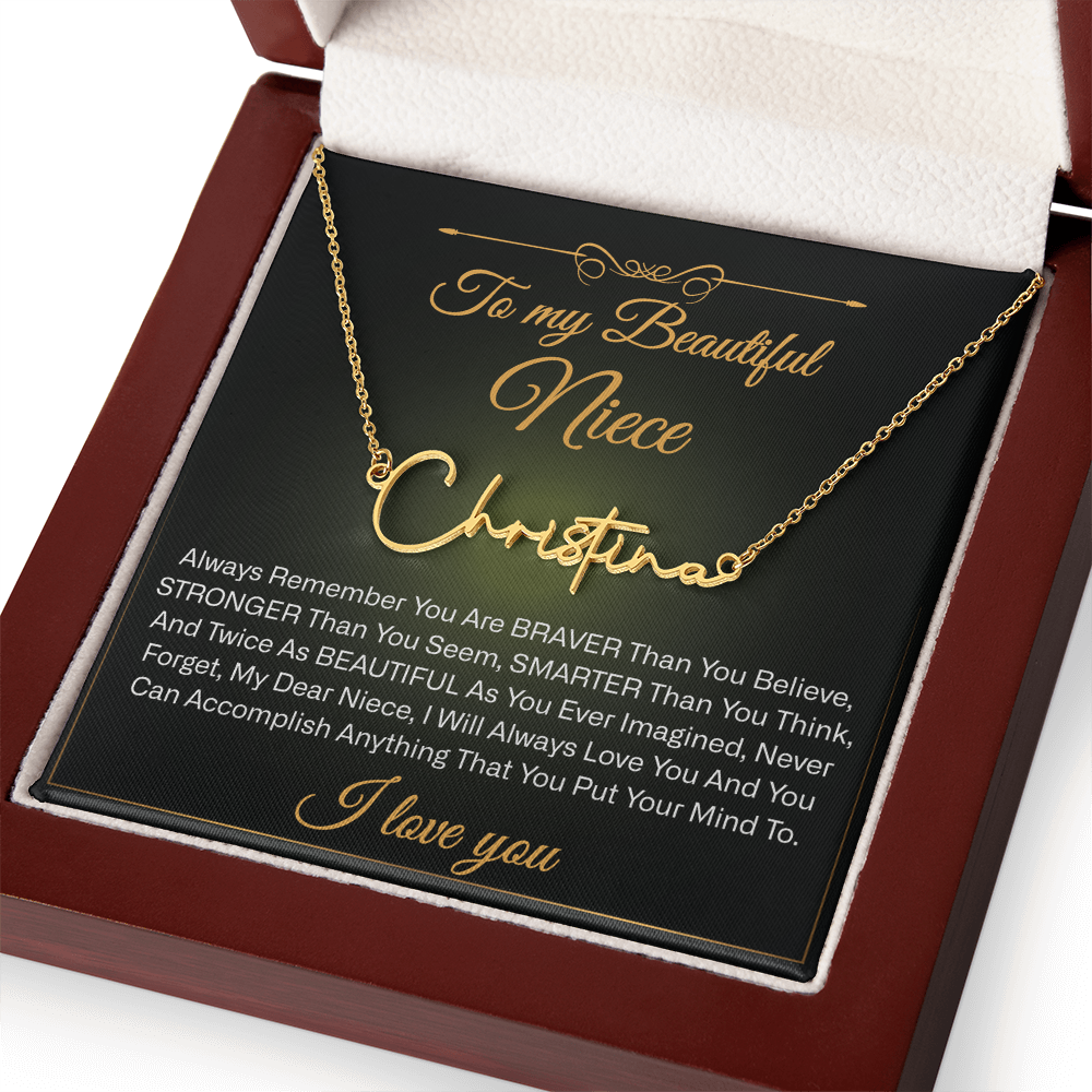 Looking to give your loved one a stylish and personalized gift that will melt their heart? Check out our Signature Style Name Necklace! This adorable custom necklace features a contemporary font that is sure to become a favorite accessory! From a heart-warming holiday present, special occasion gift, or just because, this unique necklace adds a trendy touch to any outfit
