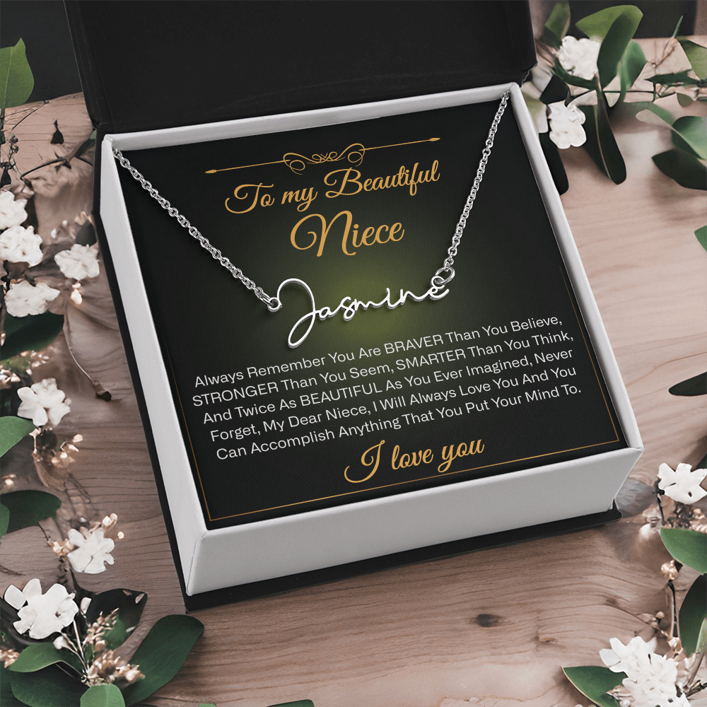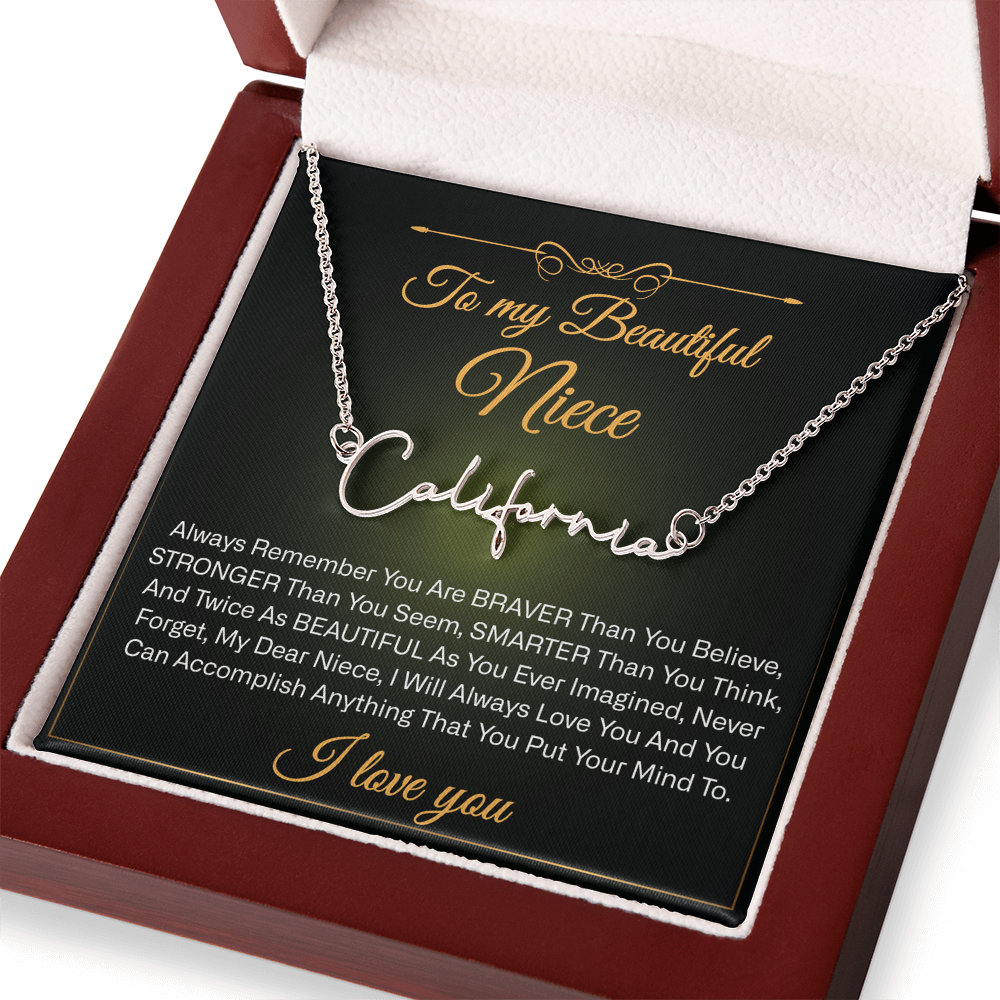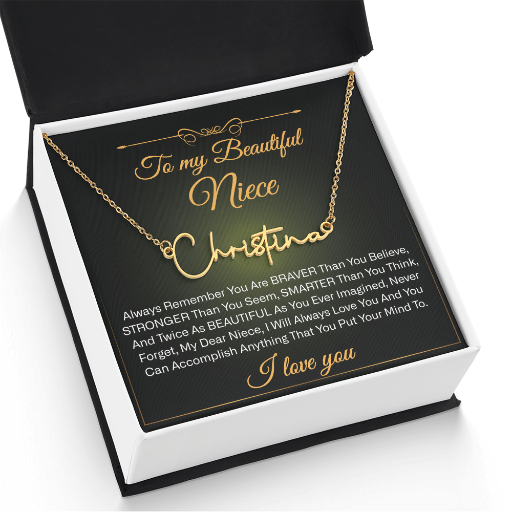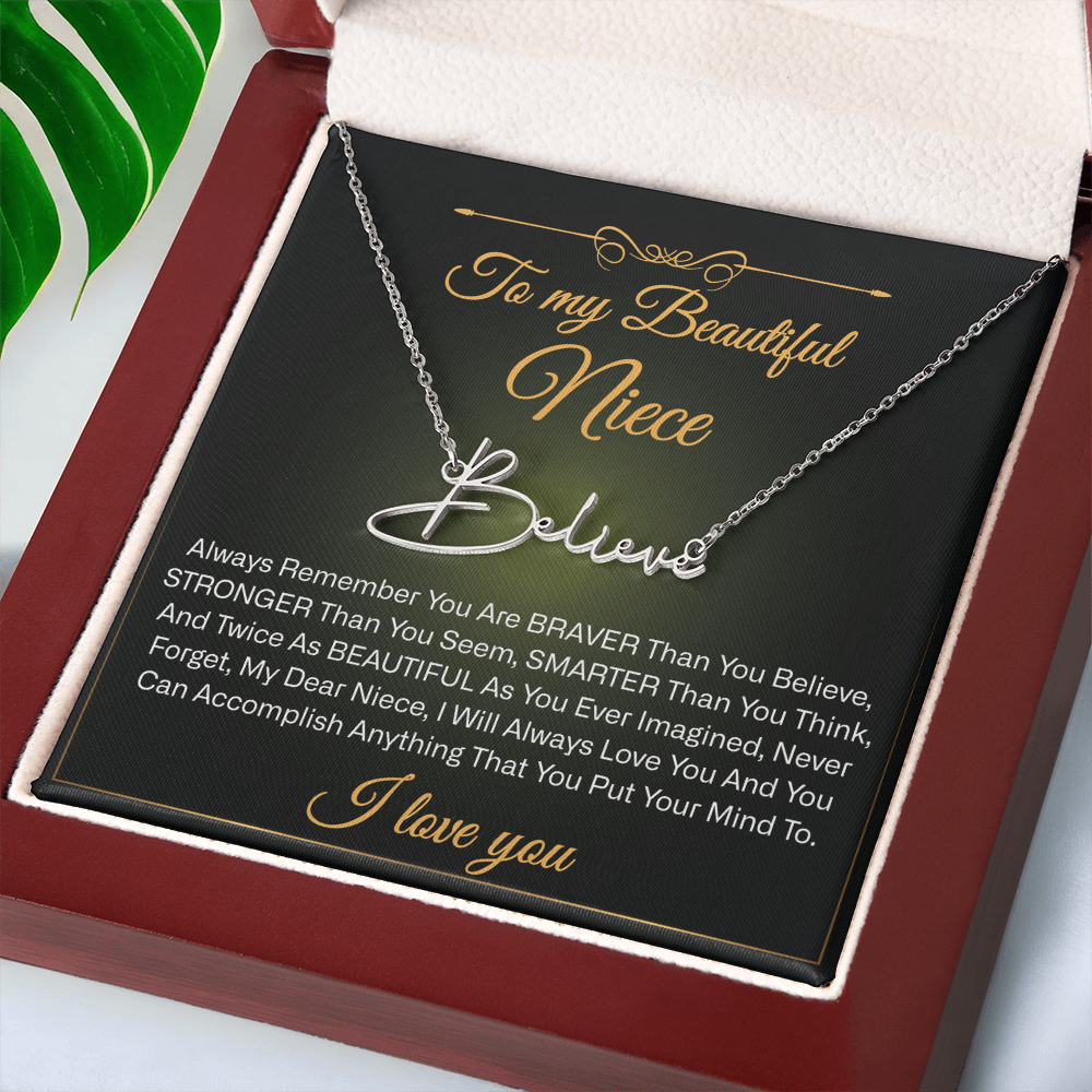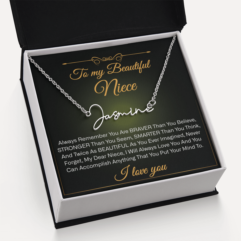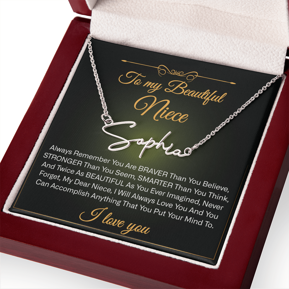 Looking to give your loved one a stylish and personalized gift that will melt their heart? Check out our Signature Style Name Necklace! This adorable custom necklace features a contemporary font that is sure to become a favorite accessory! From a heart-warming holiday present, special occasion gift, or just because, this unique necklace adds a trendy touch to any outfit