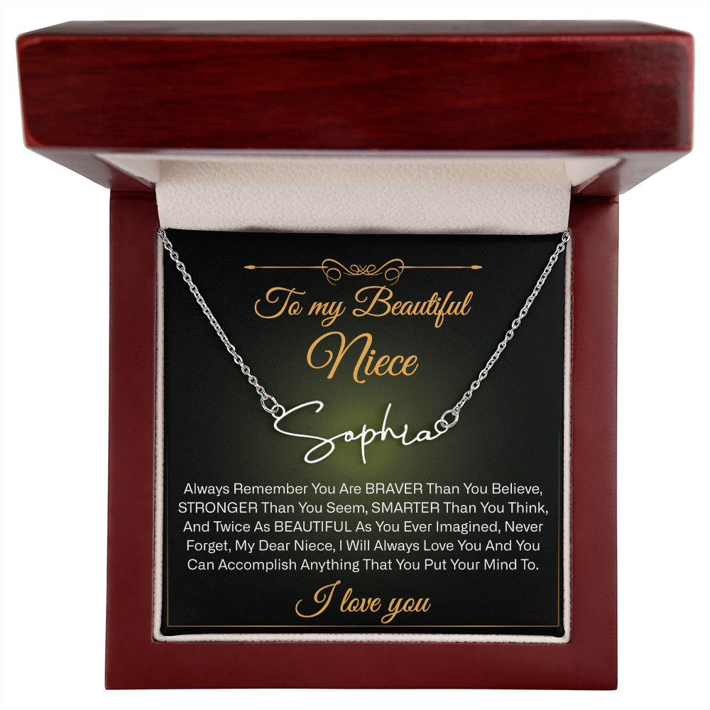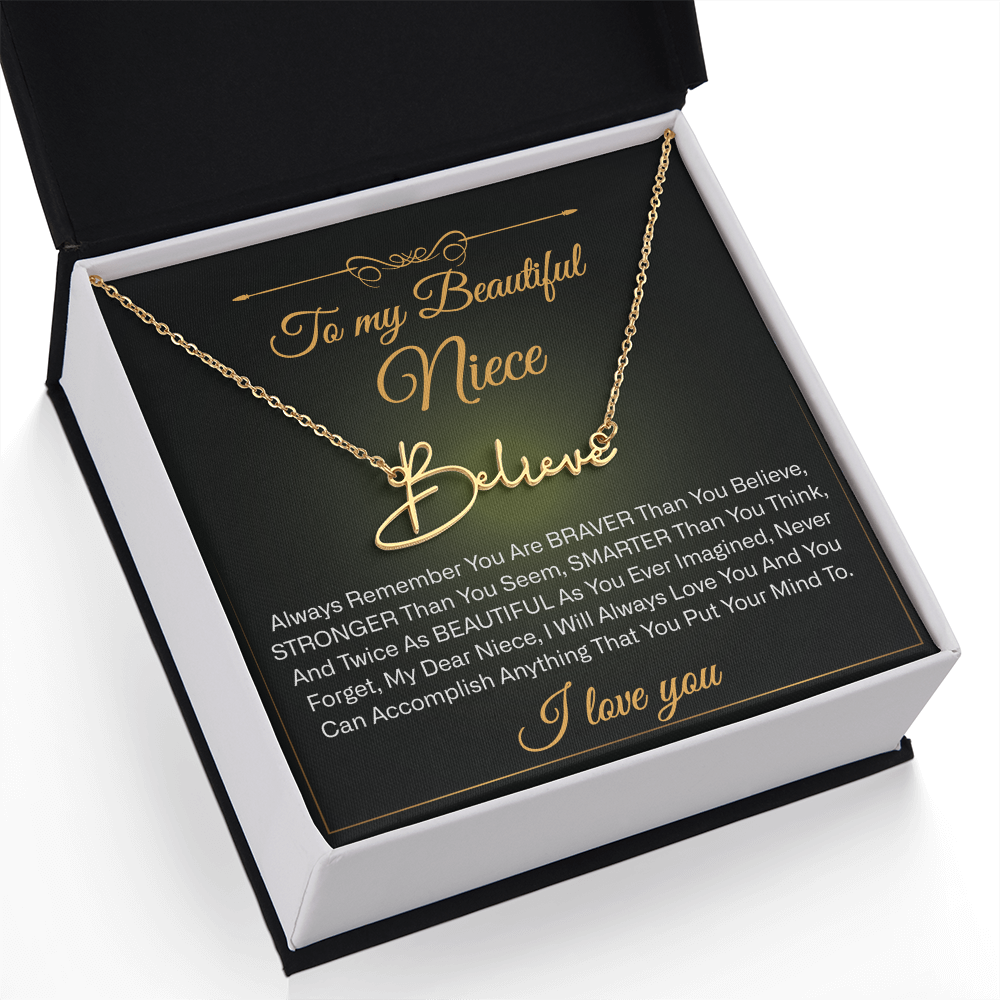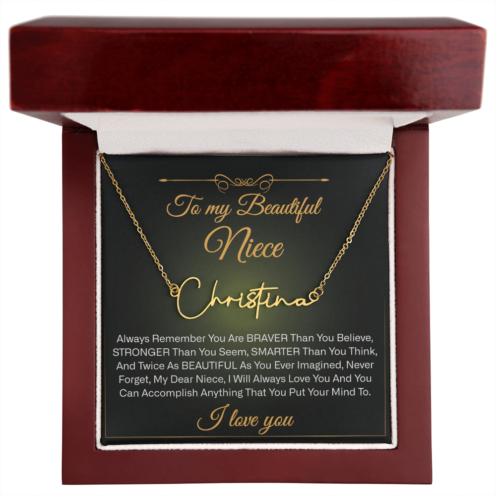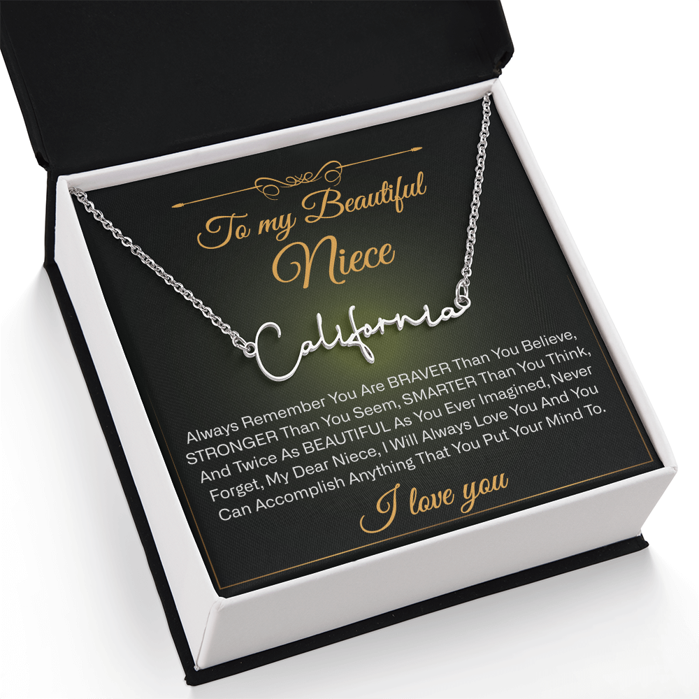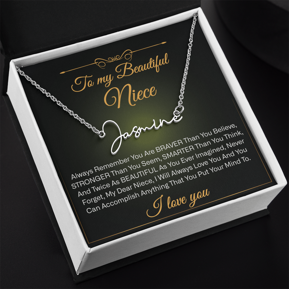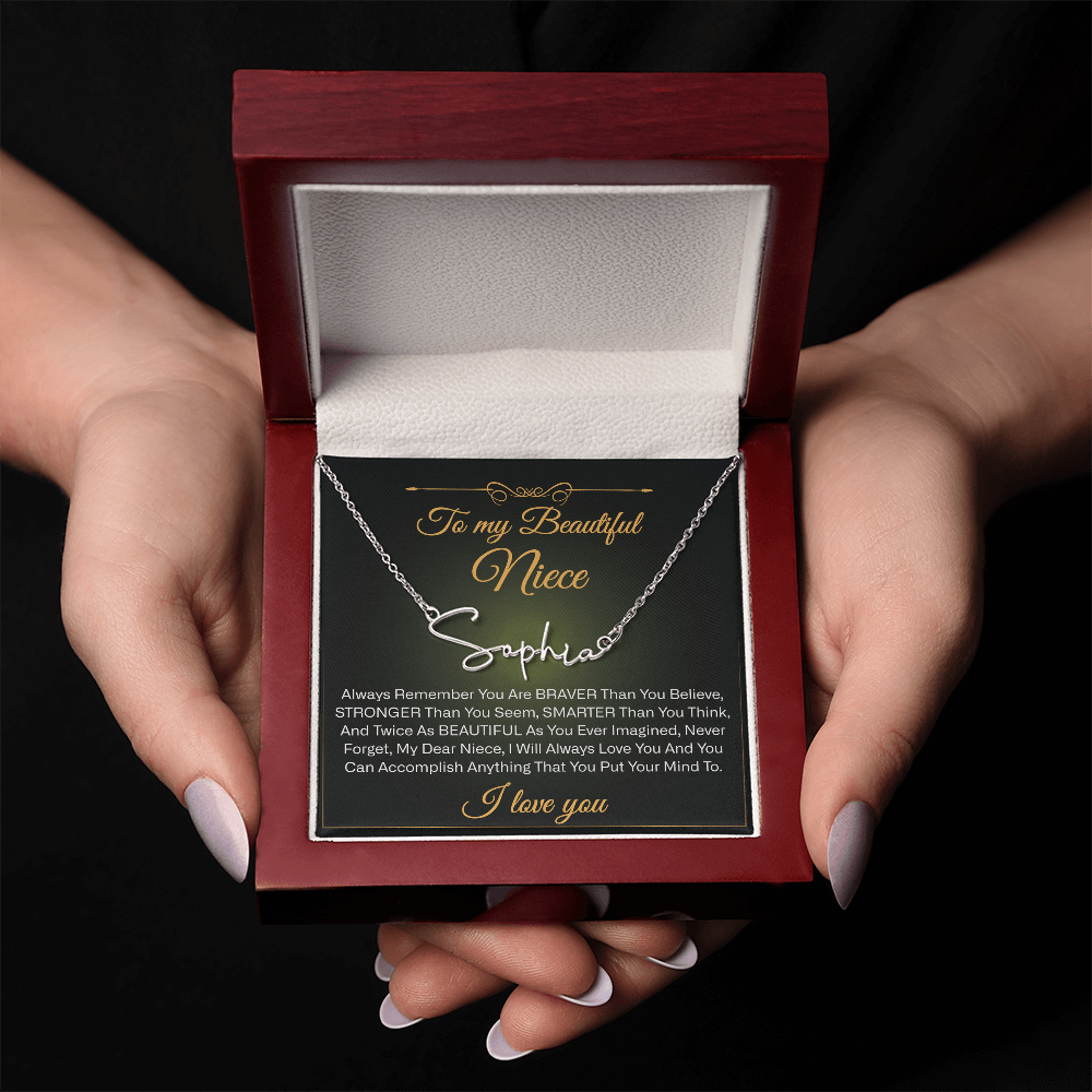 Looking to give your loved one a stylish and personalized gift that will melt their heart? Check out our Signature Style Name Necklace! This adorable custom necklace features a contemporary font that is sure to become a favorite accessory! From a heart-warming holiday present, special occasion gift, or just because, this unique necklace adds a trendy touch to any outfit