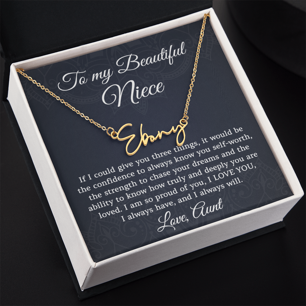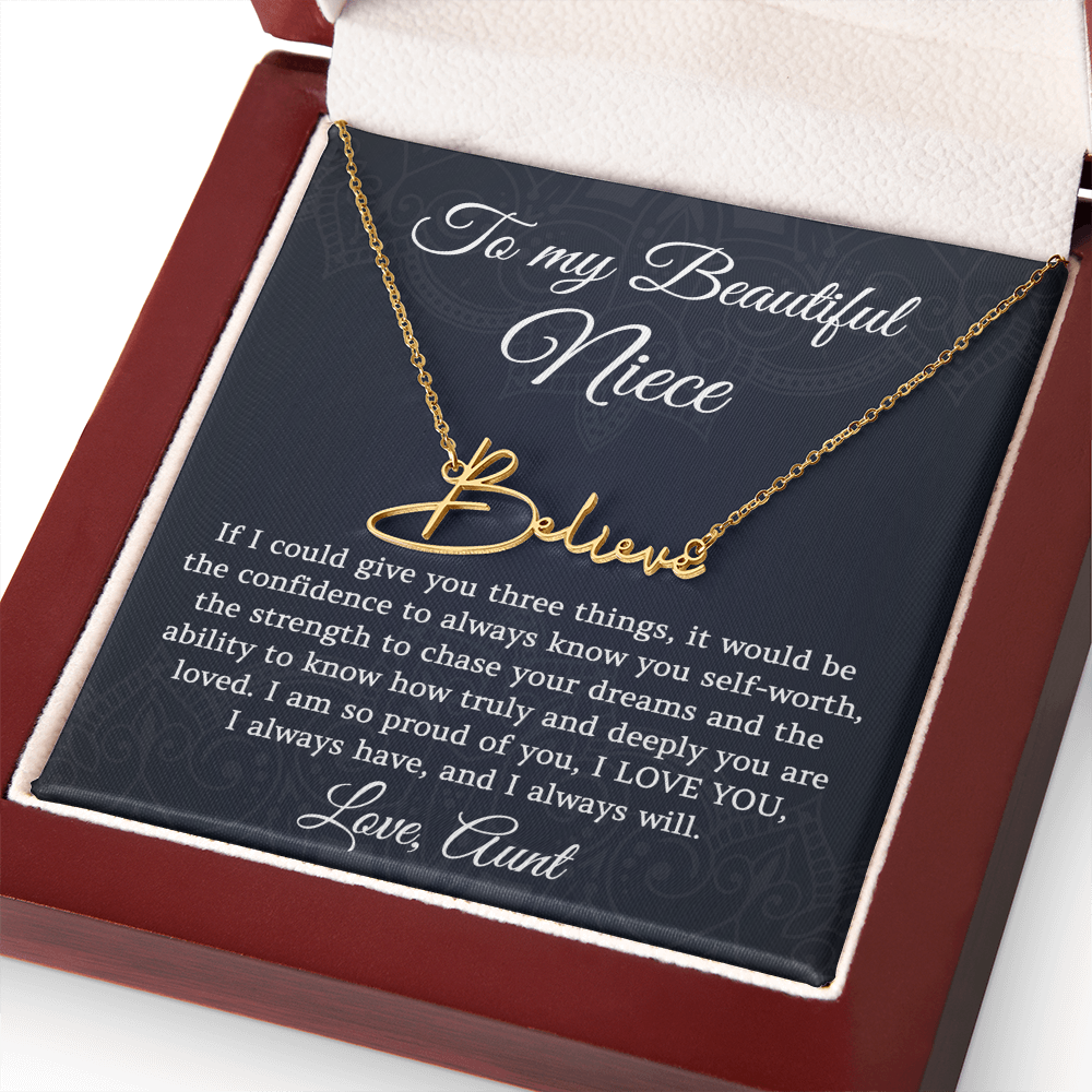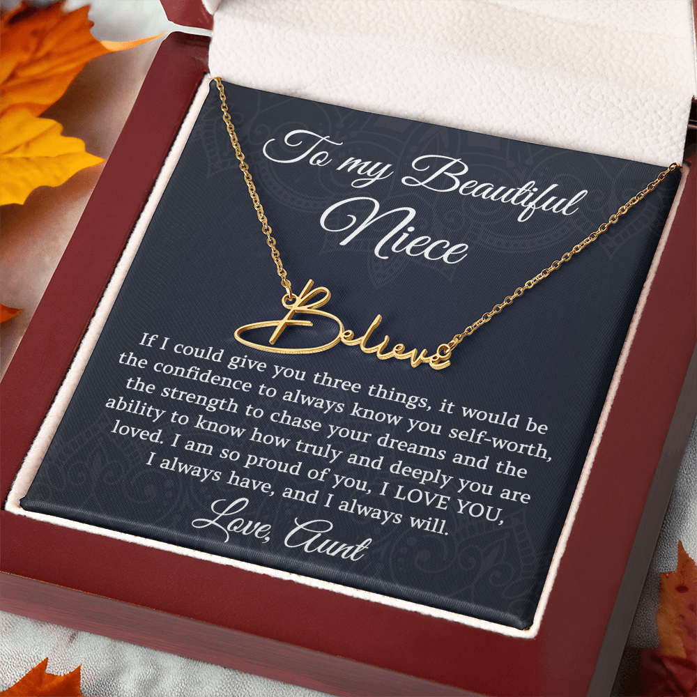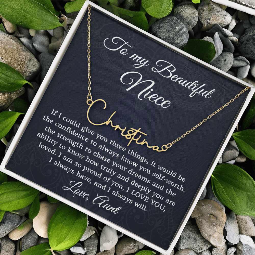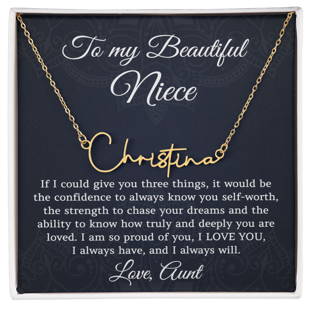 Looking to give your loved one a stylish and personalized gift that will melt their heart? Check out our Signature Style Name Necklace! This adorable custom necklace features a contemporary font that is sure to become a favorite accessory! From a heart-warming holiday present, special occasion gift, or just because, this unique necklace adds a trendy touch to any outfit