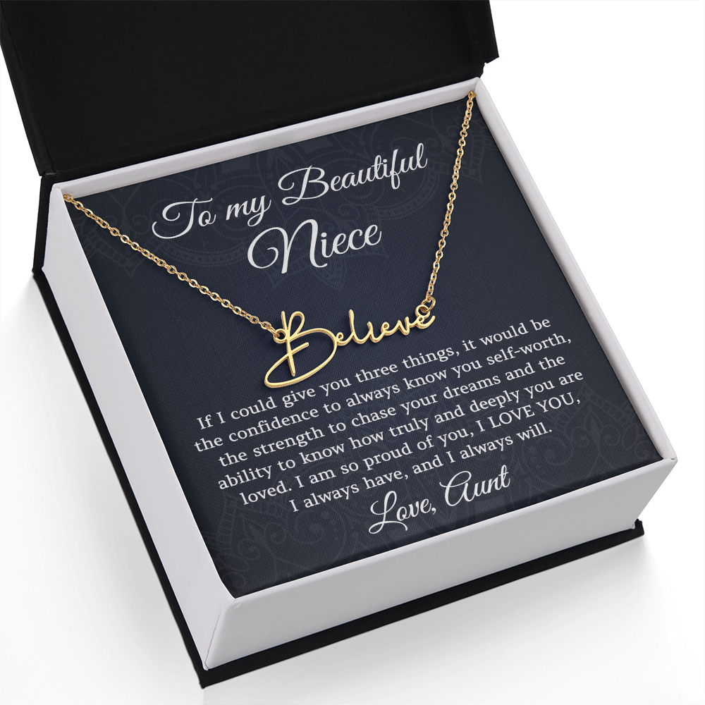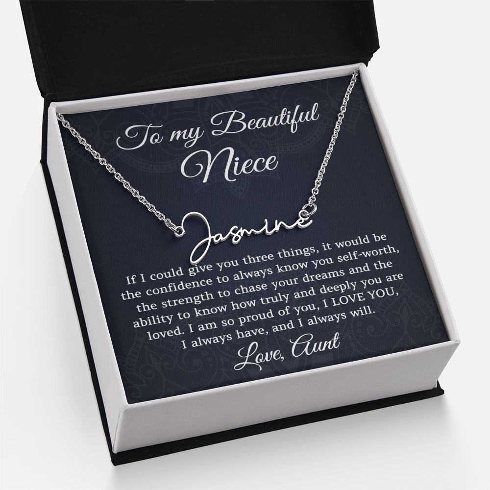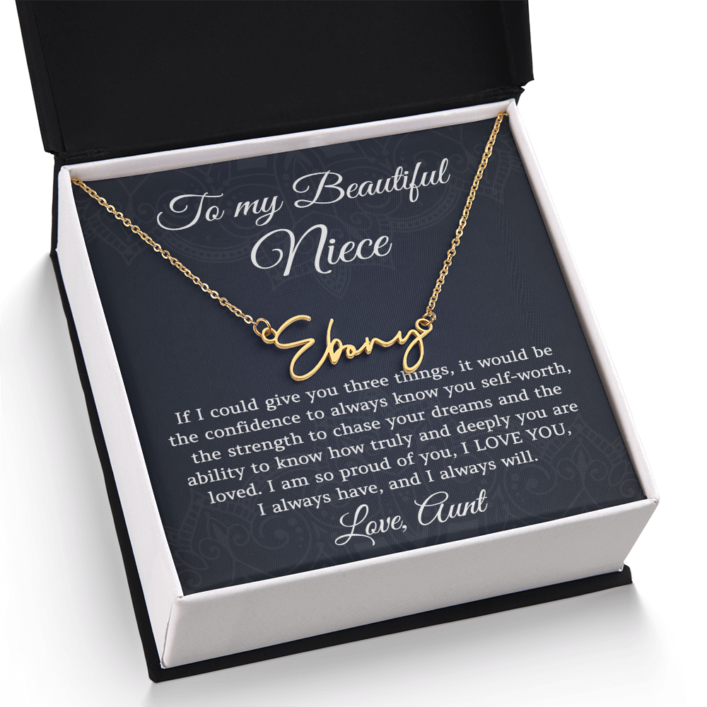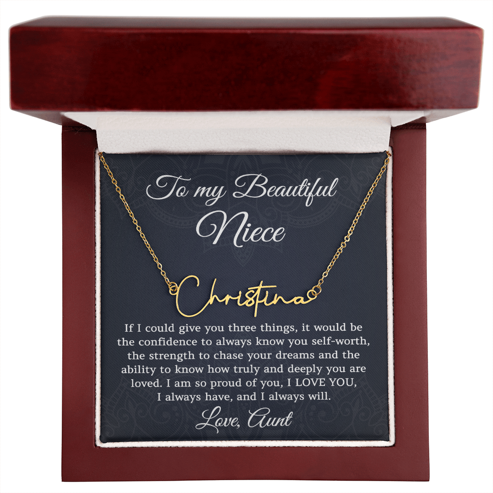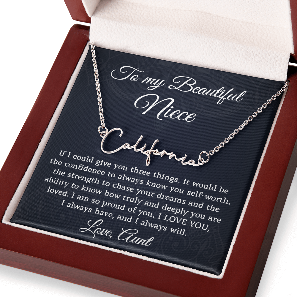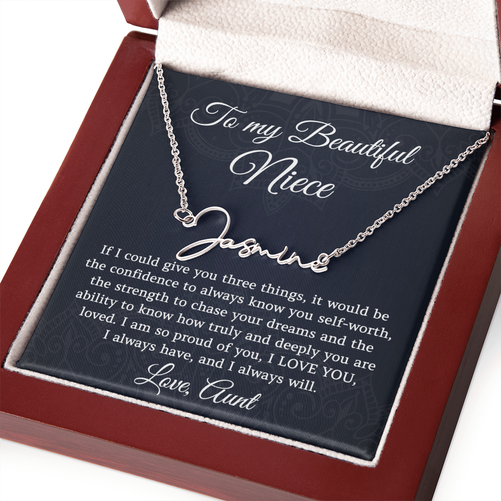 Looking to give your loved one a stylish and personalized gift that will melt their heart? Check out our Signature Style Name Necklace! This adorable custom necklace features a contemporary font that is sure to become a favorite accessory! From a heart-warming holiday present, special occasion gift, or just because, this unique necklace adds a trendy touch to any outfit