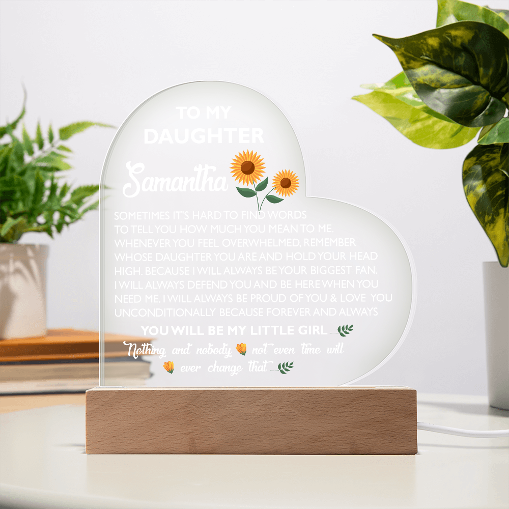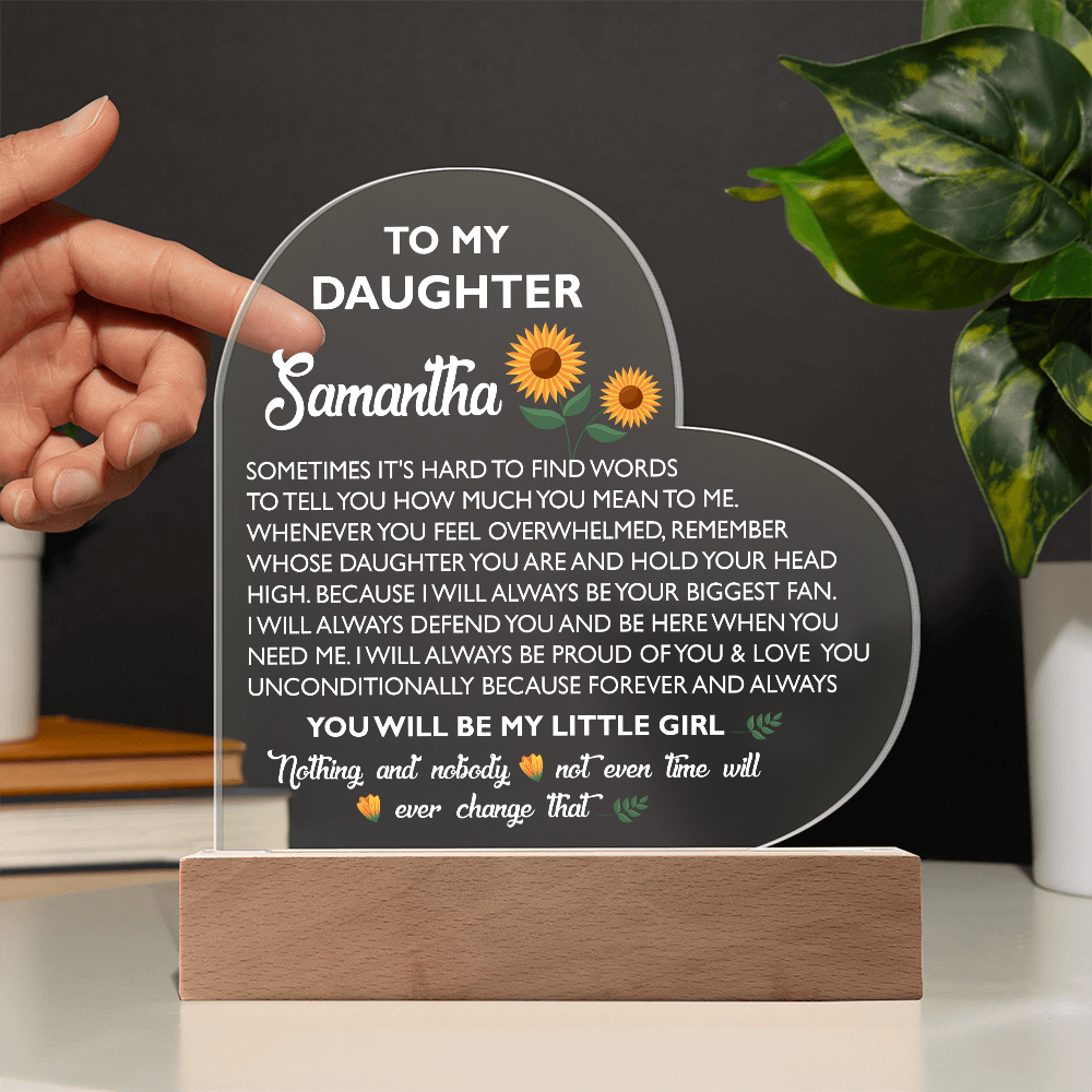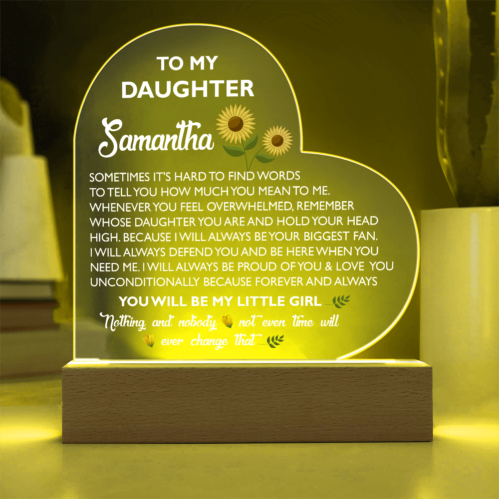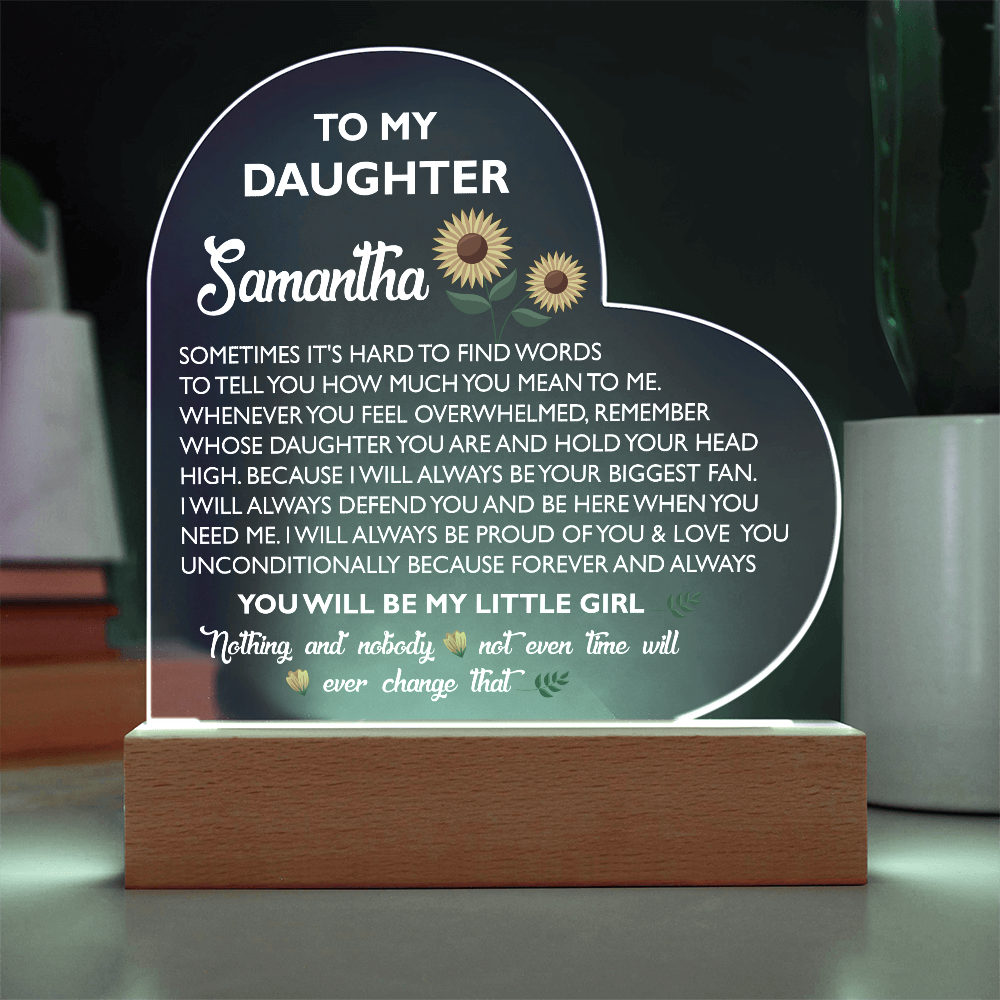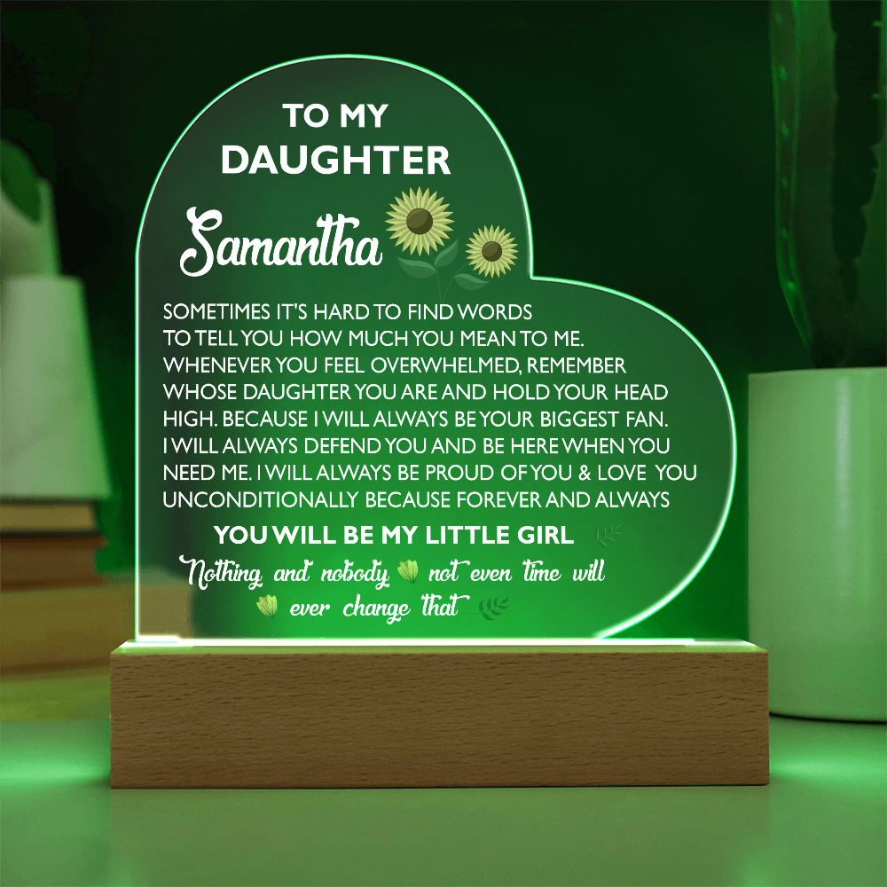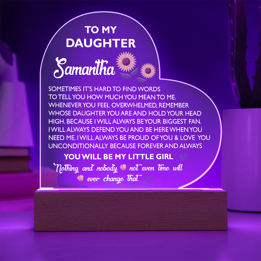 Your plaque will be crafted from premium acrylic with a professionally printed design for a polished look. It comes with a stylish wooden LED base, and you can choose between a USB plug-in option OR a cordless battery-operated option (requires 2 AAA batteries, not included). Both LED bases feature 7 vibrant colors, allowing the user to customize the lighting with various color changes and dynamic cycles.