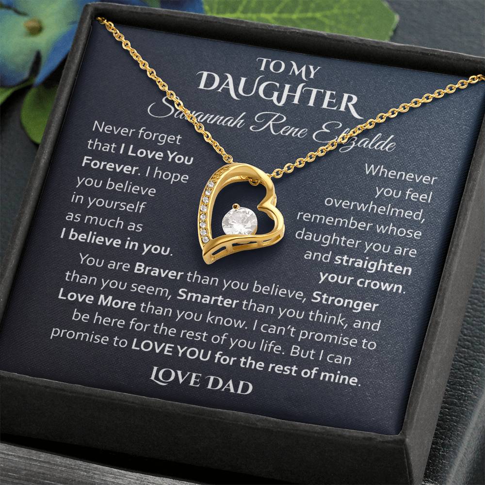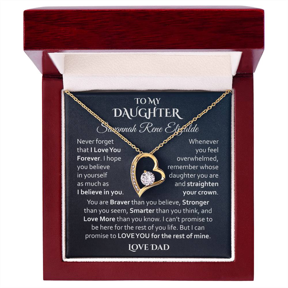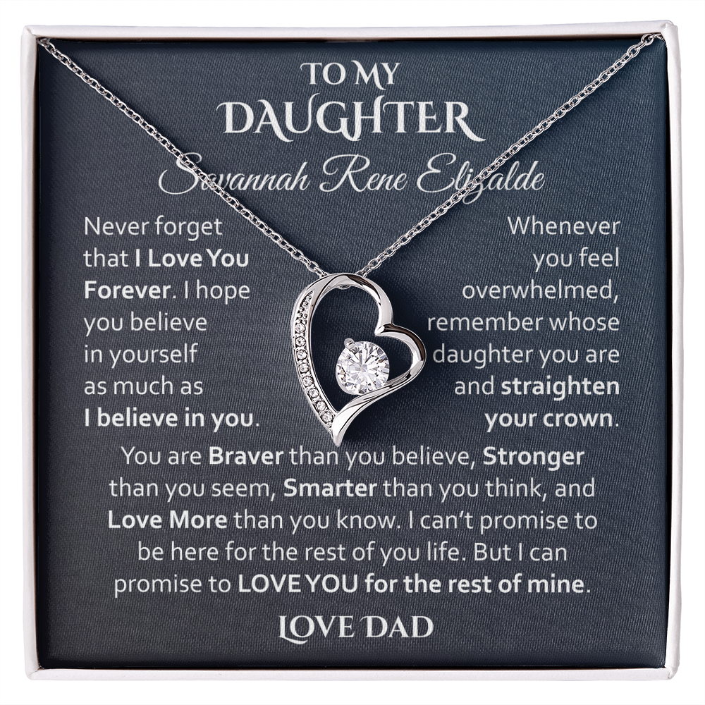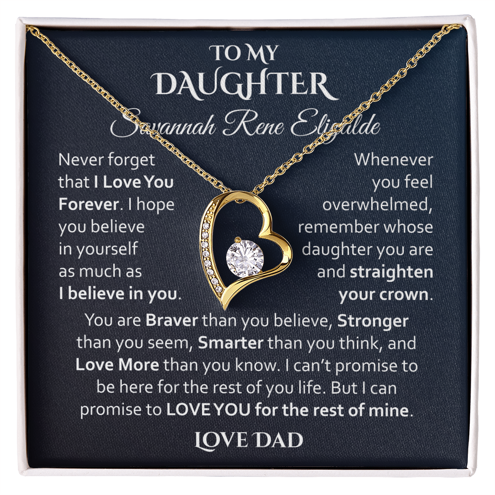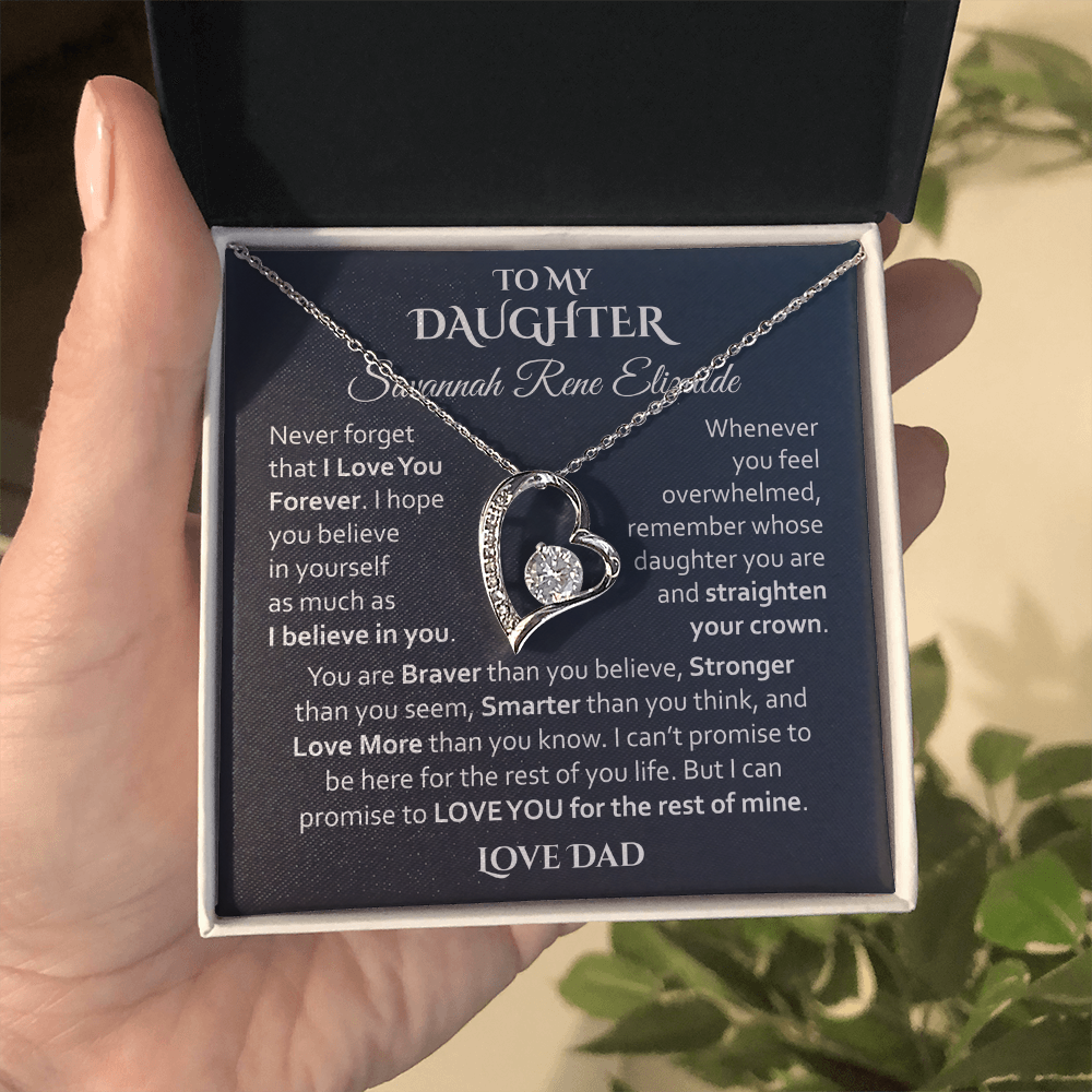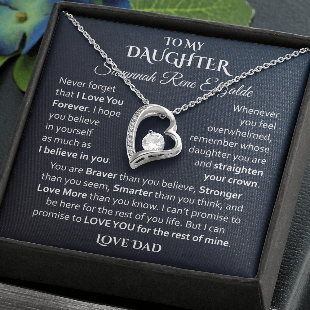 The dazzling Forever Love Necklace is sure to make her heart melt! This necklace features a stunning 6.5mm CZ crystal surrounded by a polished heart pendant embellished with smaller crystals to add extra sparkle and shine. Beautifully crafted with either a white gold or yellow gold finish, be sure to give her a classic gift she can enjoy everyday.