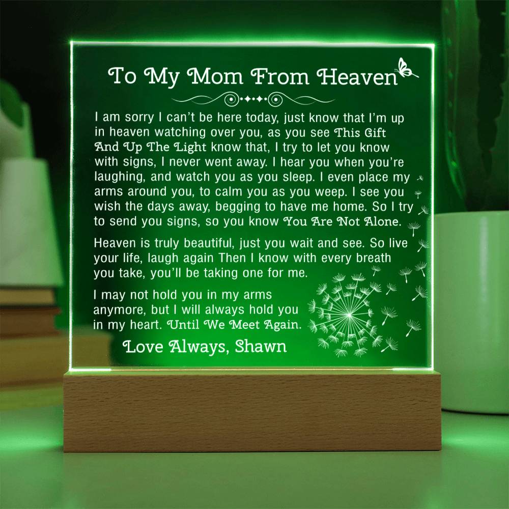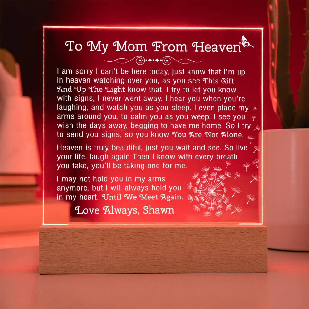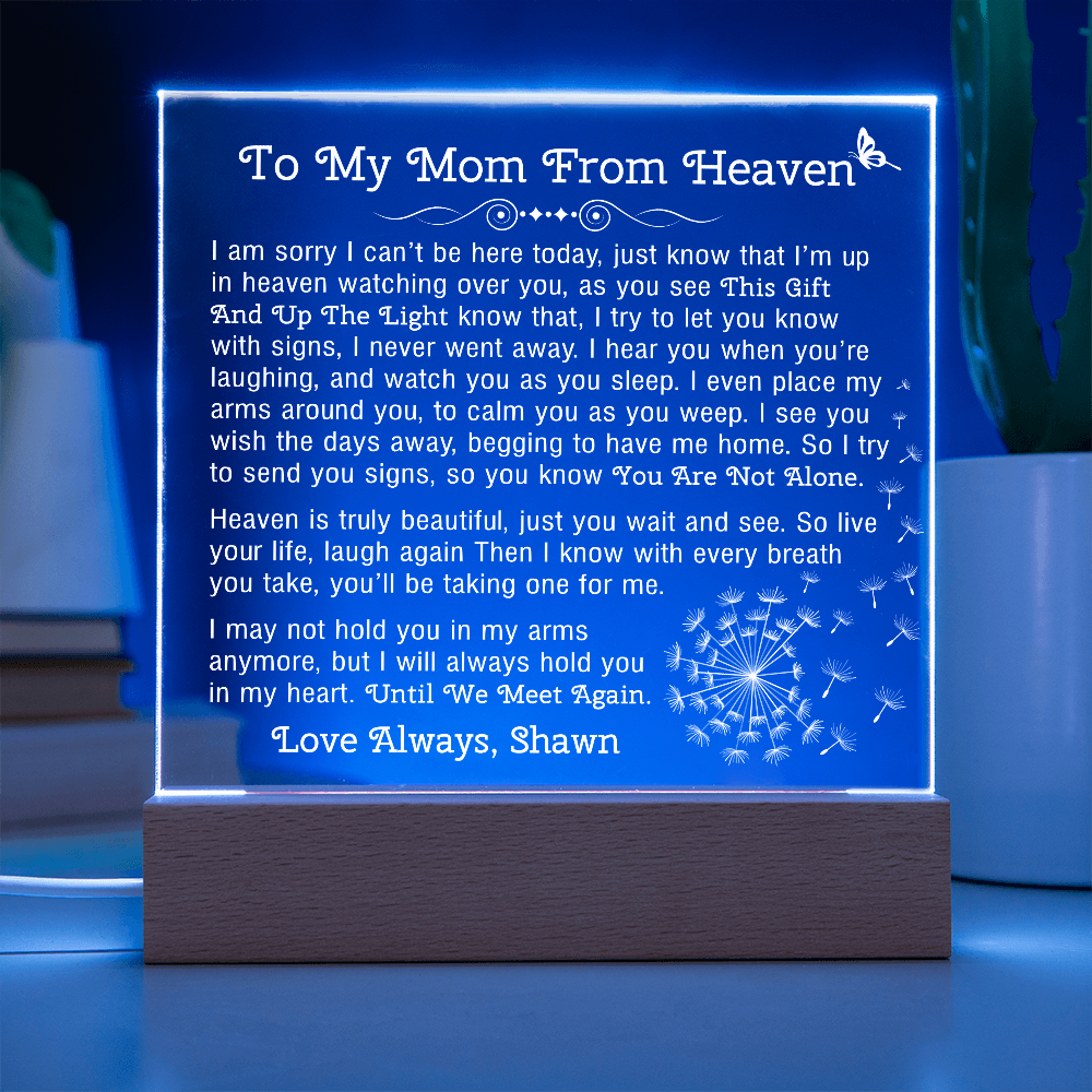 Your plaque will be crafted from premium acrylic with a professionally printed design for a polished look. It comes with a stylish wooden LED base, and you can choose between a USB plug-in option OR a cordless battery-operated option (requires 2 AAA batteries, not included). Both LED bases feature 7 vibrant colors, allowing the user to customize the lighting with various color changes and dynamic cycles.