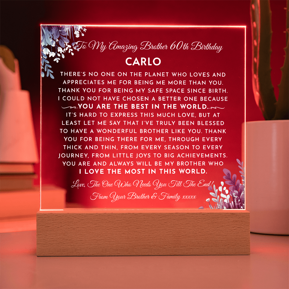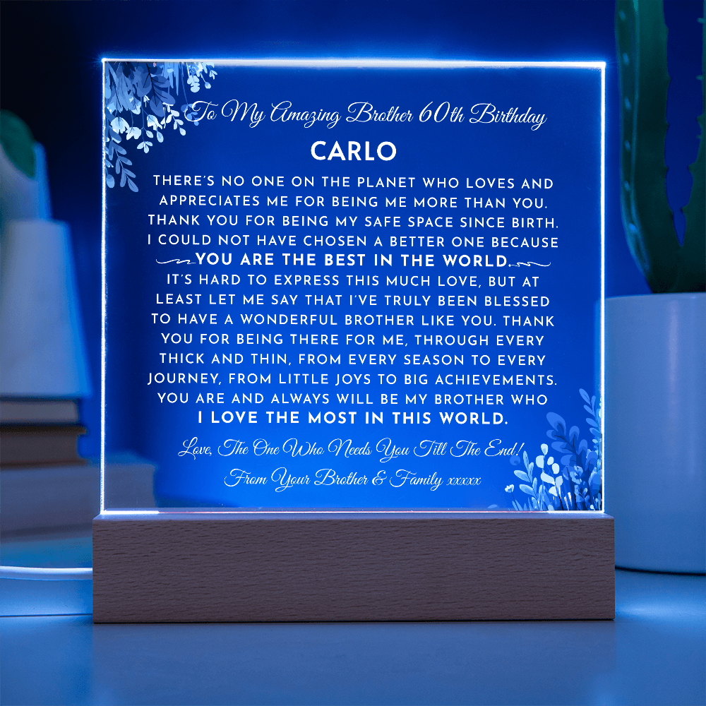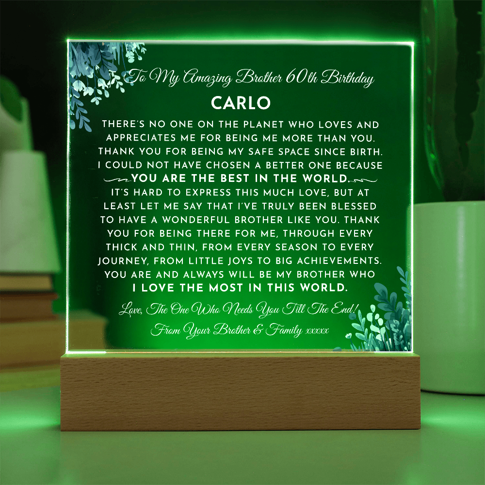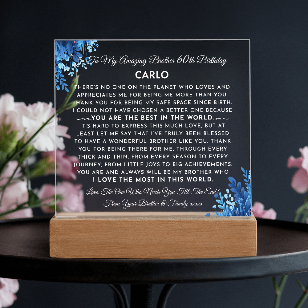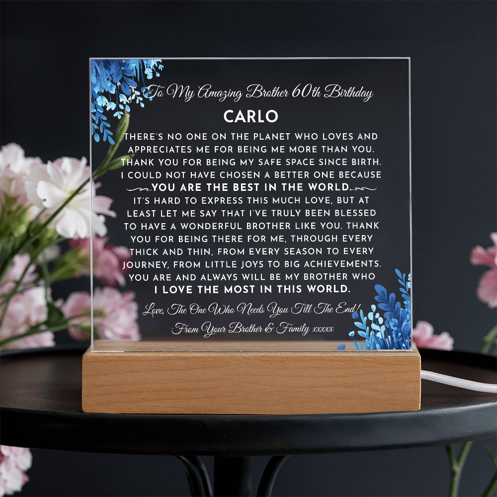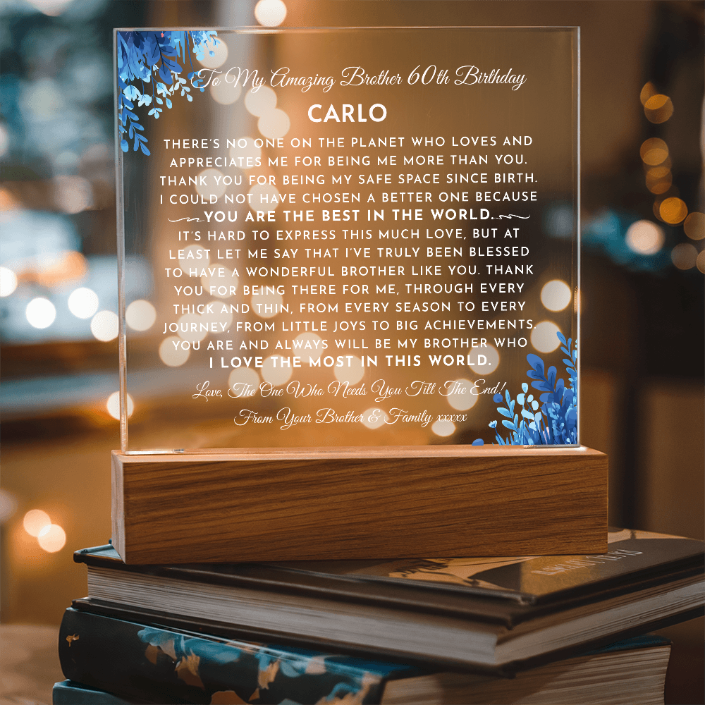 Your plaque will be crafted from premium acrylic with a professionally printed design for a polished look. It comes with a stylish wooden LED base, and you can choose between a USB plug-in option OR a cordless battery-operated option (requires 2 AAA batteries, not included). Both LED bases feature 7 vibrant colors, allowing the user to customize the lighting with various color changes and dynamic cycles.