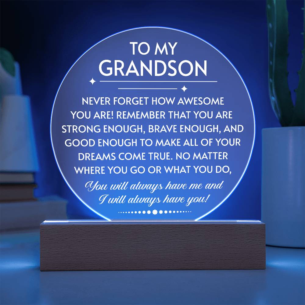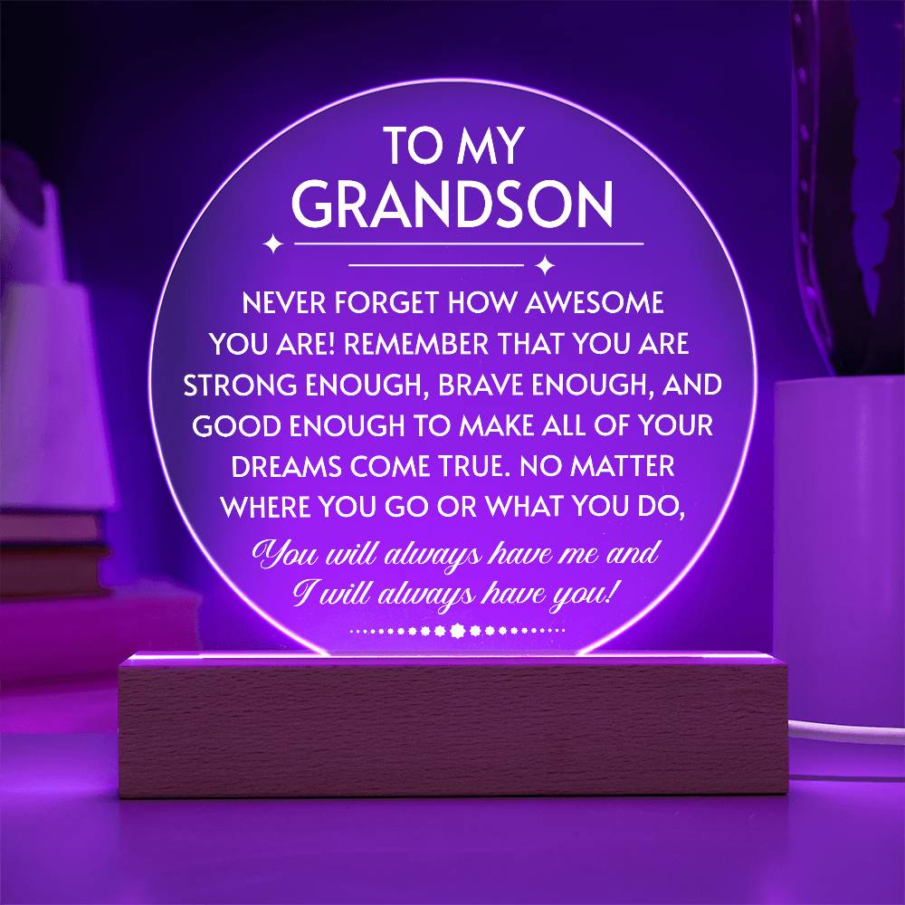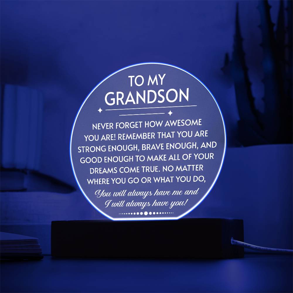 Your plaque will be crafted from premium acrylic with a professionally printed design for a polished look. It comes with a stylish wooden LED base, and you can choose between a USB plug-in option OR a cordless battery-operated option (requires 2 AAA batteries, not included). Both LED bases feature 7 vibrant colors, allowing the user to customize the lighting with various color changes and dynamic cycles.