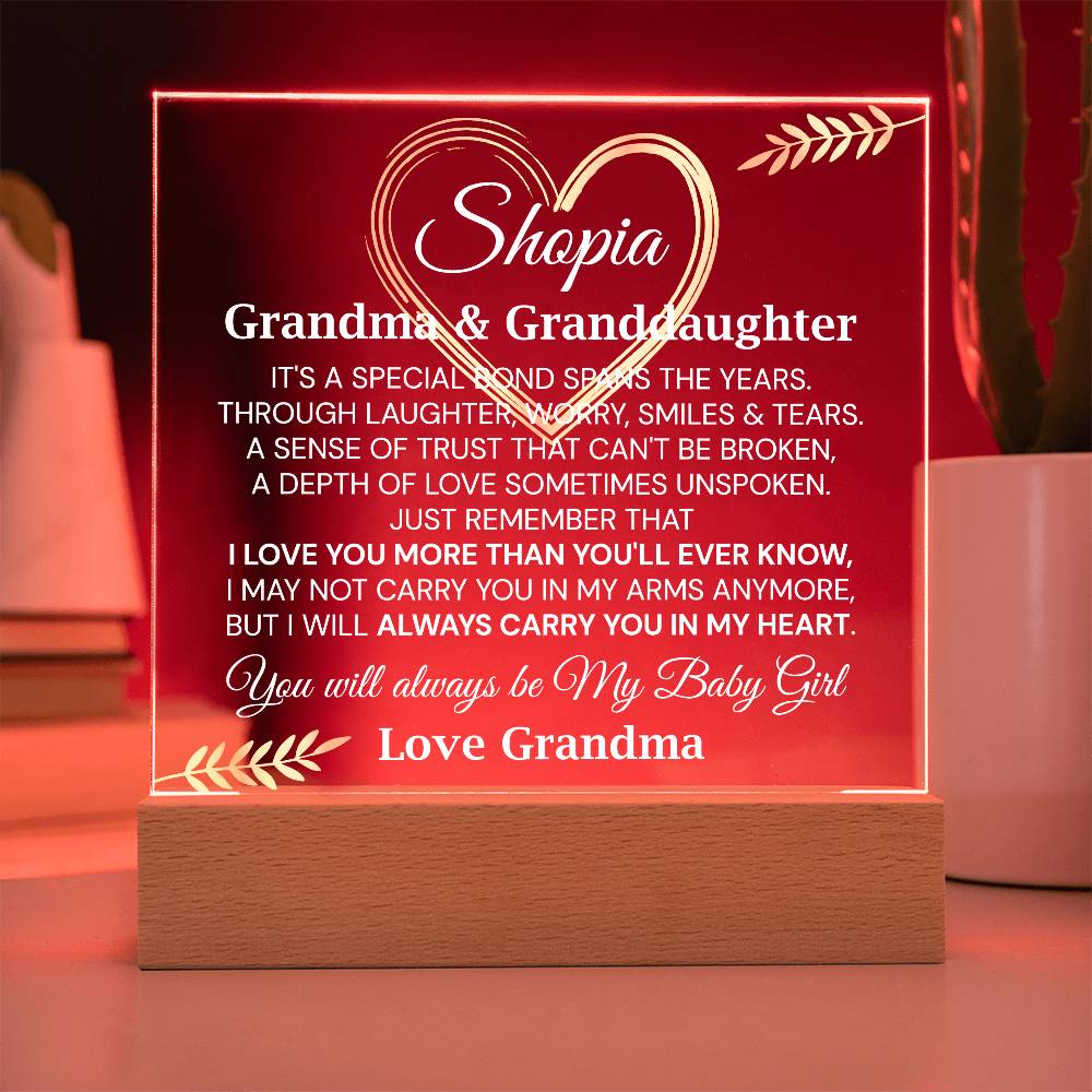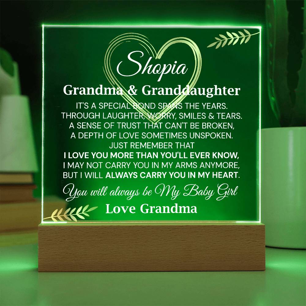 Your plaque will be crafted from premium acrylic with a professionally printed design for a polished look. It comes with a stylish wooden LED base, and you can choose between a USB plug-in option OR a cordless battery-operated option (requires 2 AAA batteries, not included). Both LED bases feature 7 vibrant colors, allowing the user to customize the lighting with various color changes and dynamic cycles.