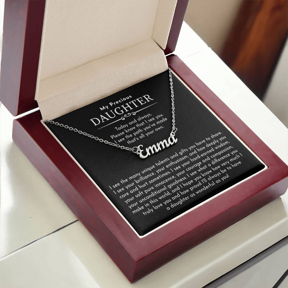 Give your special someone a custom necklace made just for them! Our Personalized Name Necklace is the perfect gift for your loved ones and will become a versatile accessory for any occasion. From a heart-warming holiday present, anniversary or birthday gift, or just because, this unique necklace adds a trendy touch to any outfit.