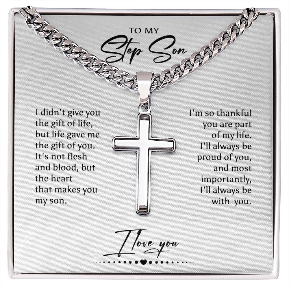 Sizing is appropriate for all ages, and tasteful for both men and women. Crafted in high polished stainless steel, this piece will resist tarnishing and is hypoallergenic for sensitive skin. Personalize a message on the back of the cross pendant up to 20 characters. Includes an adjustable cuban link chain (18" - 22").