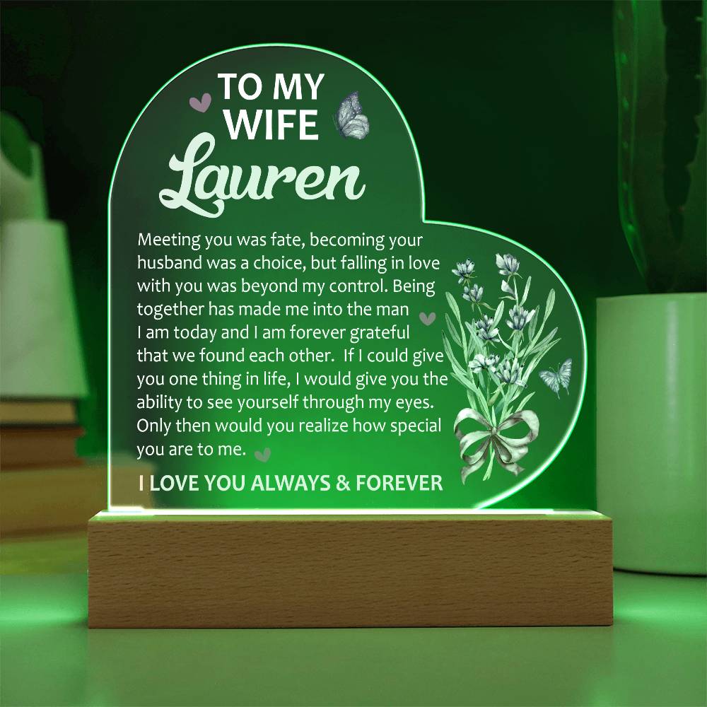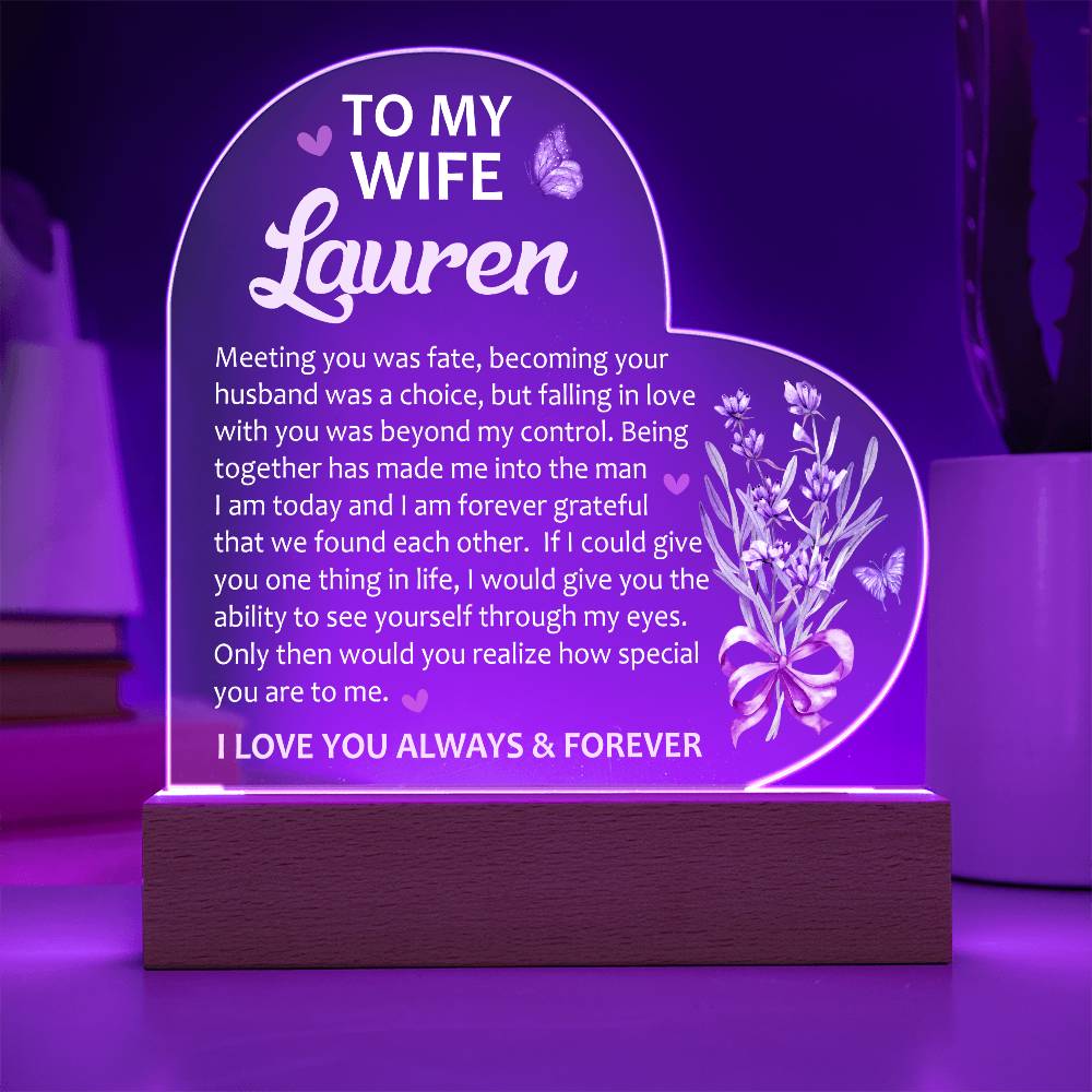 Your plaque will be crafted from premium acrylic with a professionally printed design for a polished look. It comes with a stylish wooden LED base, and you can choose between a USB plug-in option OR a cordless battery-operated option (requires 2 AAA batteries, not included). Both LED bases feature 7 vibrant colors, allowing the user to customize the lighting with various color changes and dynamic cycles.
