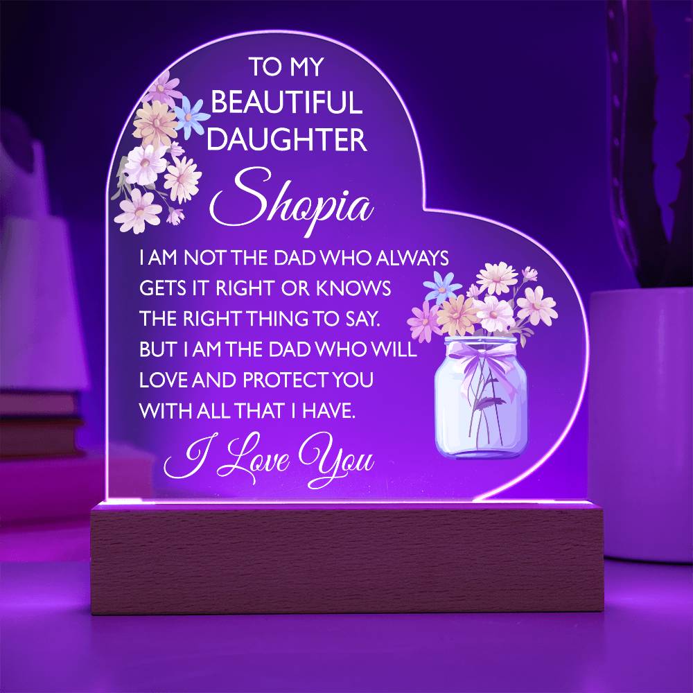 Your plaque will be crafted from premium acrylic with a professionally printed design for a polished look. It comes with a stylish wooden LED base, and you can choose between a USB plug-in option OR a cordless battery-operated option (requires 2 AAA batteries, not included). Both LED bases feature 7 vibrant colors, allowing the user to customize the lighting with various color changes and dynamic cycles.