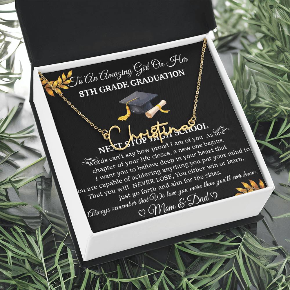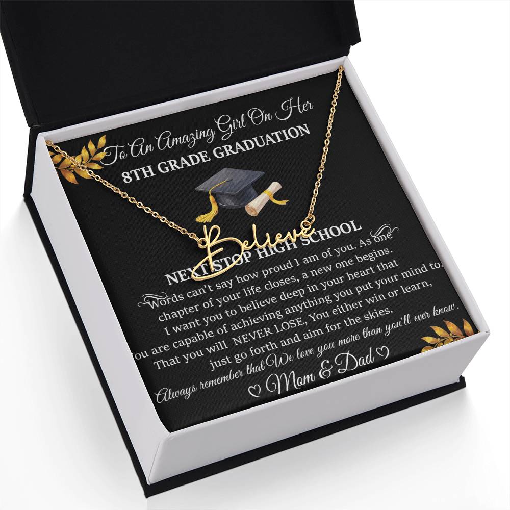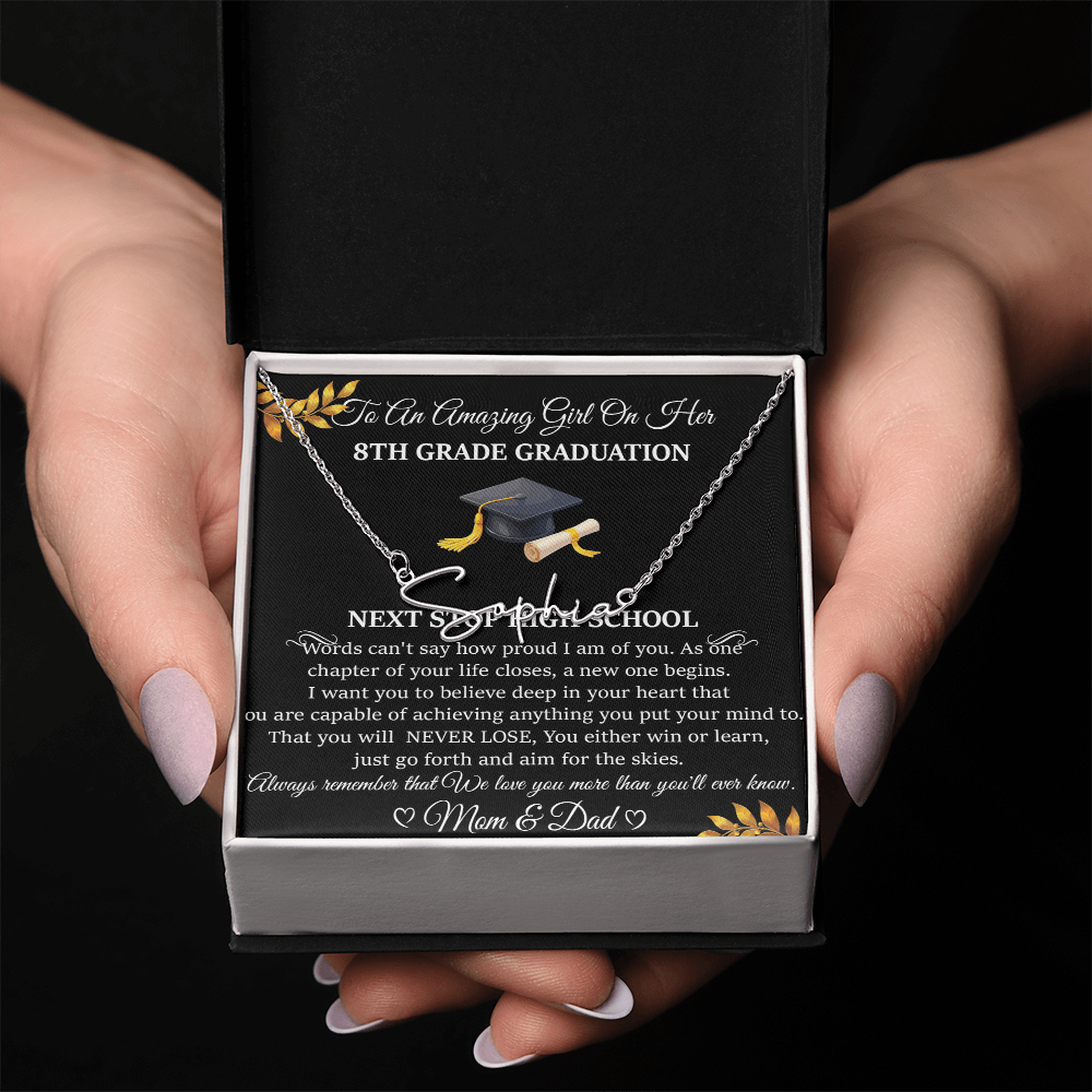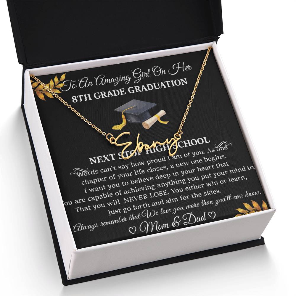 Looking to give your loved one a stylish and personalized gift that will melt their heart? Check out our Signature Style Name Necklace! This adorable custom necklace features a contemporary font that is sure to become a favorite accessory! From a heart-warming holiday present, special occasion gift, or just because, this unique necklace adds a trendy touch to any outfit