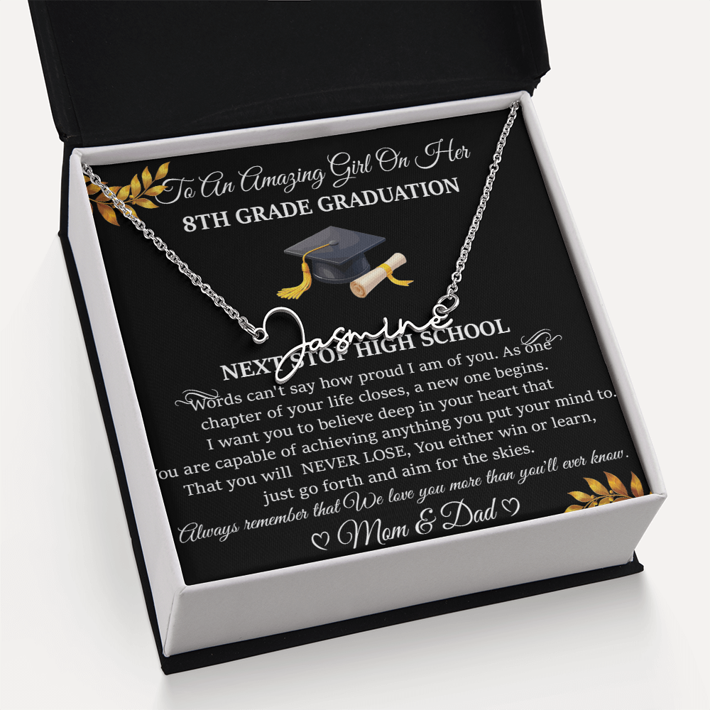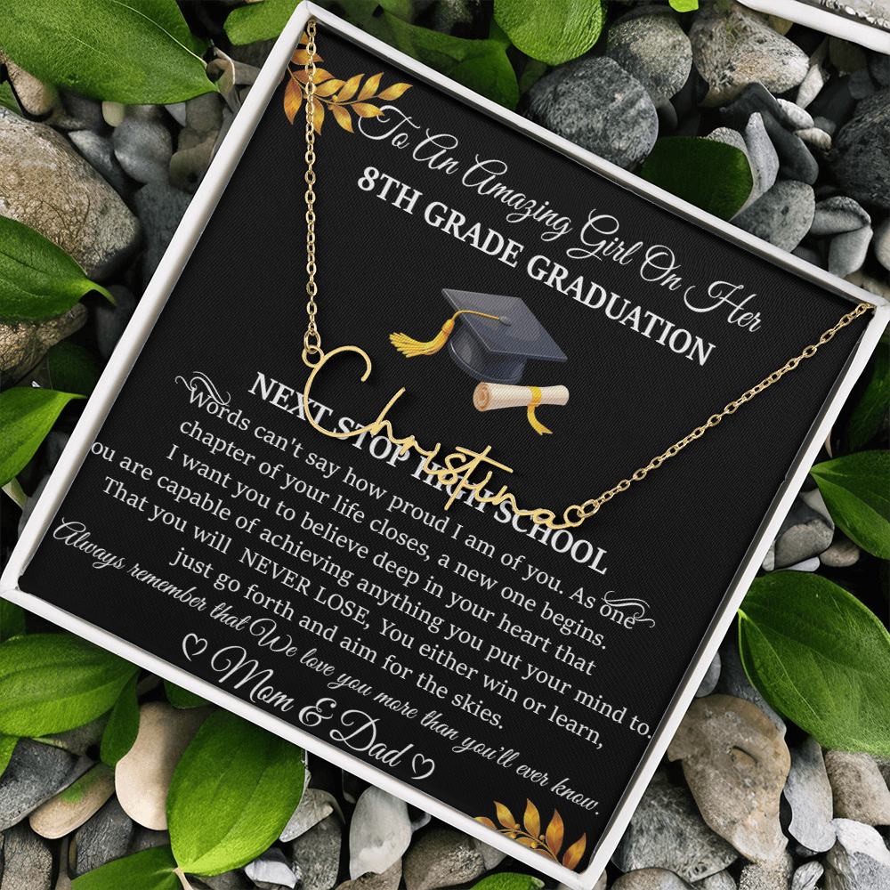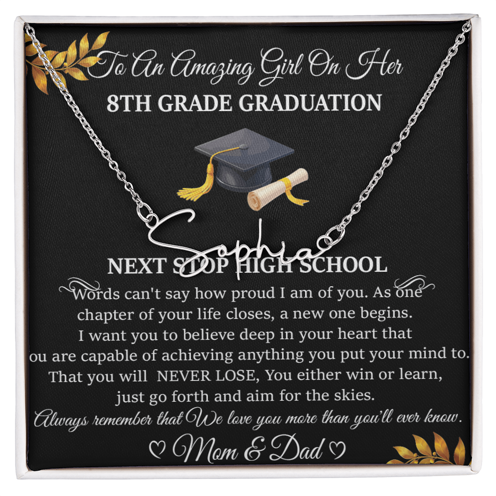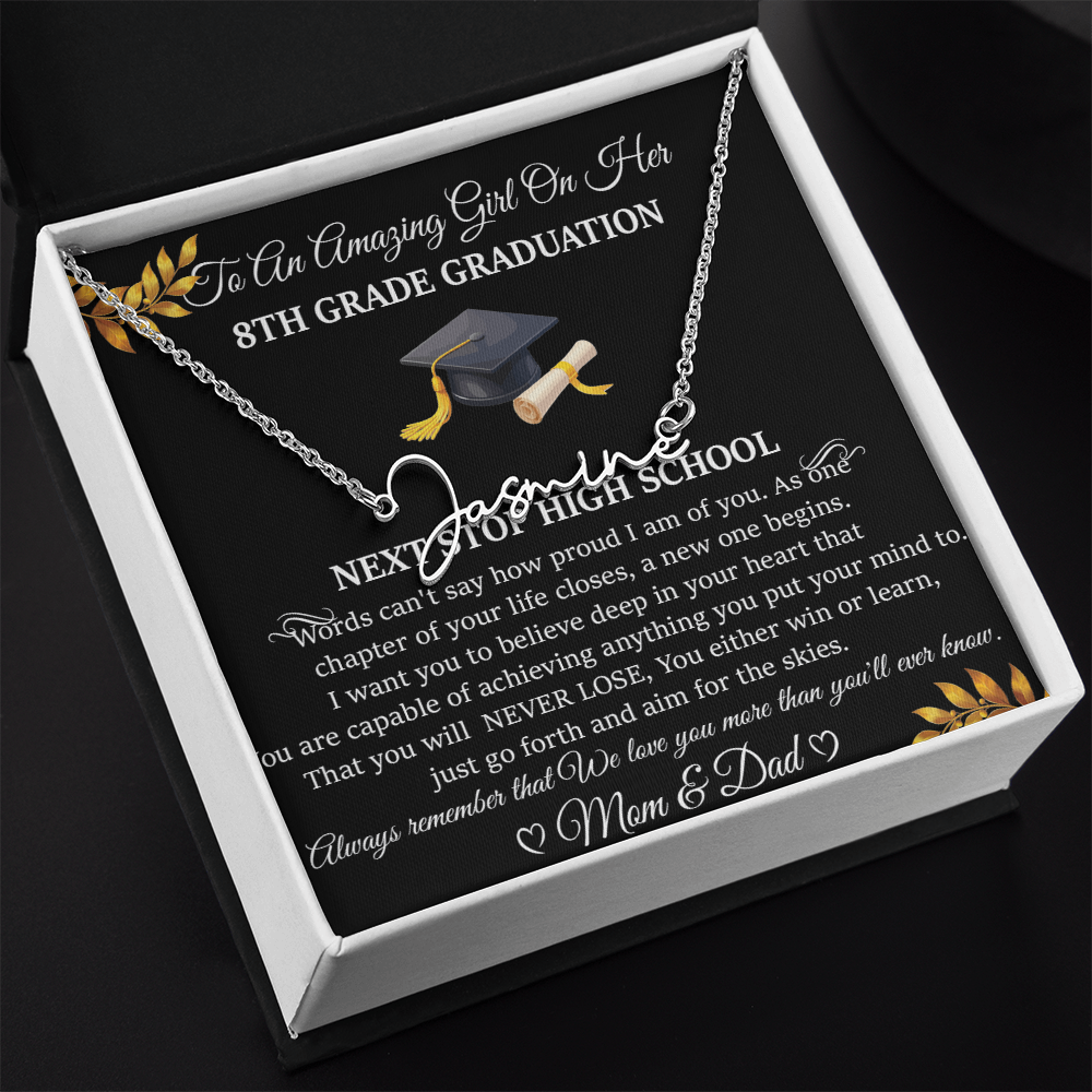 Looking to give your loved one a stylish and personalized gift that will melt their heart? Check out our Signature Style Name Necklace! This adorable custom necklace features a contemporary font that is sure to become a favorite accessory! From a heart-warming holiday present, special occasion gift, or just because, this unique necklace adds a trendy touch to any outfit