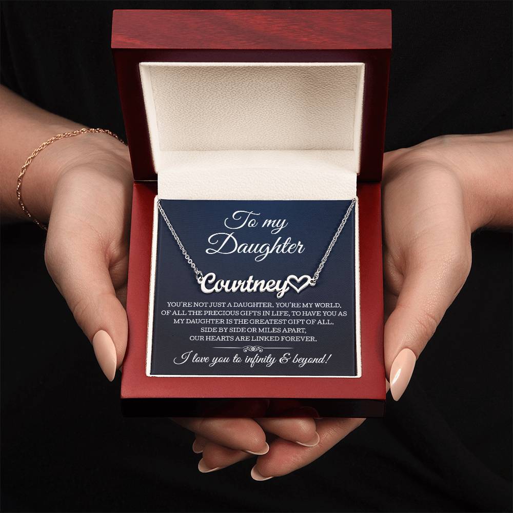 To My Daughter Necklace, Heart Name Necklace, Gift for Daughter from Mom Dad, Birthday Christmas Gift