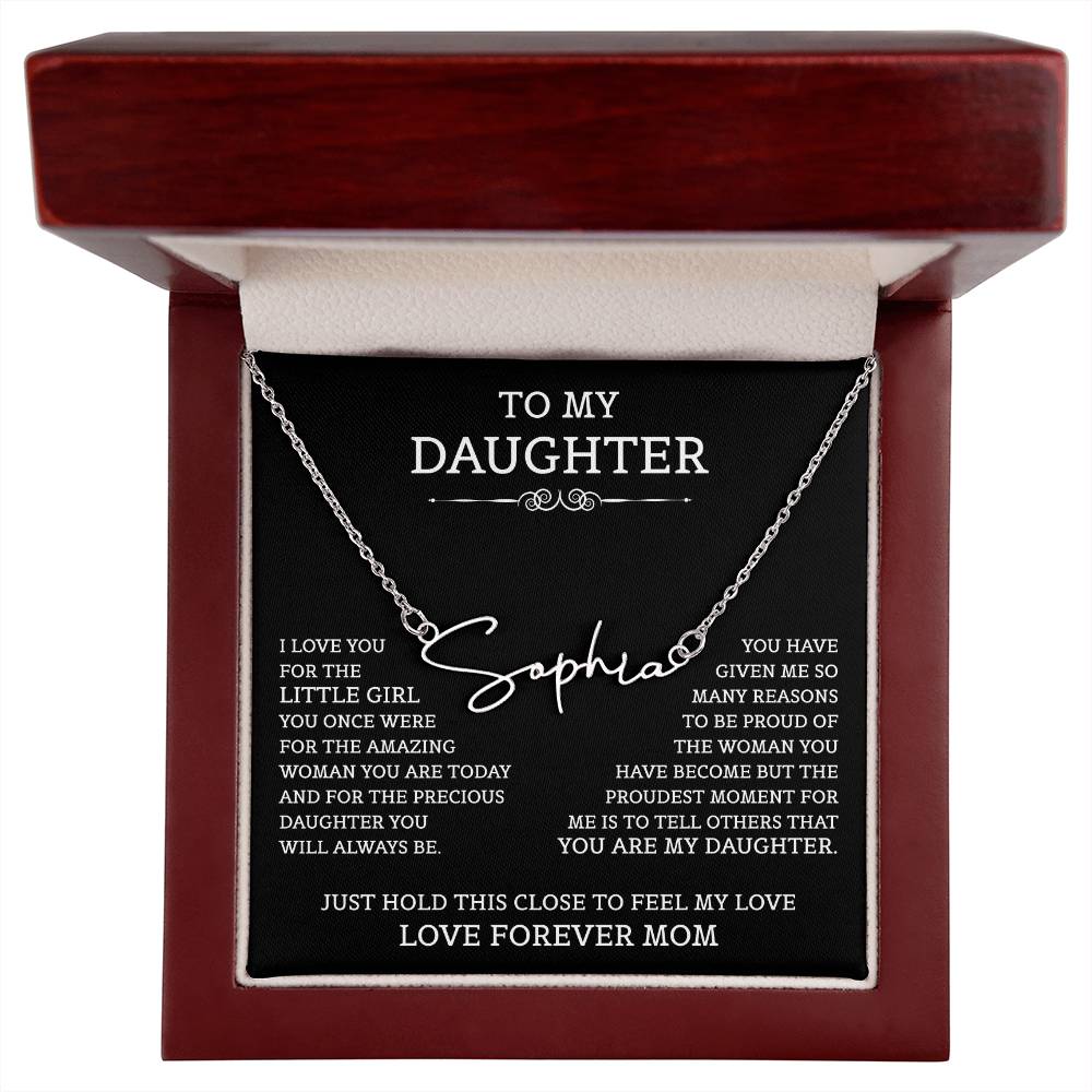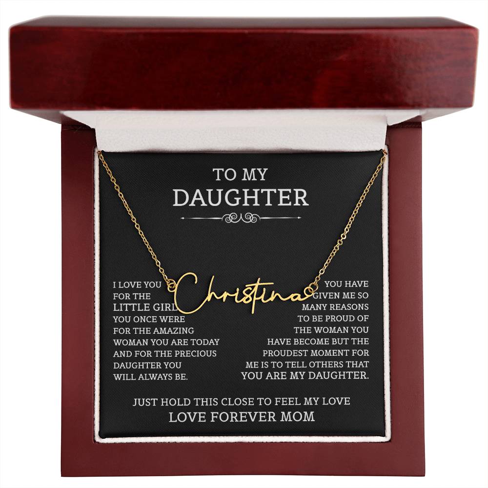 To My Daughter Signature Style Name Necklace, Mother's Day Graduation Birthday Christmas Jewelry Gifts from Mom with Heartfelt Message Card