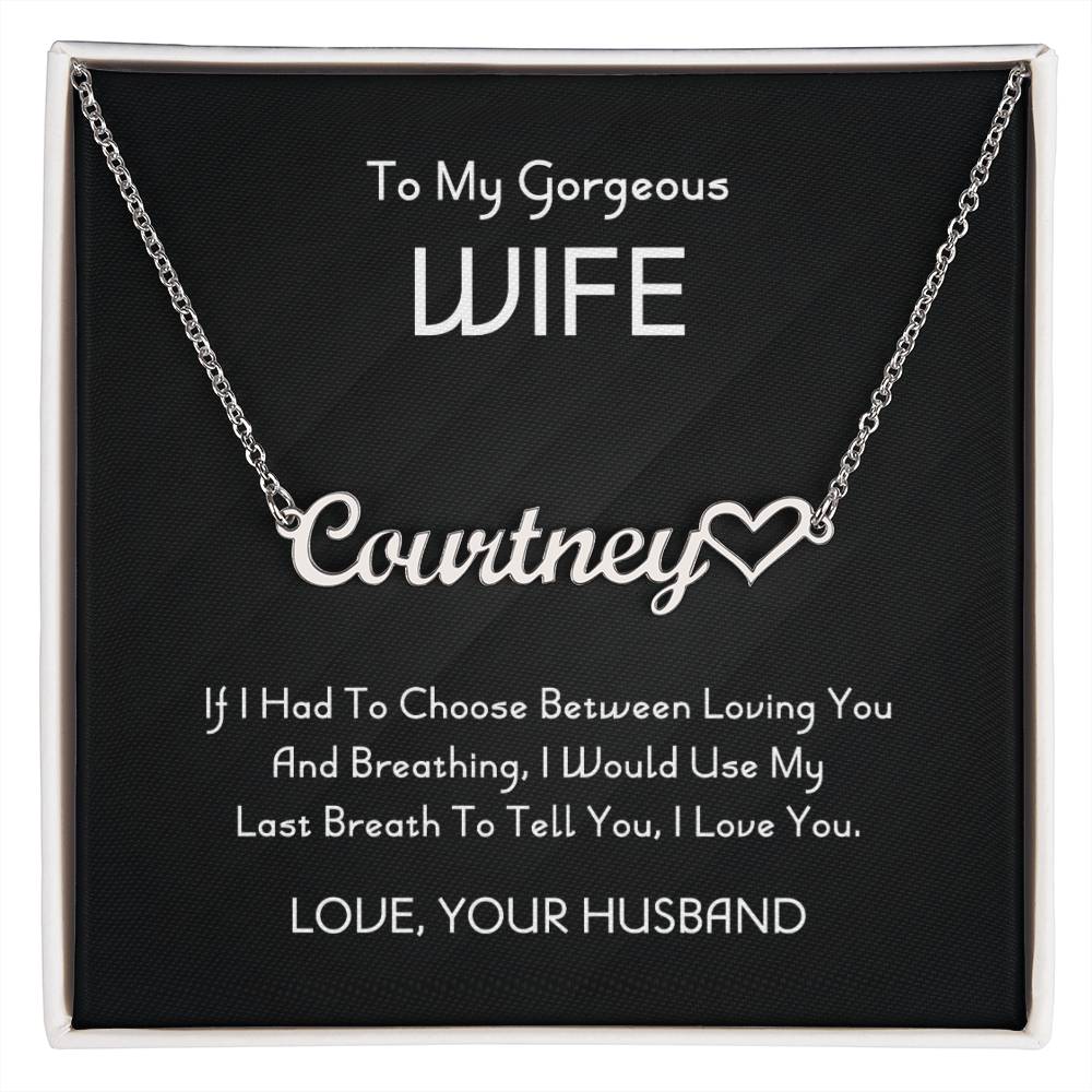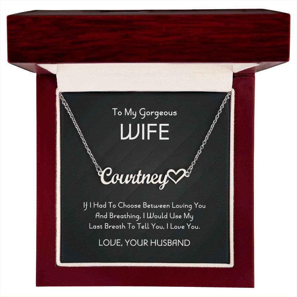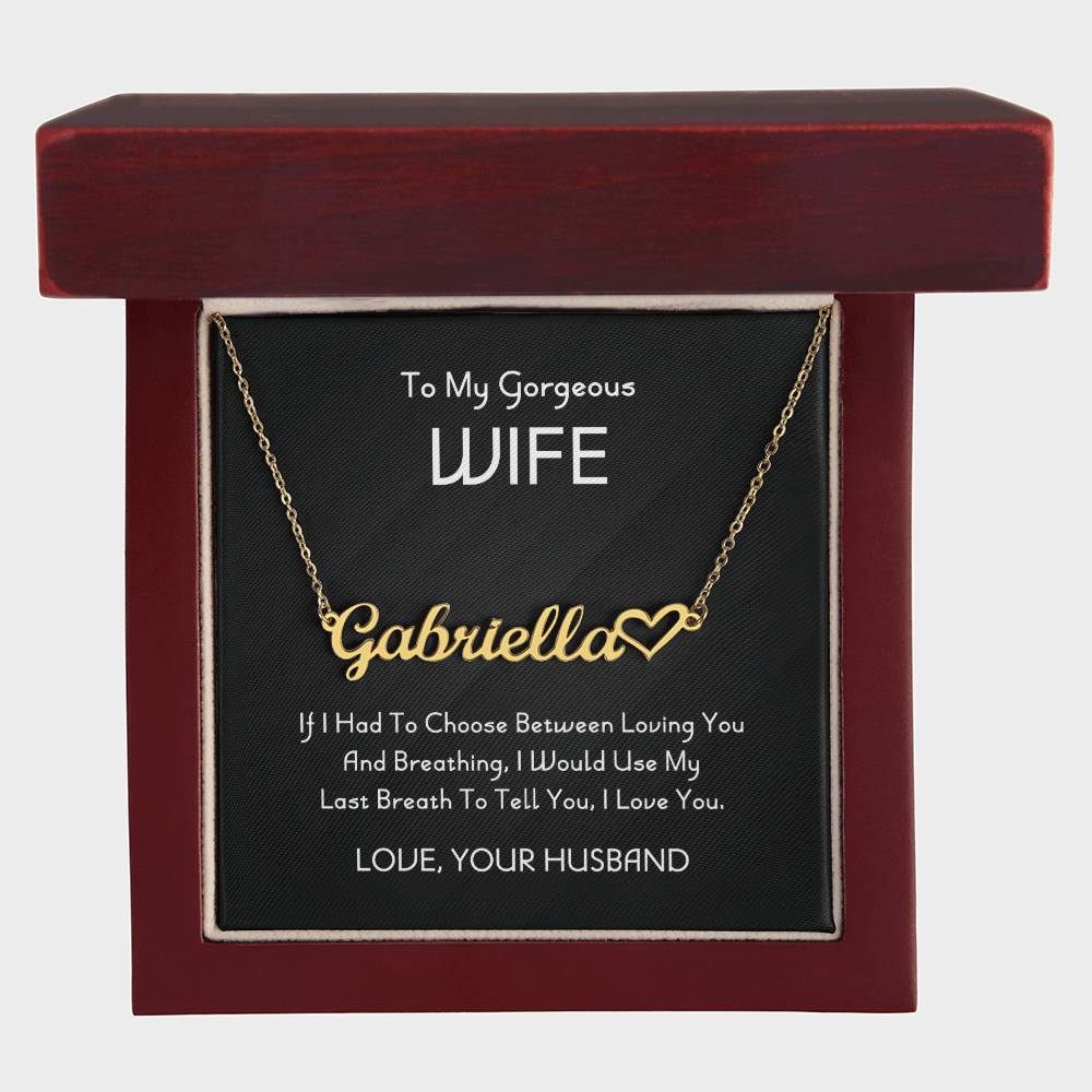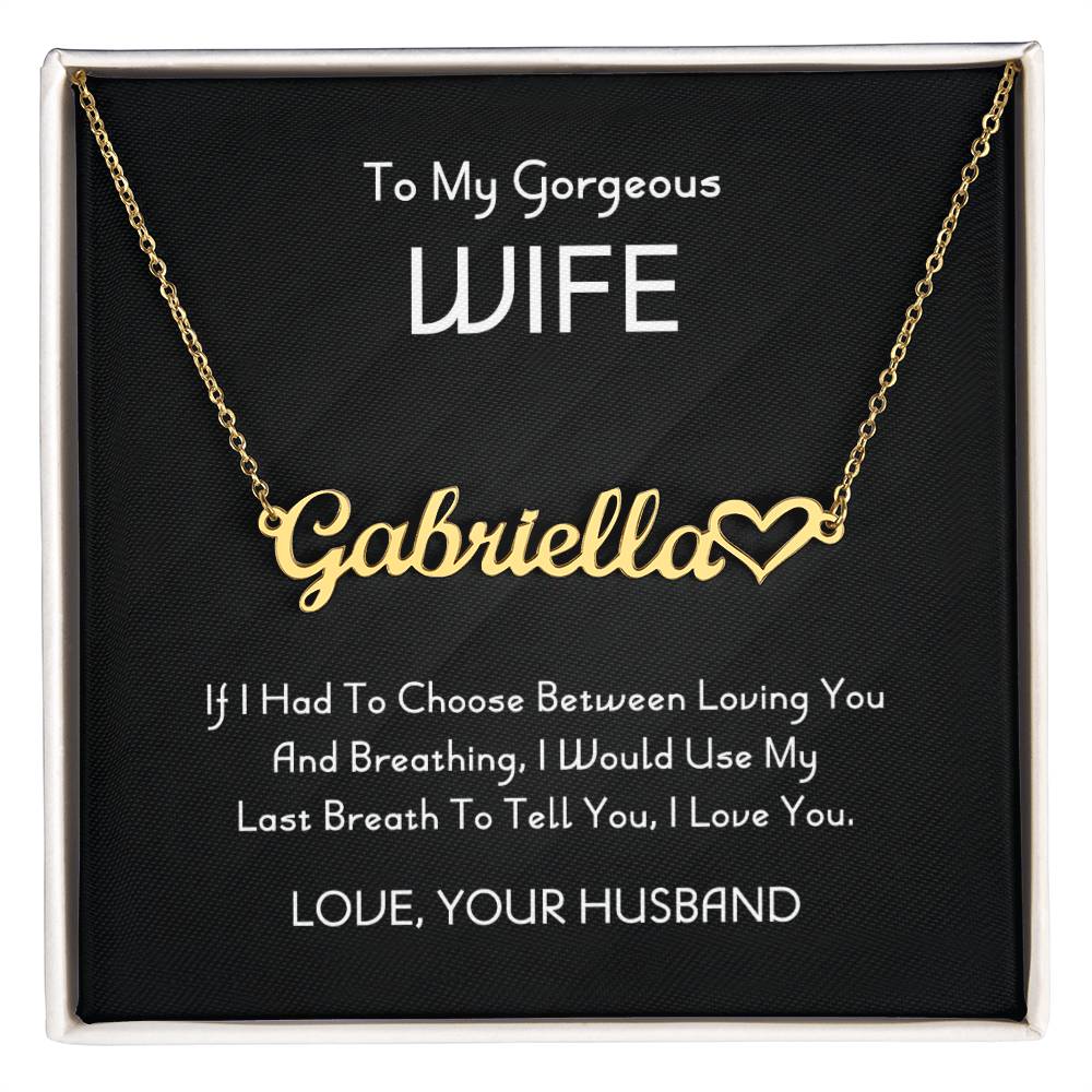 To My Gorgeous Wife Personalized Heart Name Necklace, Necklace From Husband, Anniversary Gift