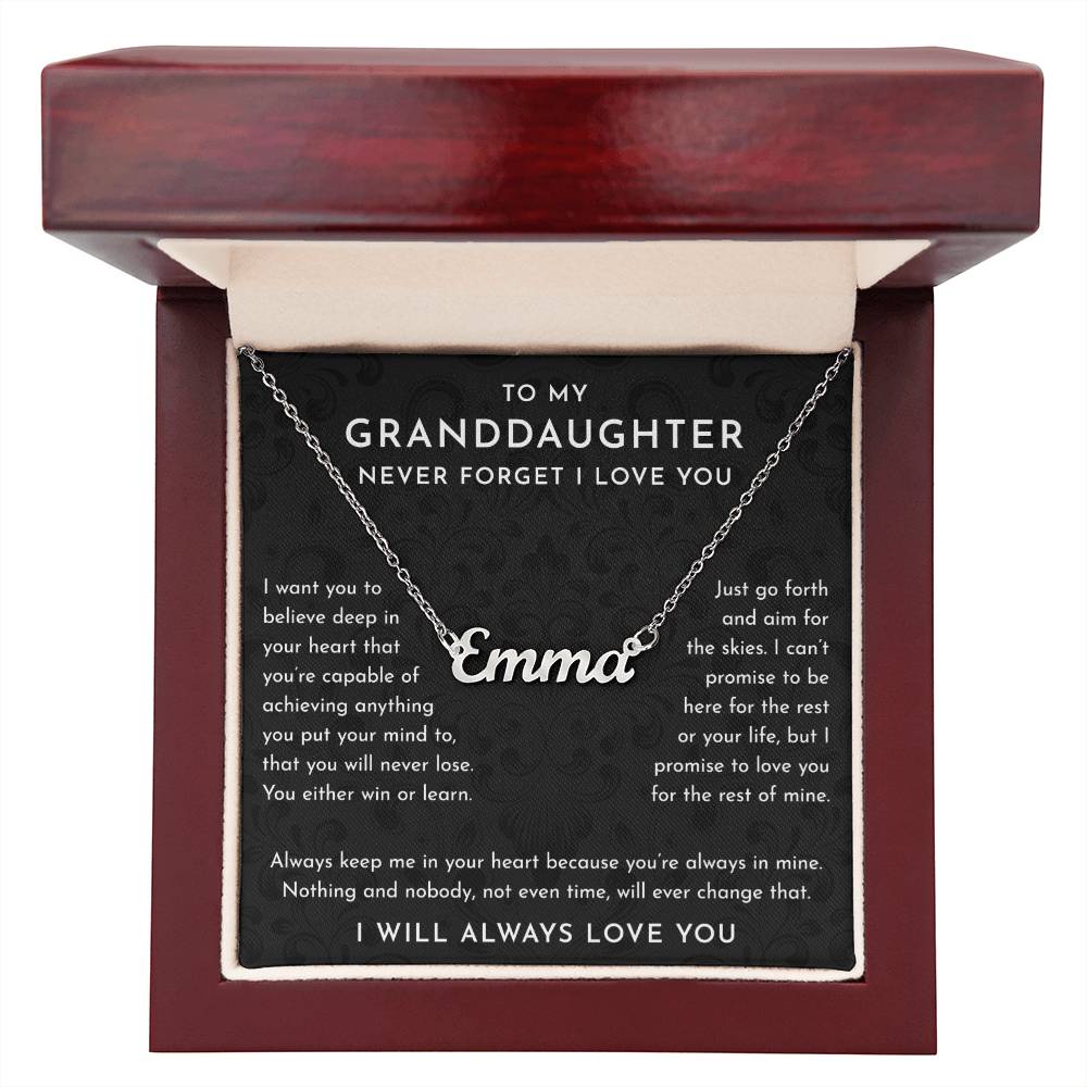 This stylish necklace features a cursive name design suspended on an 16”-18” adjustable cable chain, making it both personal and beautiful! Your necklace will be custom made upon ordering in the name or word of your choice, with up to 10 characters. It's a gift that they will surely want to keep close to their heart forever!