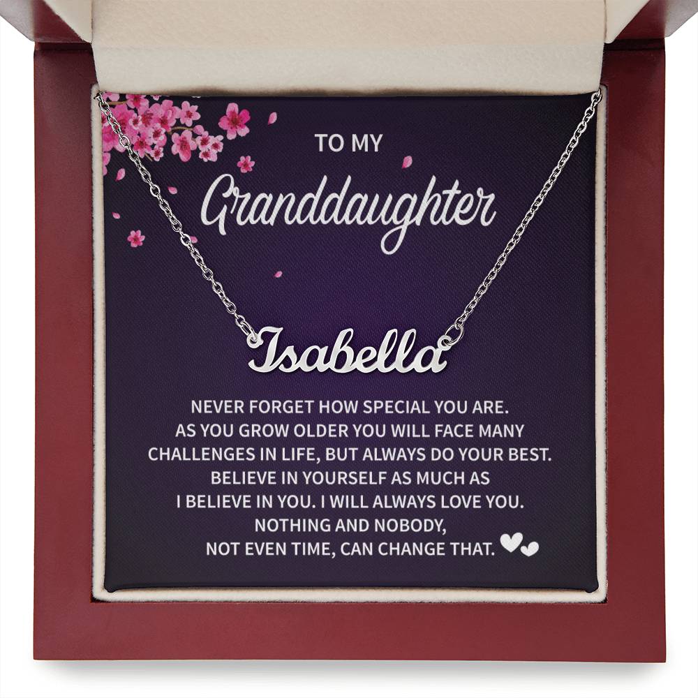 This stylish necklace features a cursive name design suspended on an 16”-18” adjustable cable chain, making it both personal and beautiful! Your necklace will be custom made upon ordering in the name or word of your choice, with up to 10 characters. It's a gift that they will surely want to keep close to their heart forever!