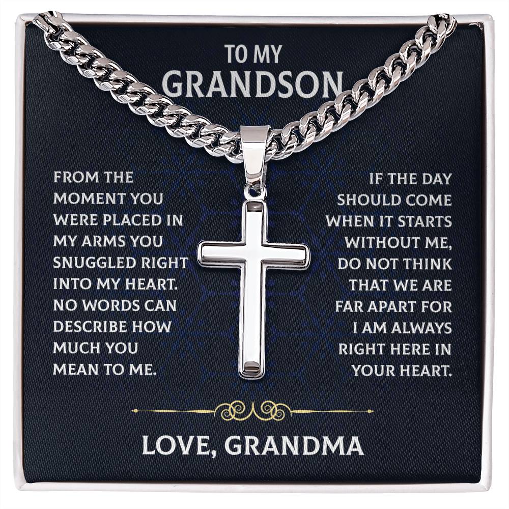 To My Grandson, Cuban Chain With Artisan Cross Necklace, Heartfelt Jewelry Card, Meaningful Birthday Gift, Christmas Gift Grandson, Cross Pendant Gift
